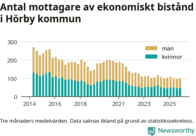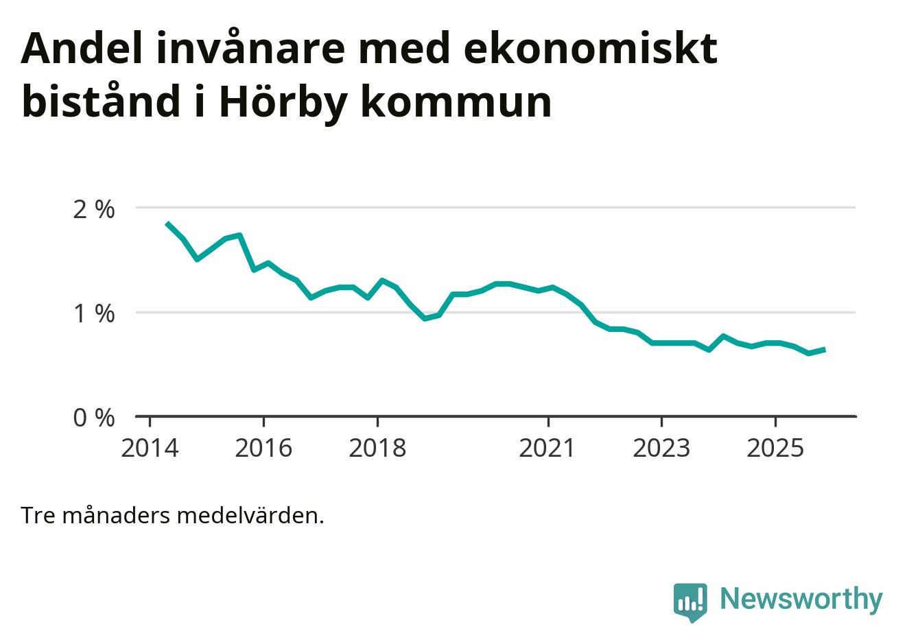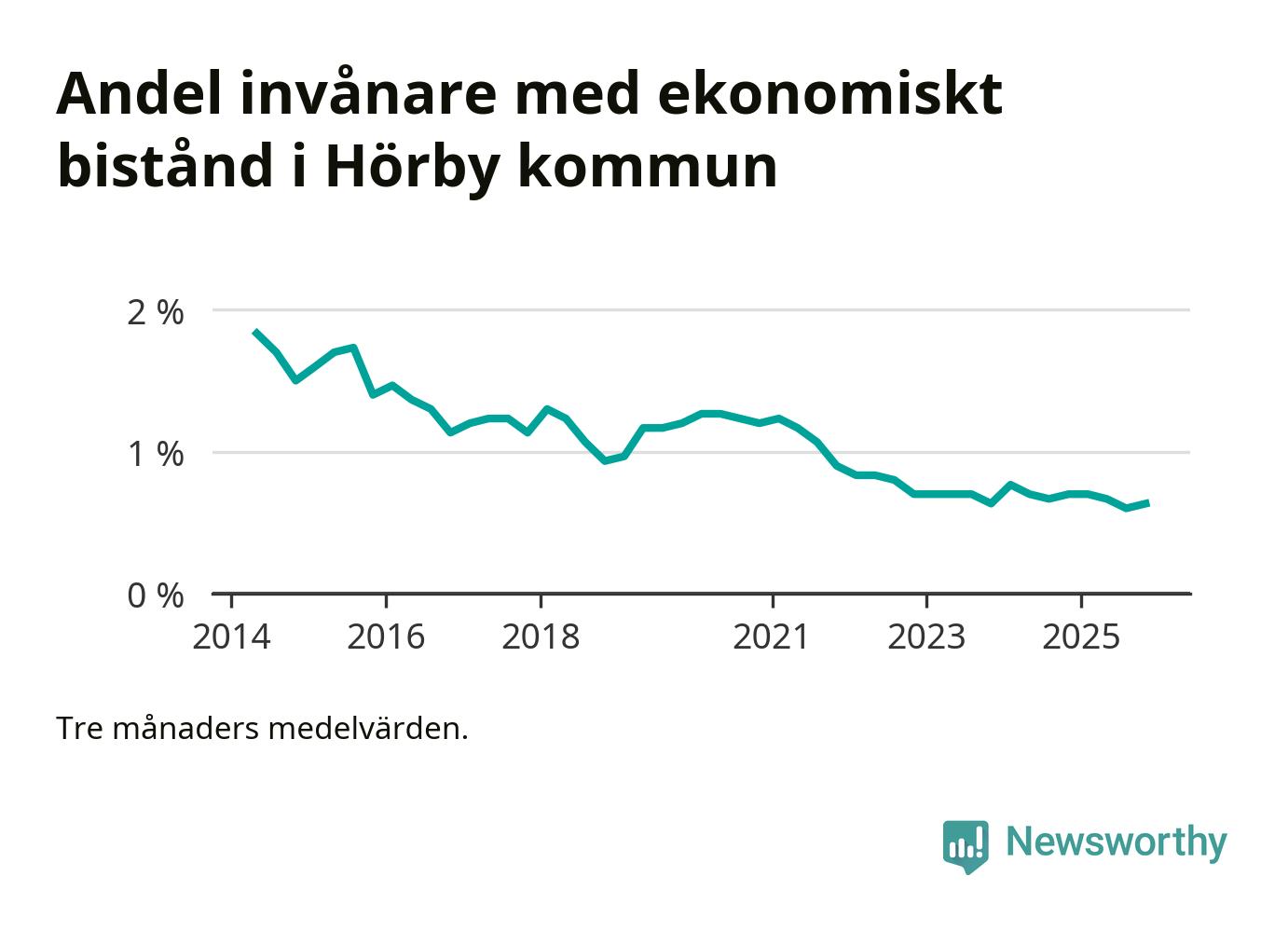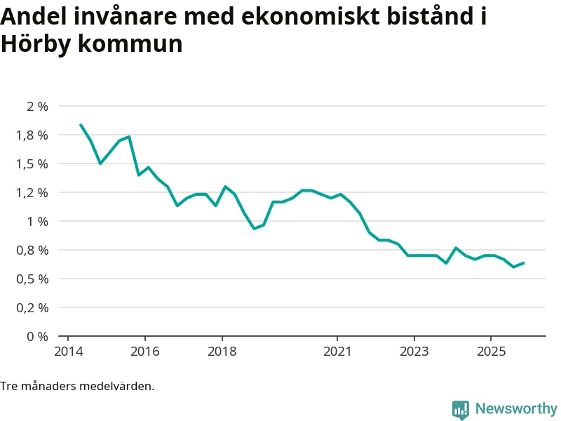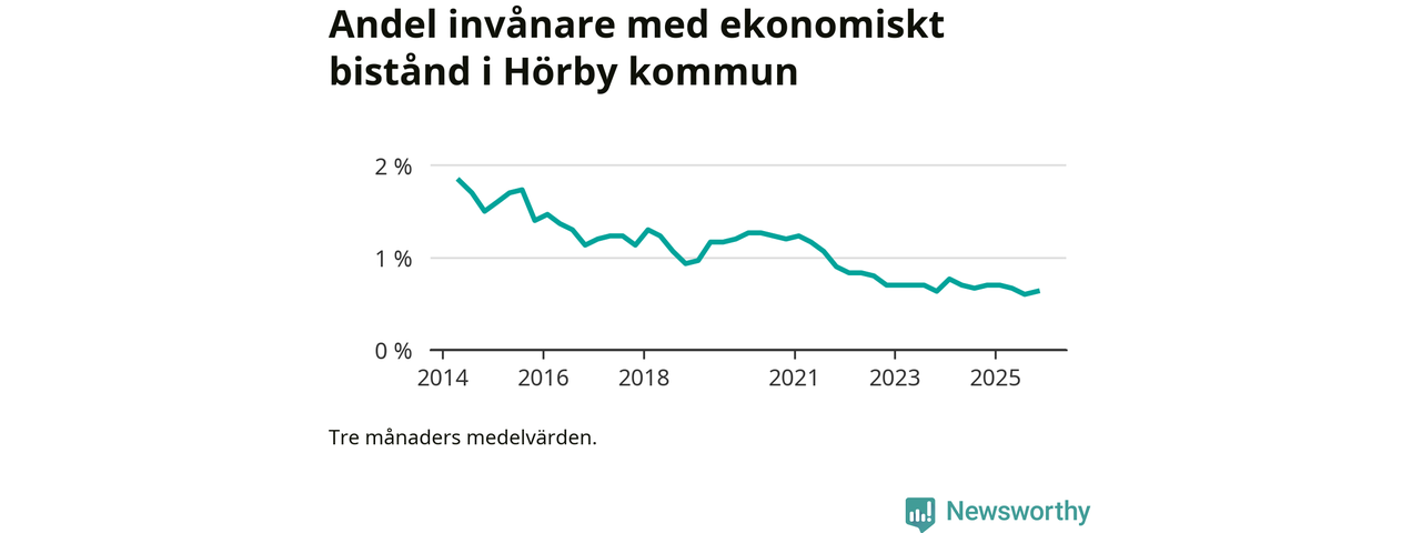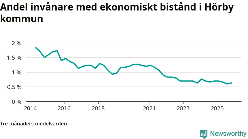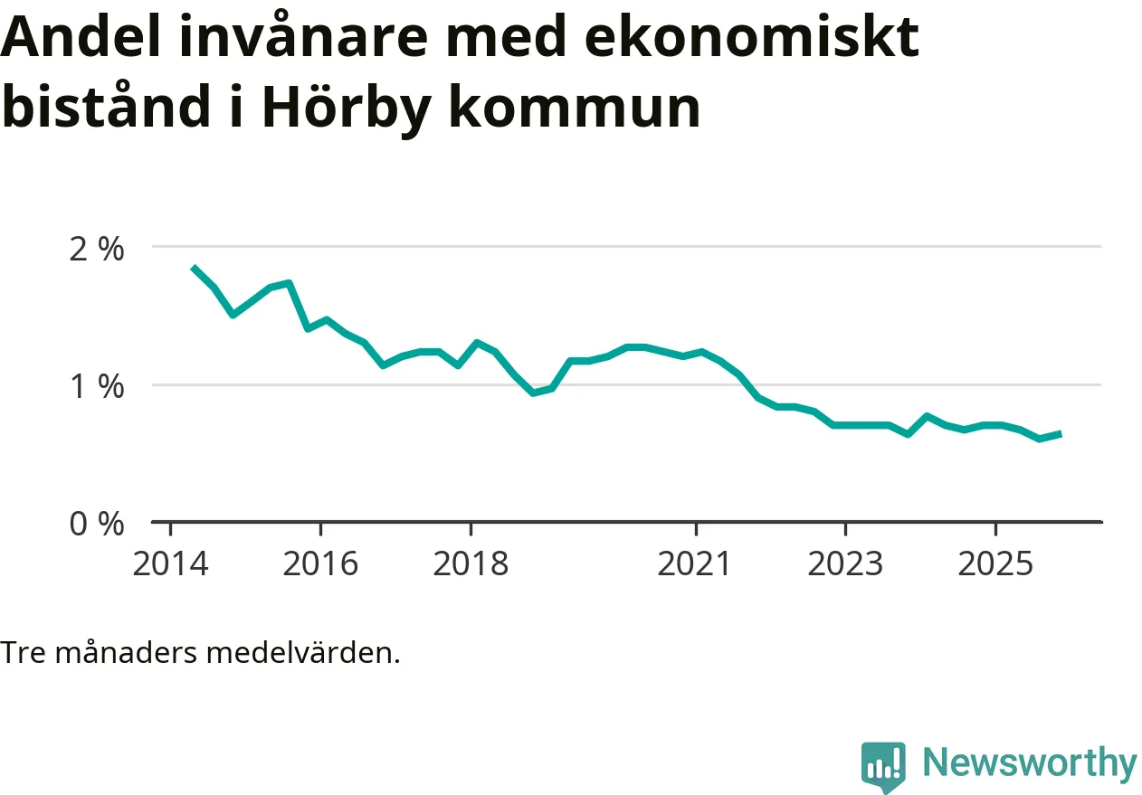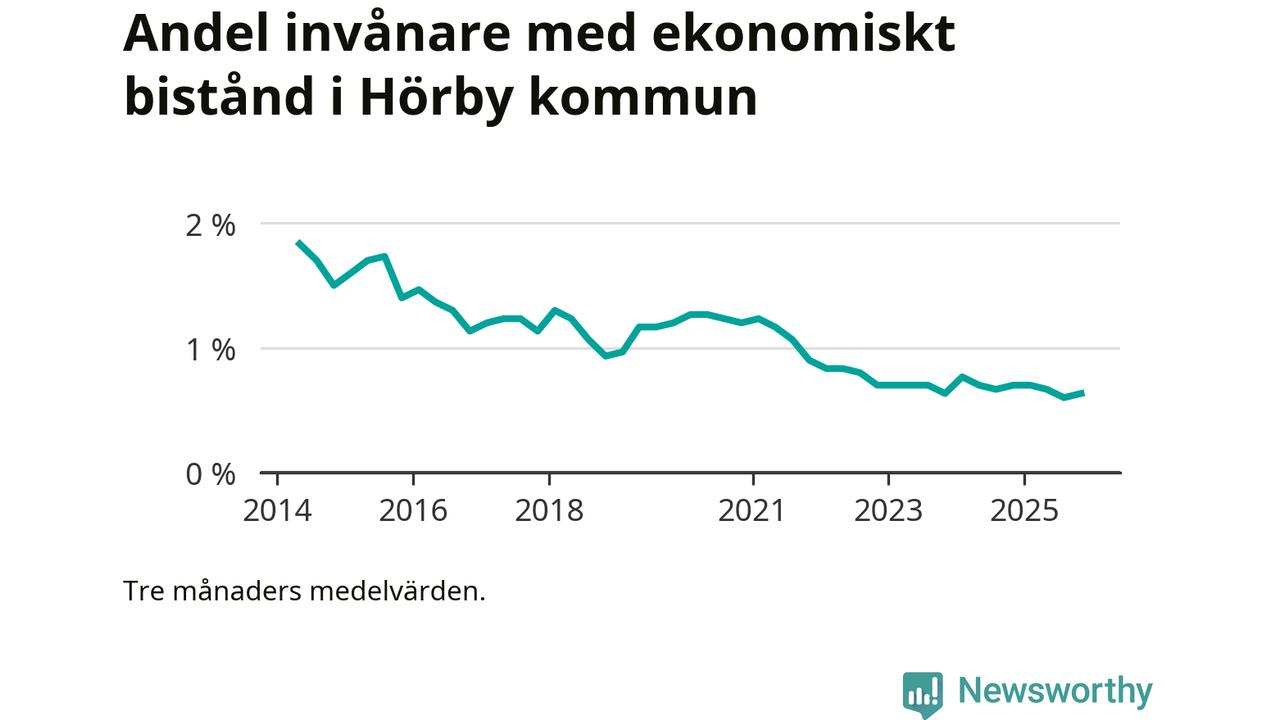 Andelen invånare med ekonomiskt bistånd i Hörby kommun var under hösten den lägsta sedan åtminstone 2014. Det visar den senaste, preliminära statistiken från Socialstyrelsen.