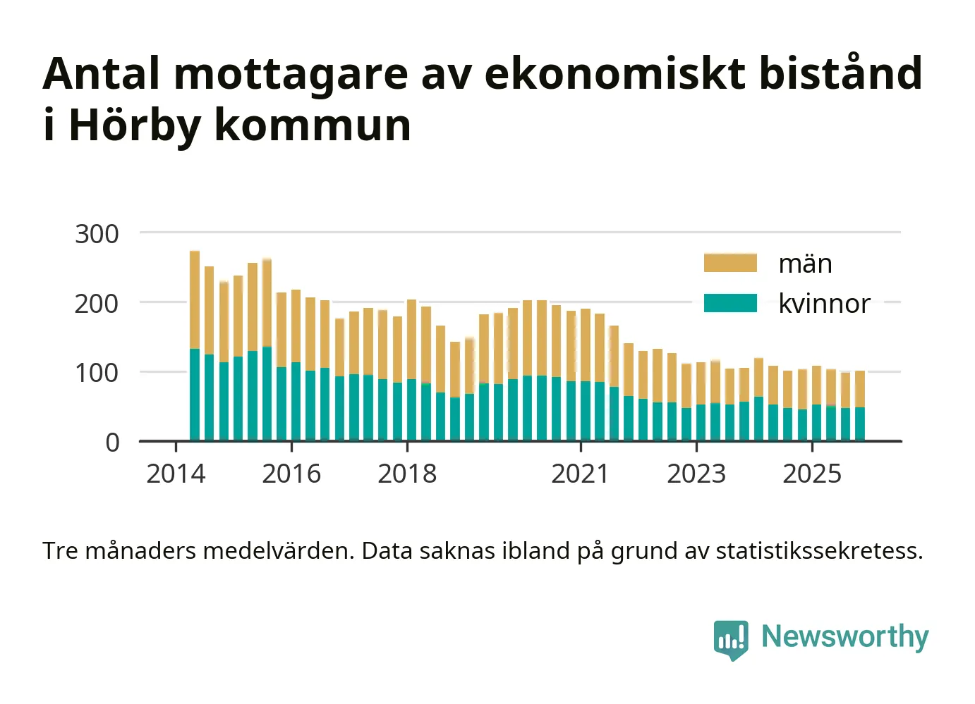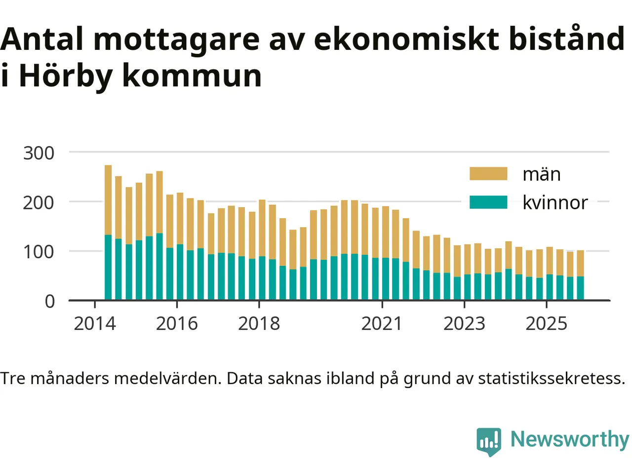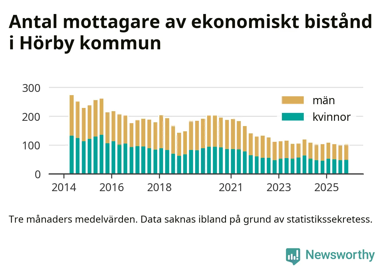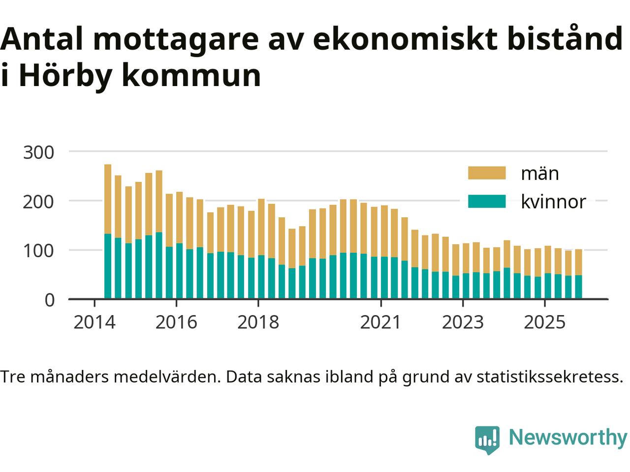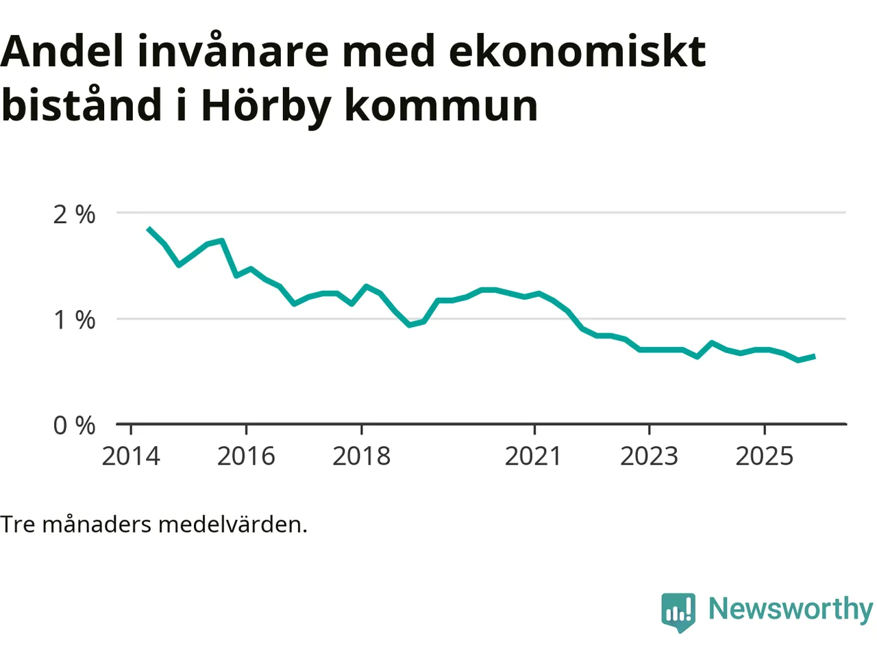 Andelen invånare med ekonomiskt bistånd i Hörby kommun var under hösten den lägsta sedan åtminstone 2014. Det visar den senaste, preliminära statistiken från Socialstyrelsen.