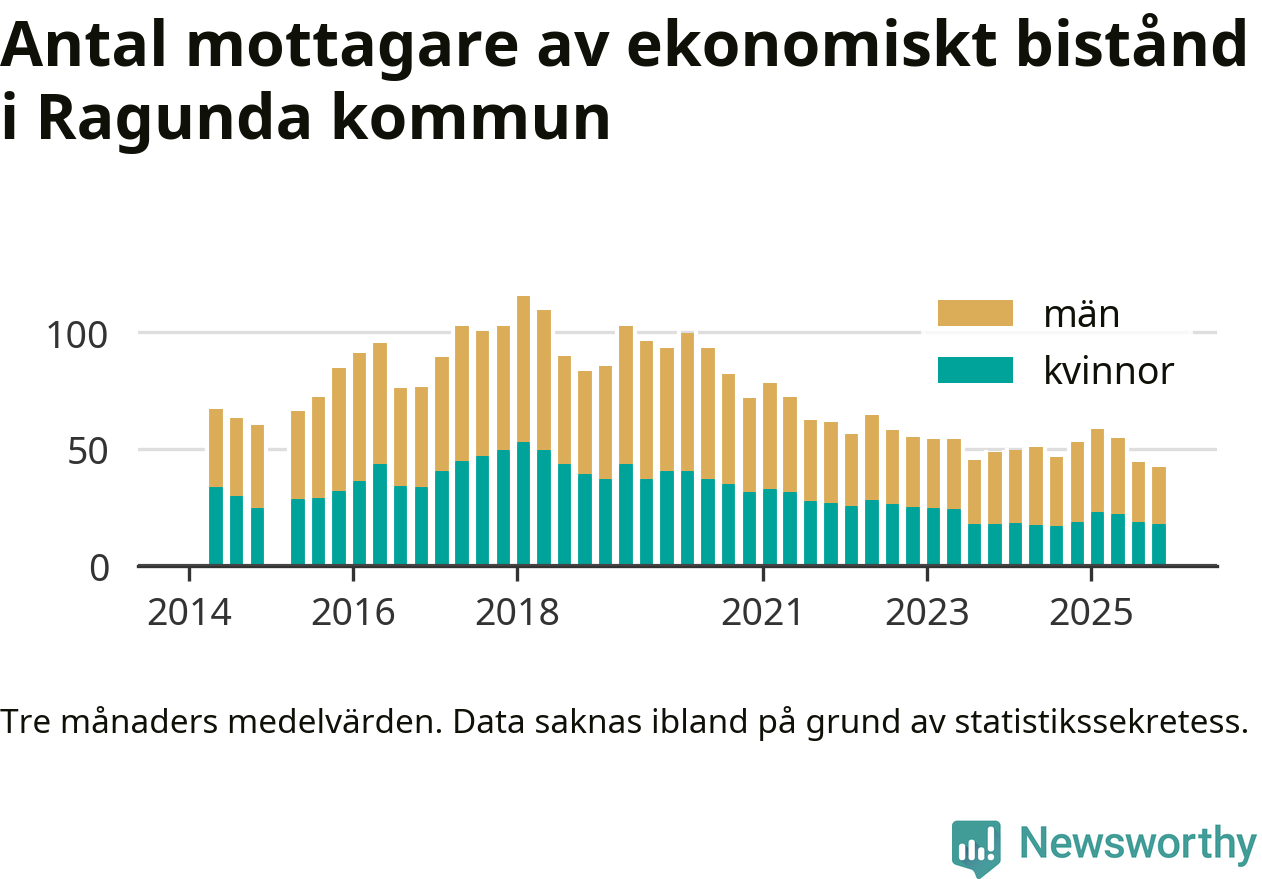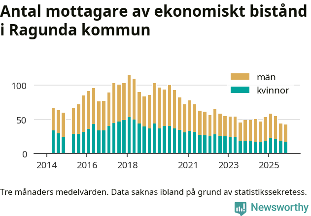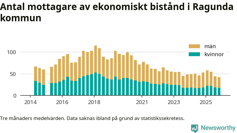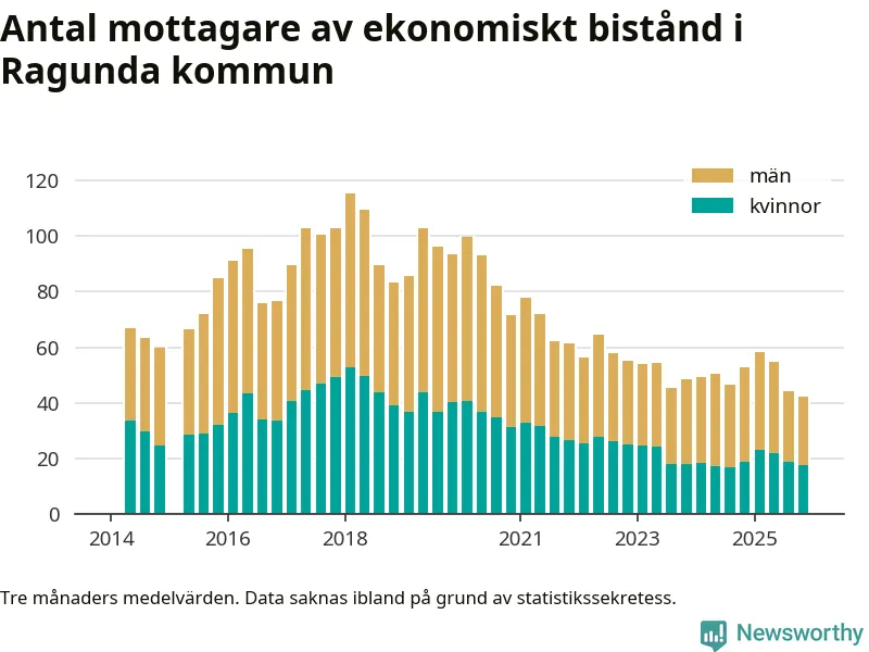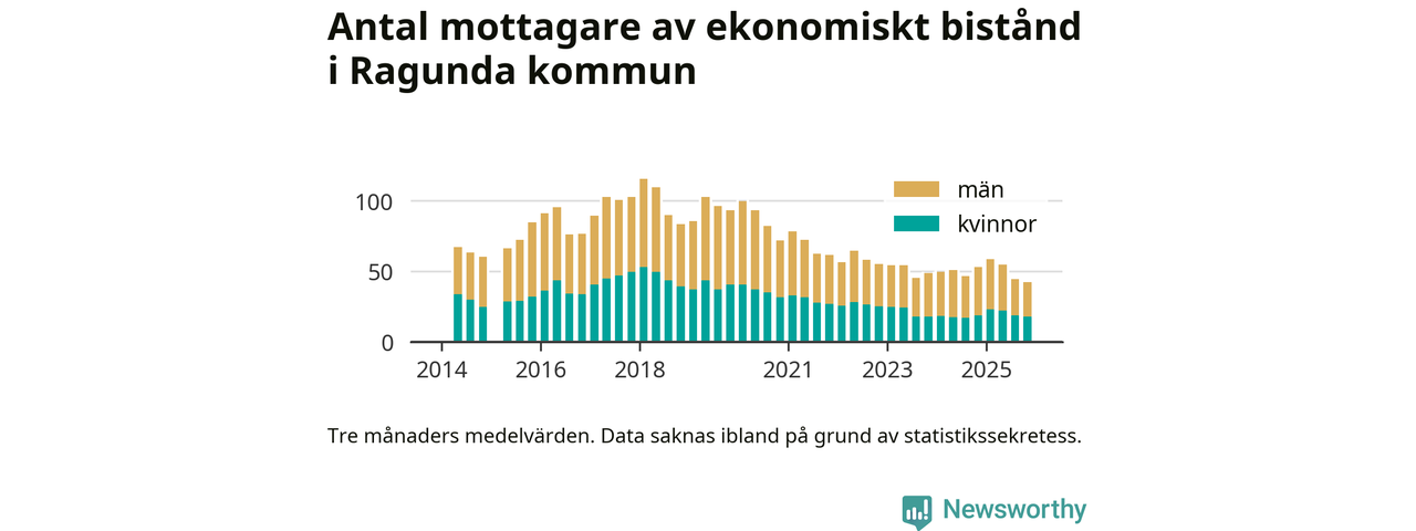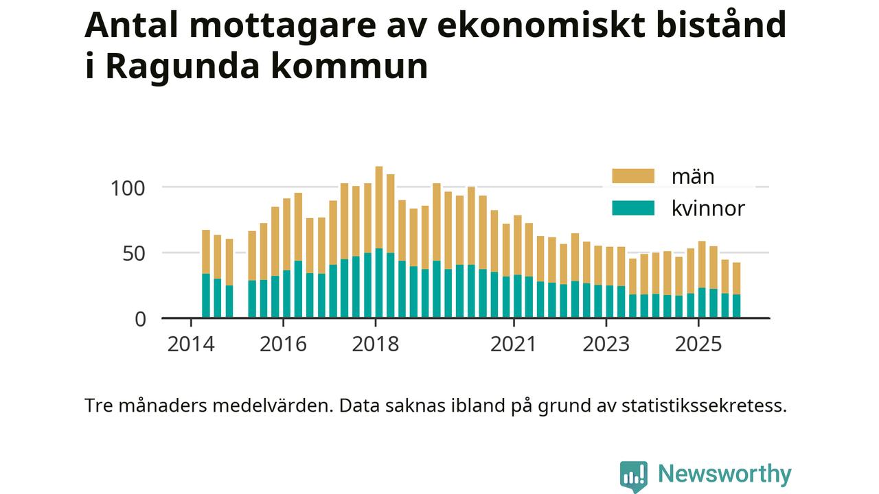I genomsnitt 42 personer per månad fick ekonomiskt bistånd i Ragunda kommun