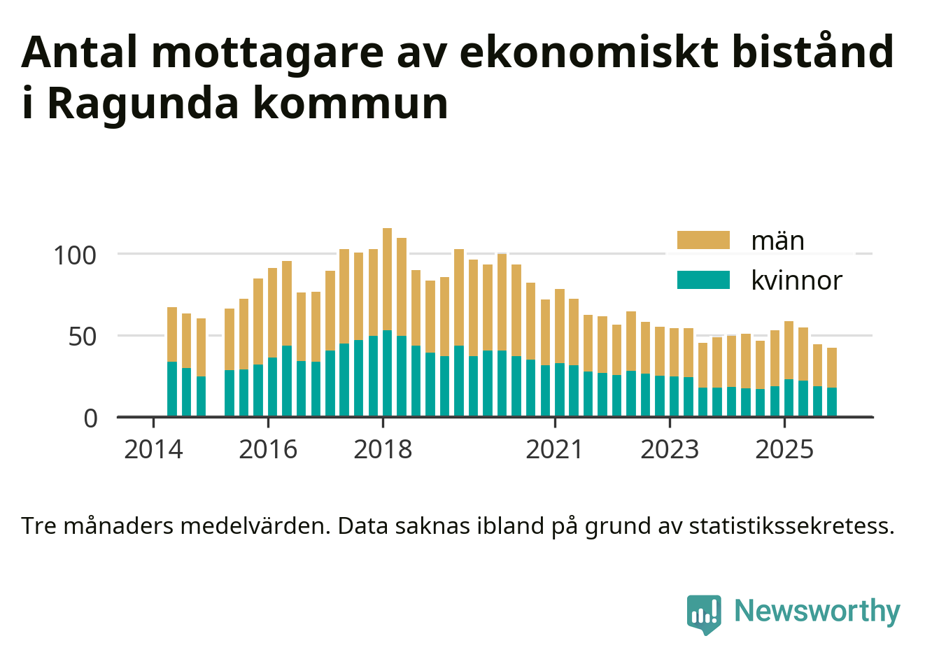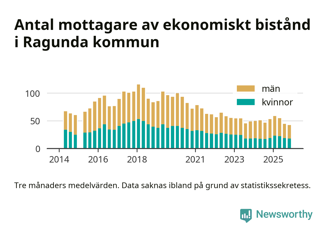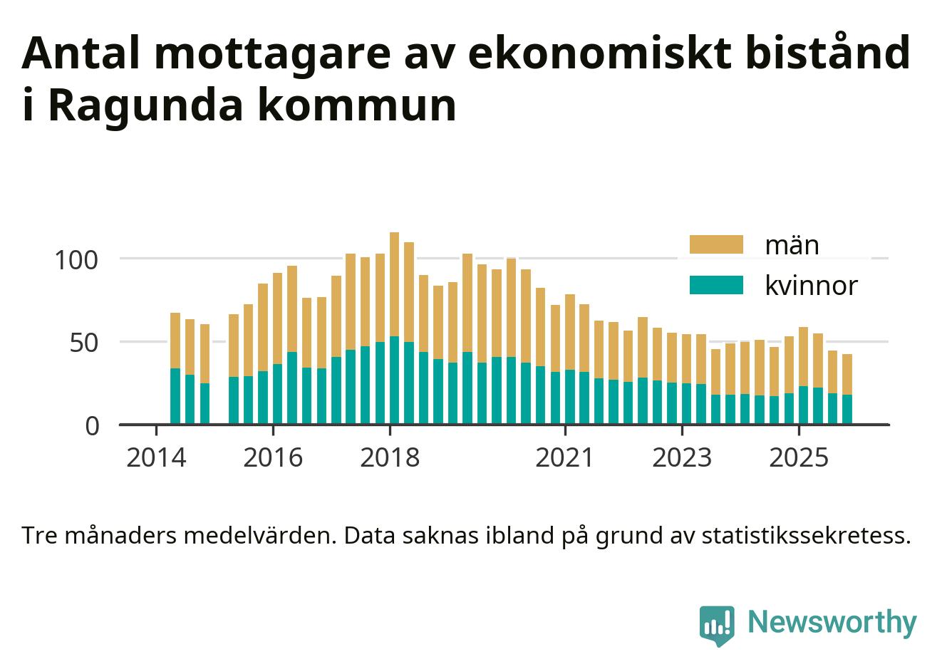 I genomsnitt 42 personer per månad fick ekonomiskt bistånd i Ragunda kommun