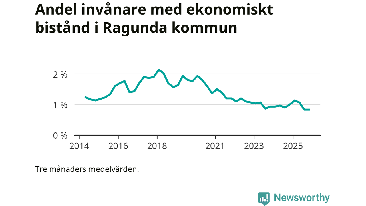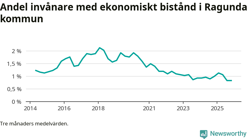 Andelen invånare med ekonomiskt bistånd i Ragunda kommun
