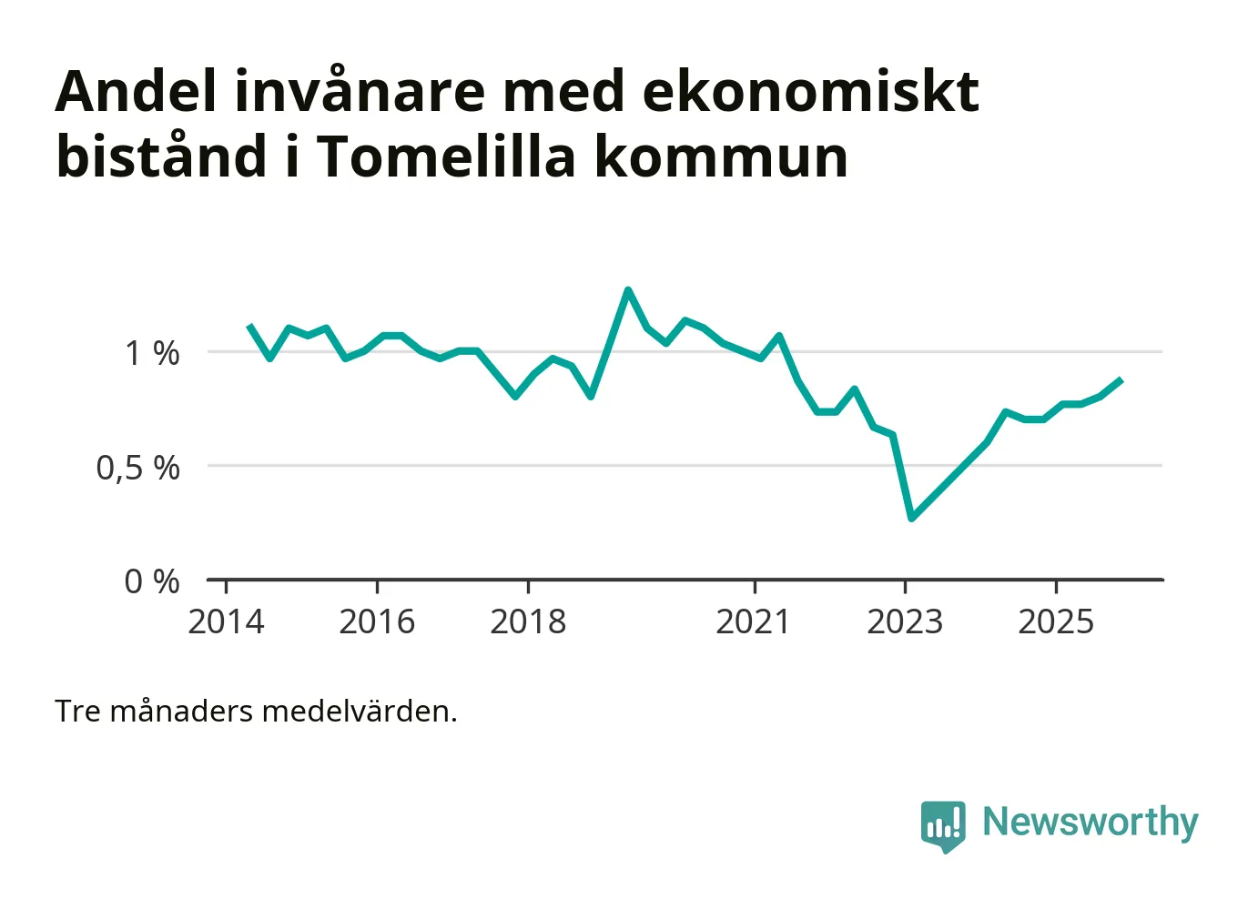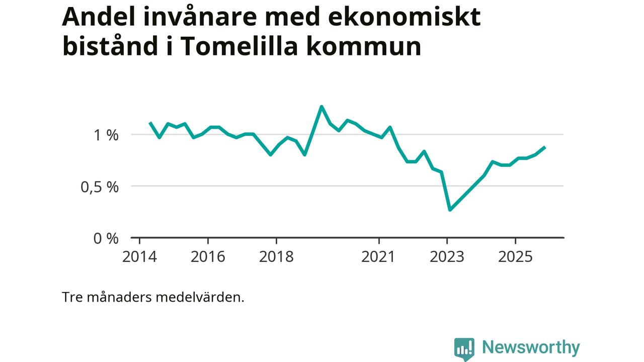 Andelen invånare med ekonomiskt bistånd i Tomelilla kommun var högre under hösten jämfört med motsvarande period året innan. Det visar den senaste, preliminära statistiken från Socialstyrelsen.