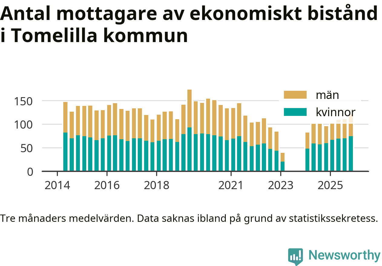 En överväldigande majoritet av biståndstagarna var kvinnor: I genomsnitt 47 män och 74 kvinnor fick ekonomiskt bistånd varje månad under hösten.