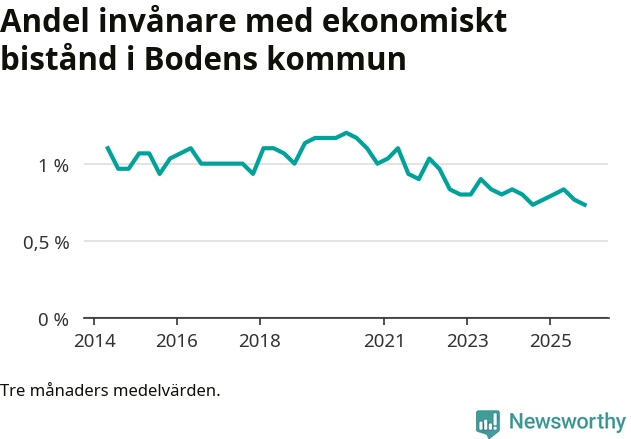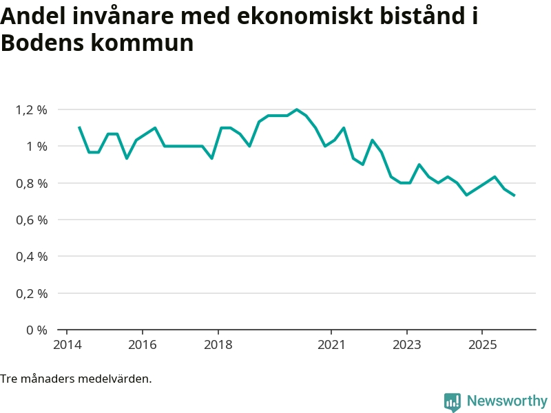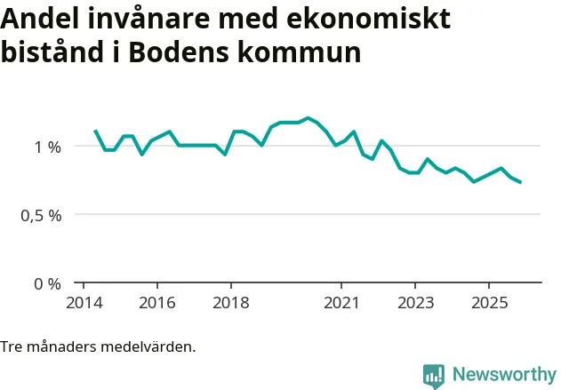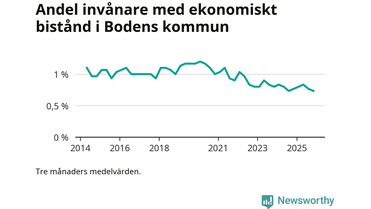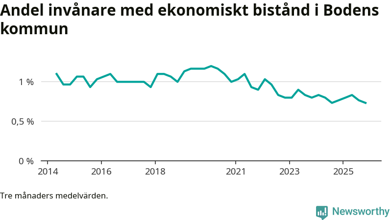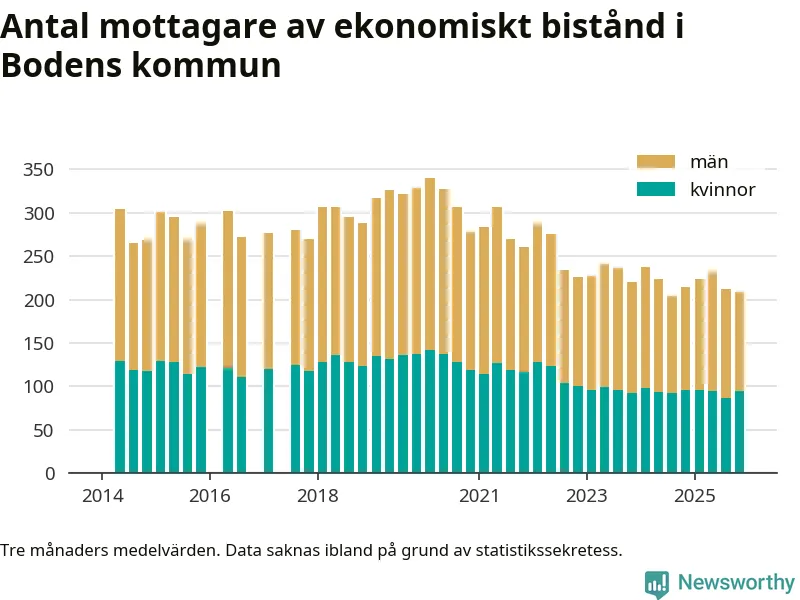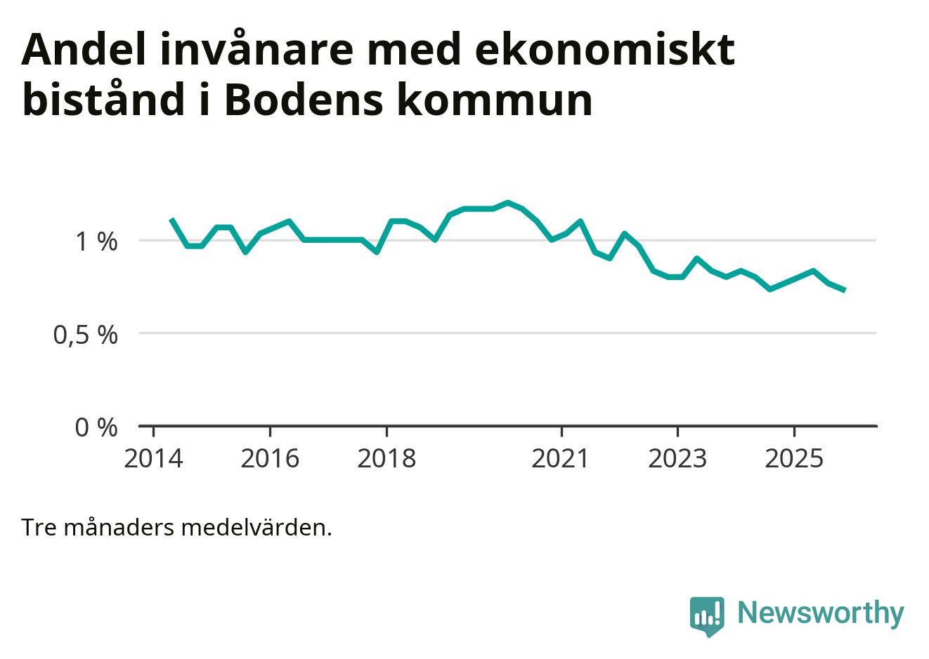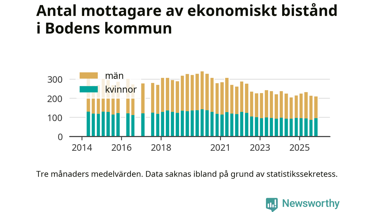 I genomsnitt 209 personer per månad fick ekonomiskt bistånd i Bodens kommun