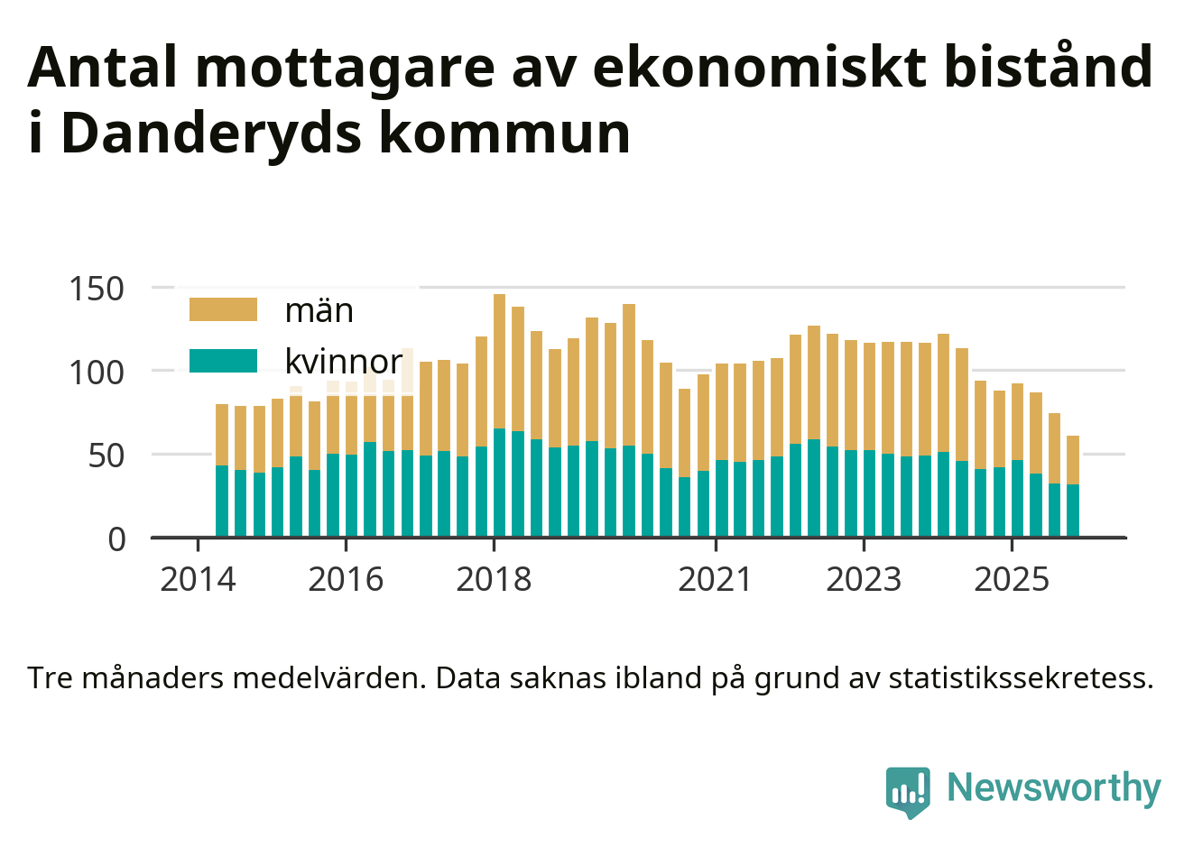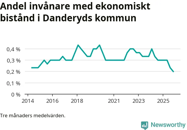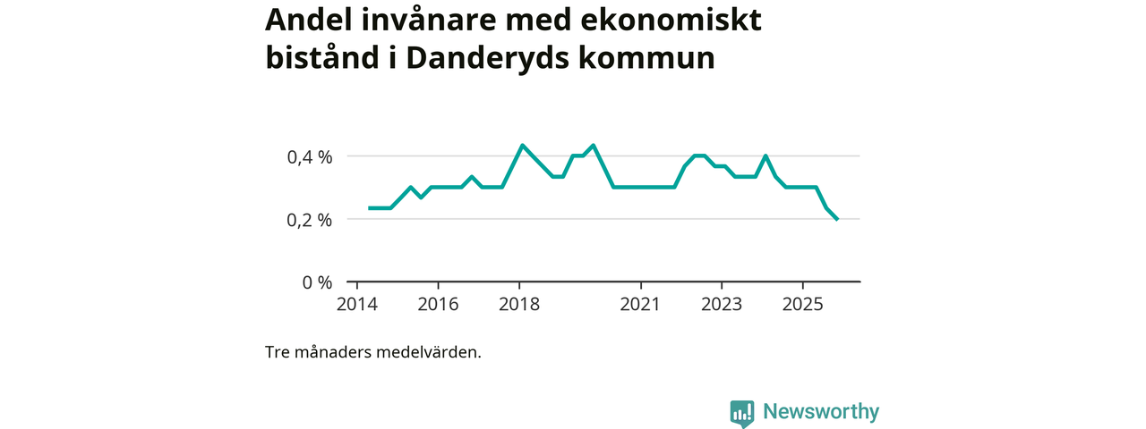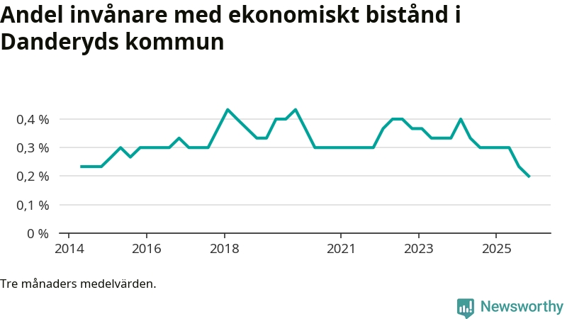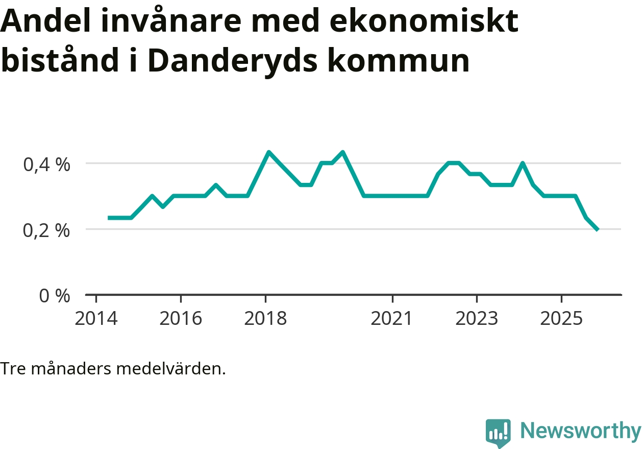 Höstens 0,2 procent är den lägsta andelen biståndstagare i kommunen under någon tremånadersperiod sedan åtminstone 2014, vilket är så långt tillbaka Socialstyrelsens statistik sträcker sig.