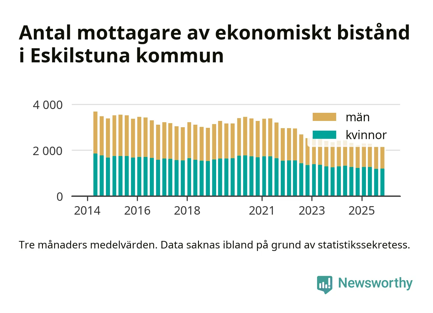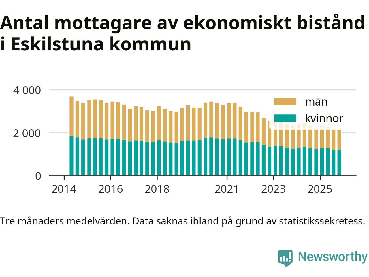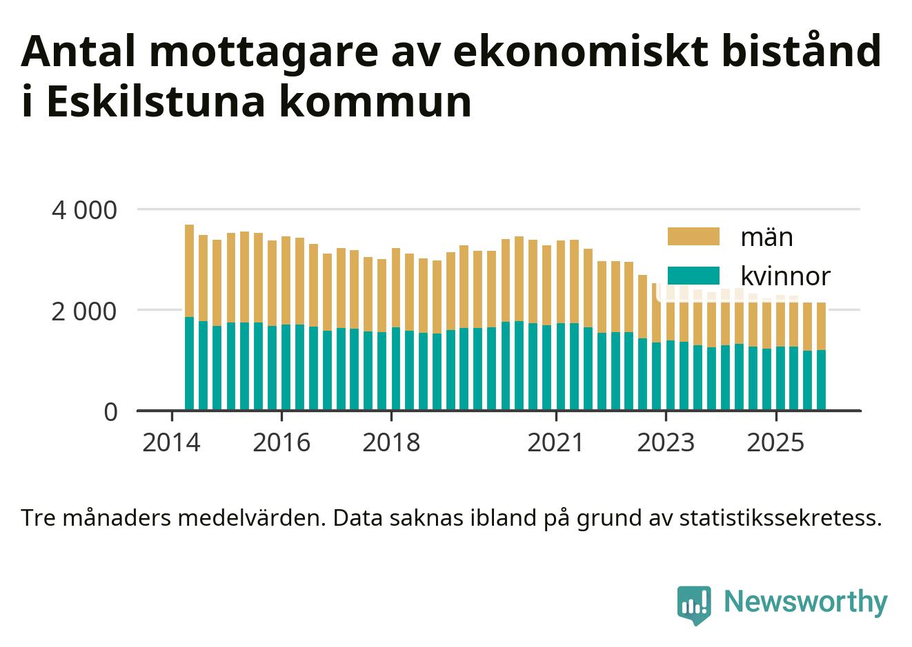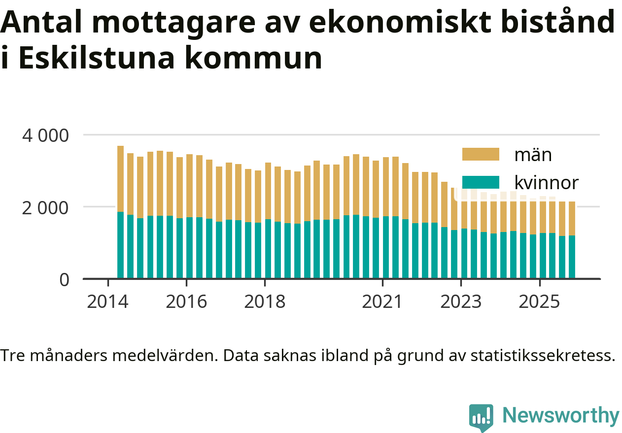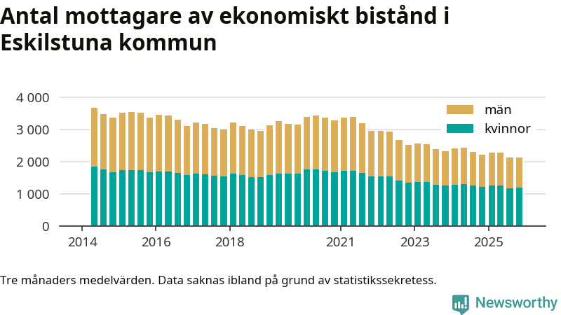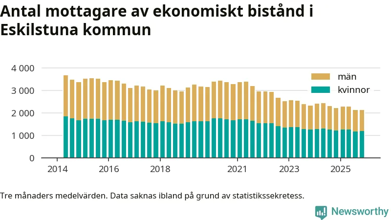 En majoritet av biståndstagarna var kvinnor: I genomsnitt 940 män och 1 192 kvinnor fick ekonomiskt bistånd varje månad under hösten.