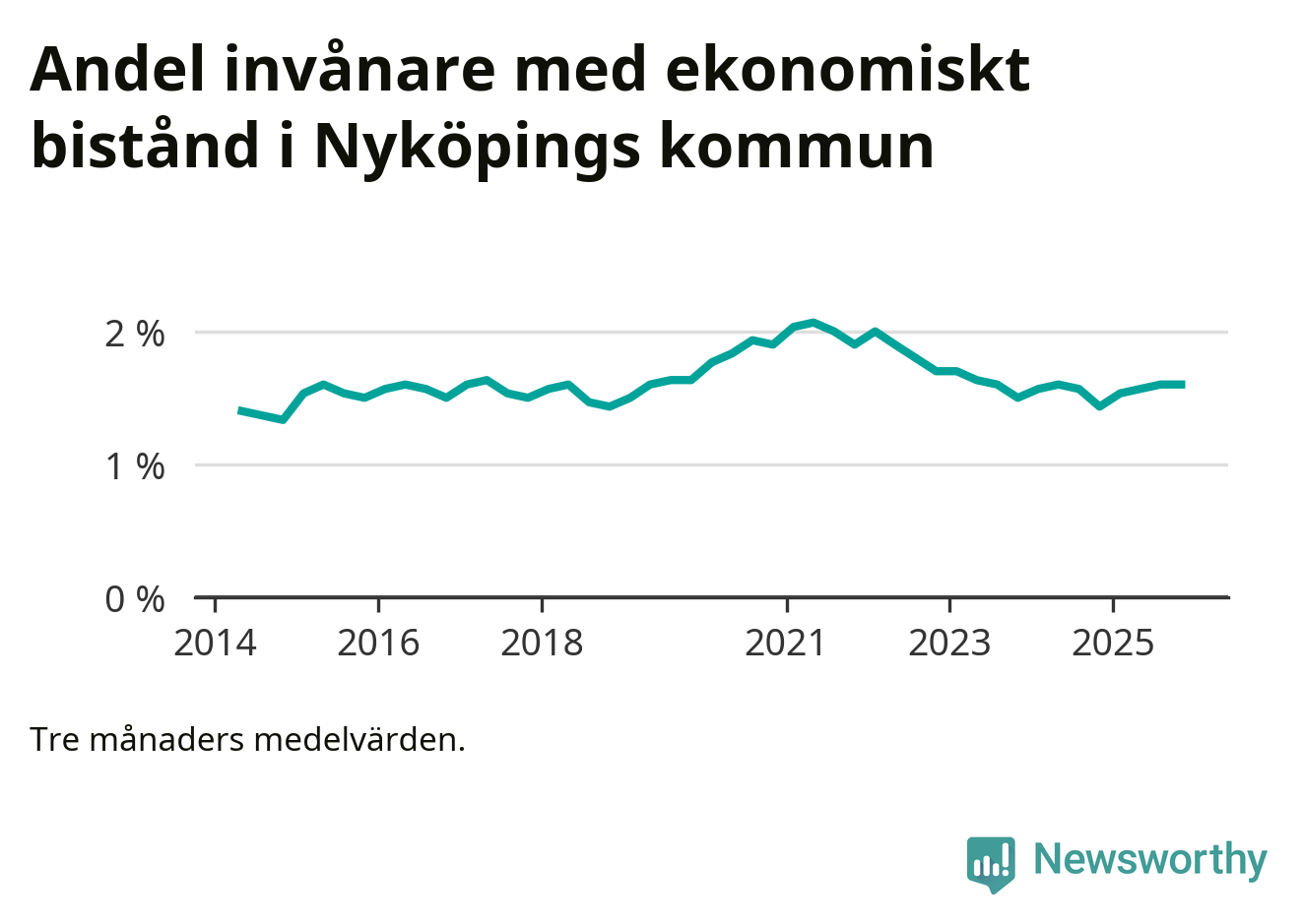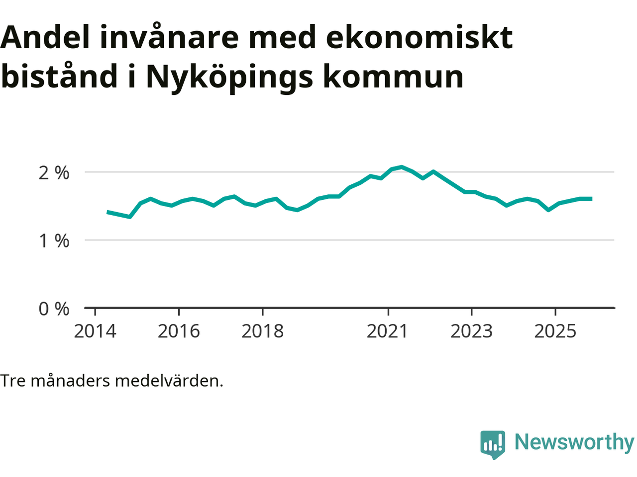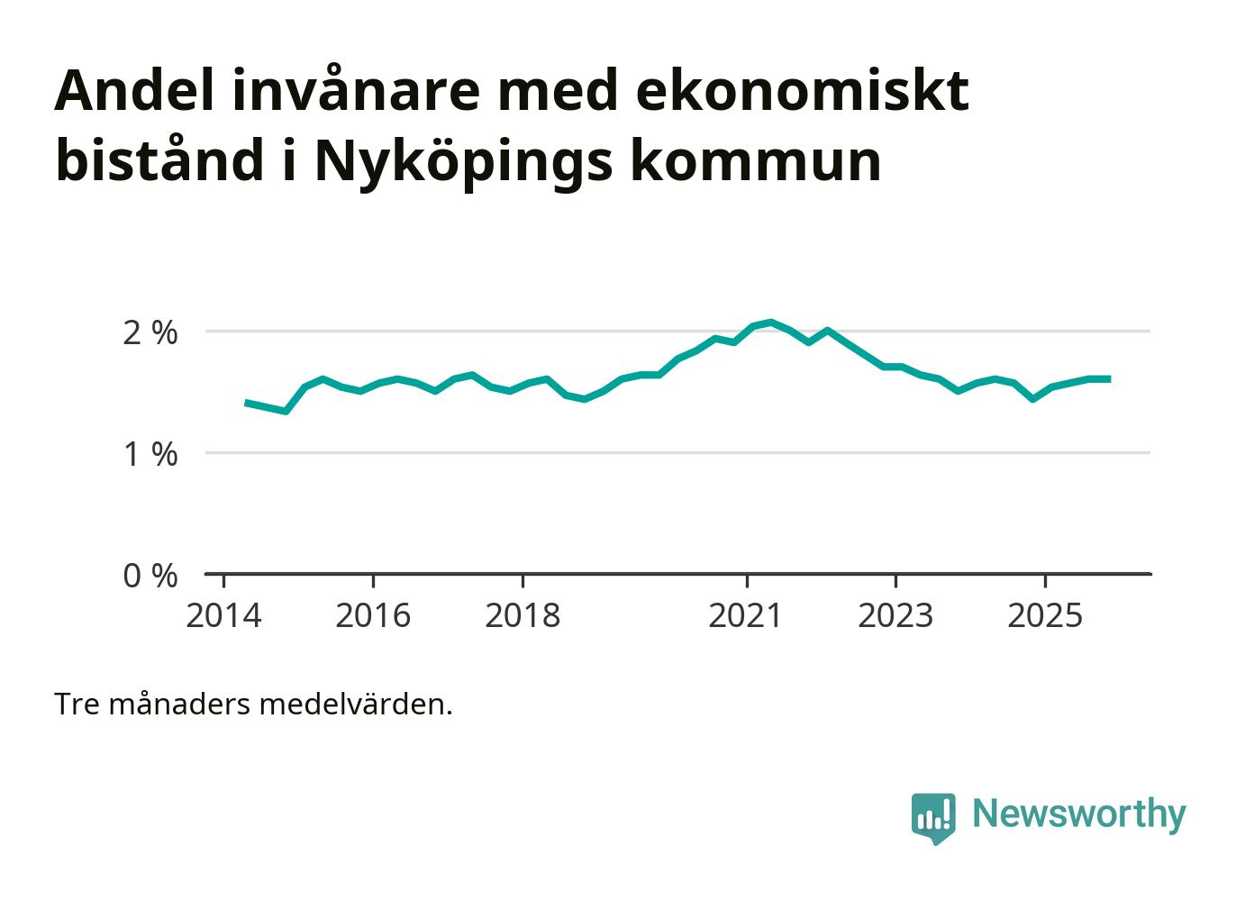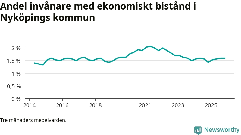 Andelen invånare med ekonomiskt bistånd i Nyköpings kommun