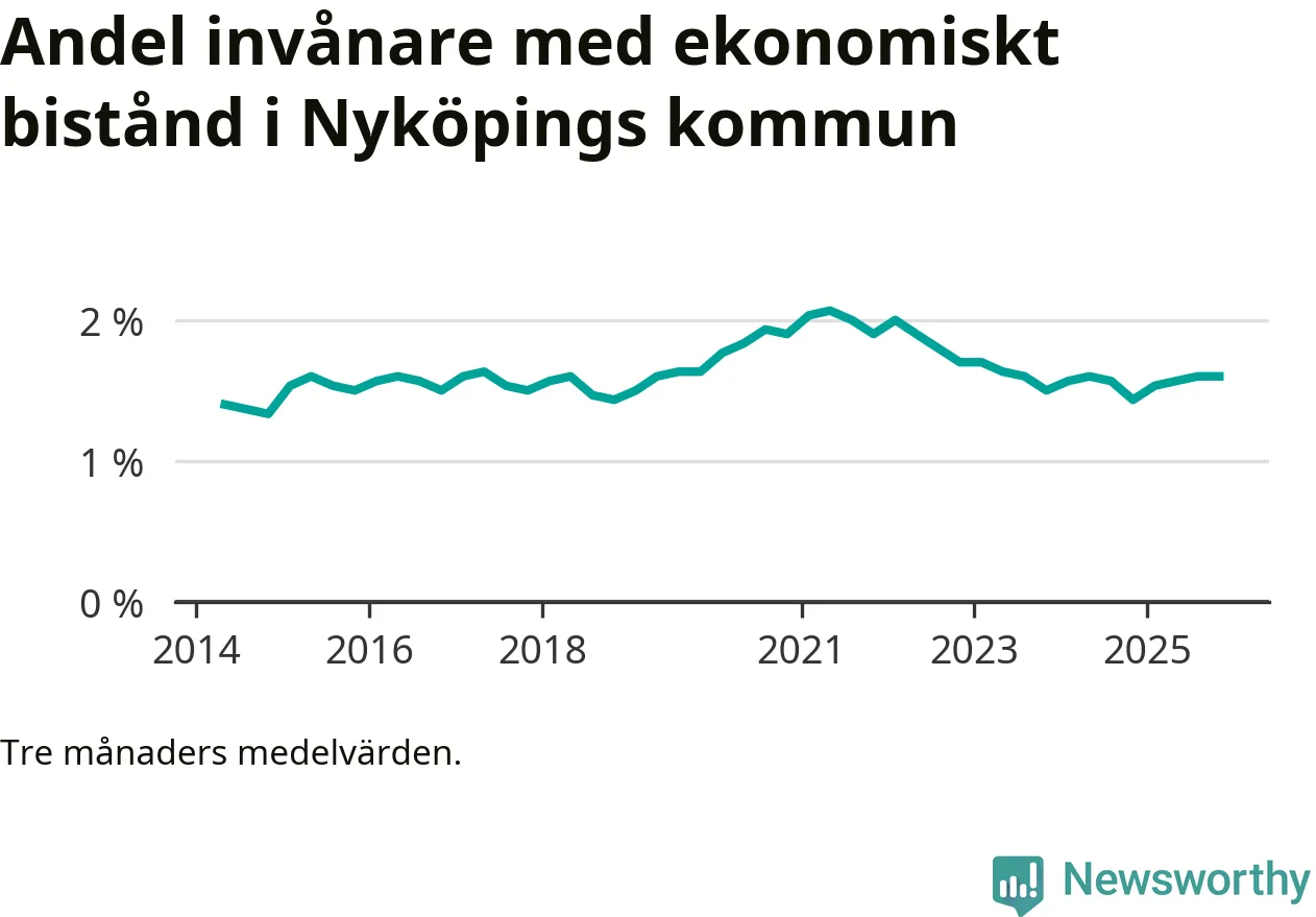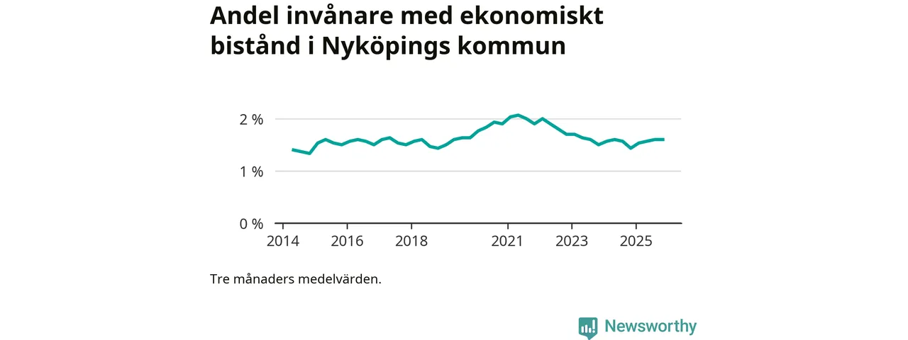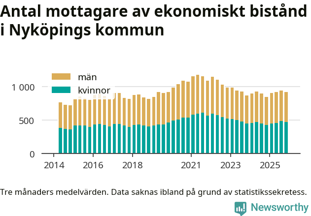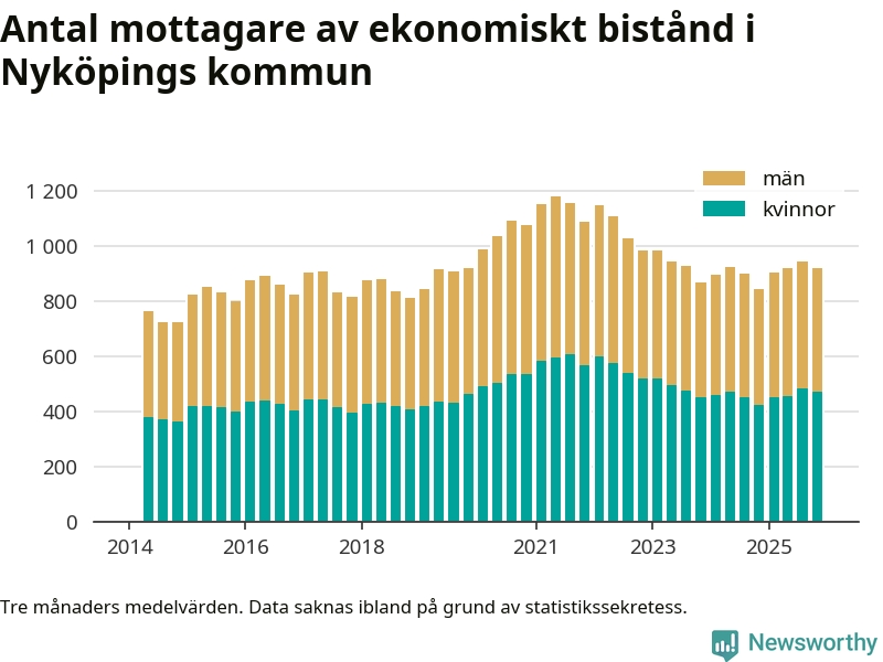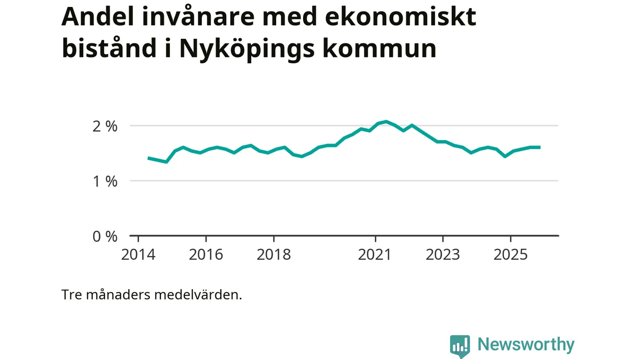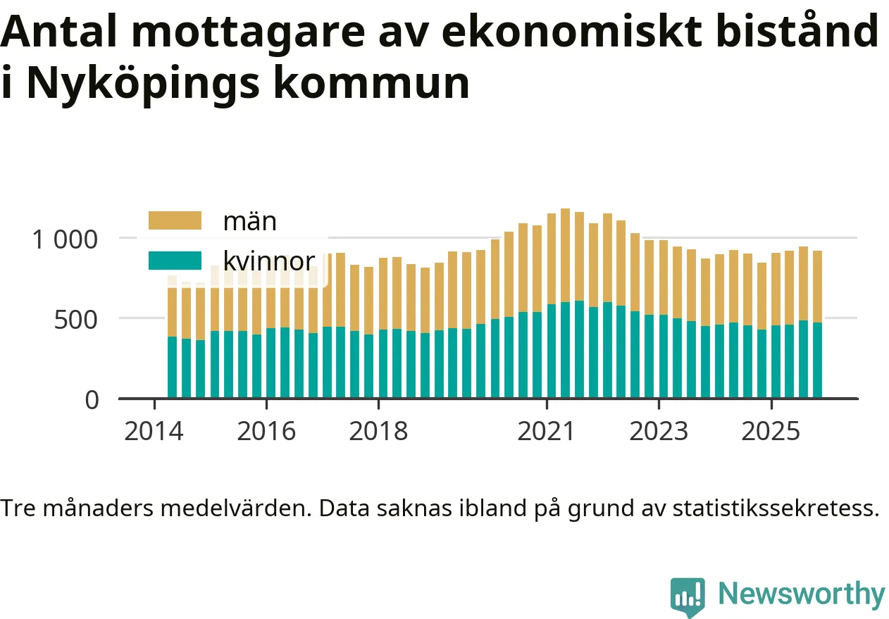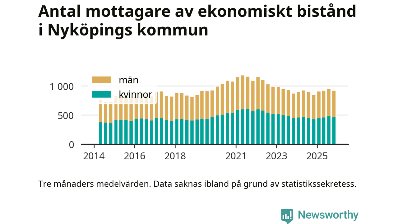 I genomsnitt 918 personer per månad fick ekonomiskt bistånd i Nyköpings kommun