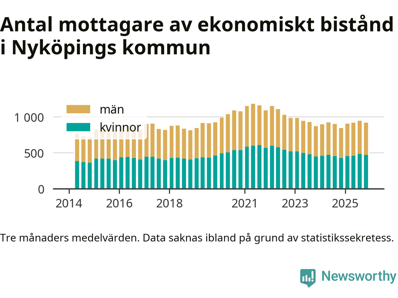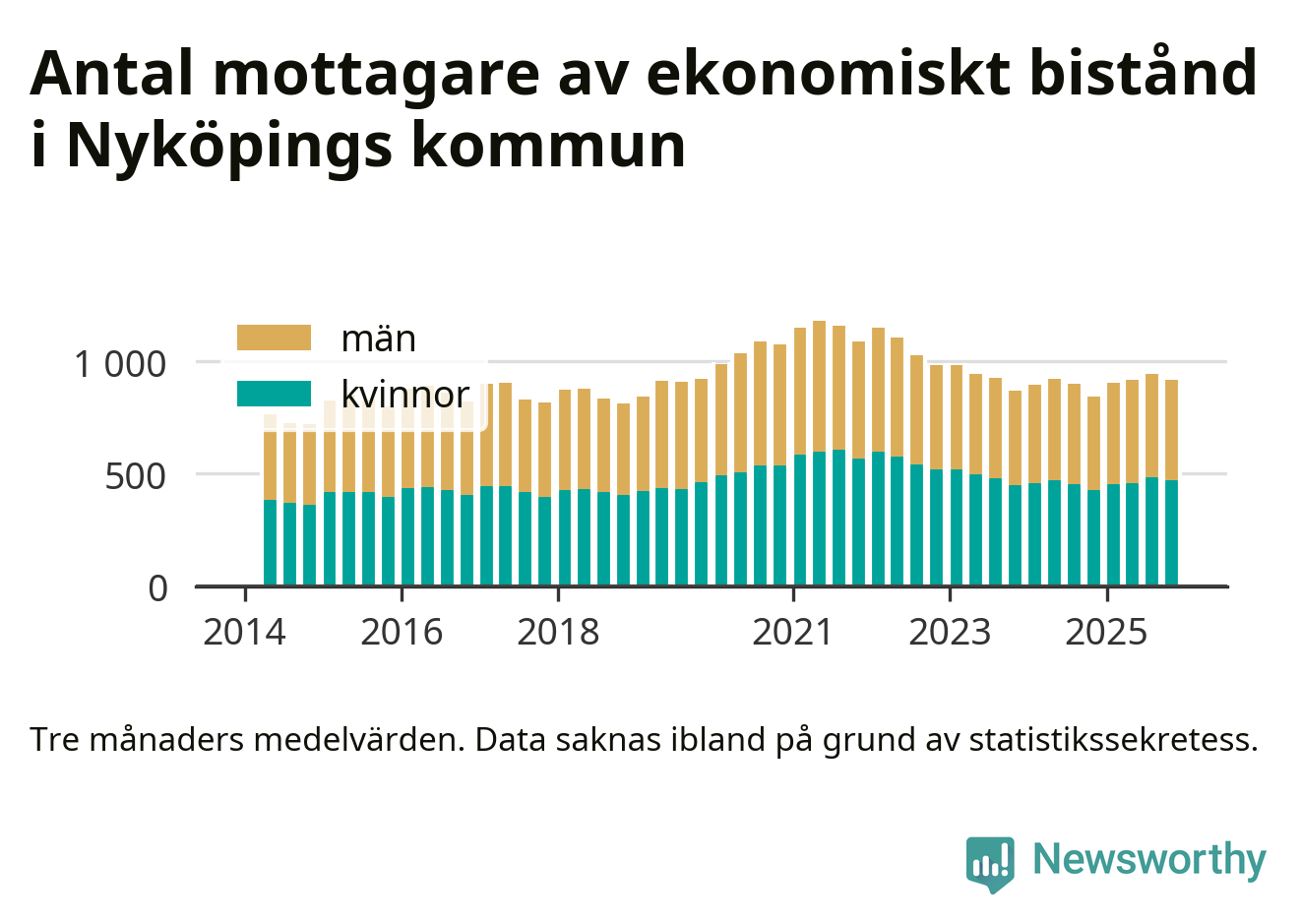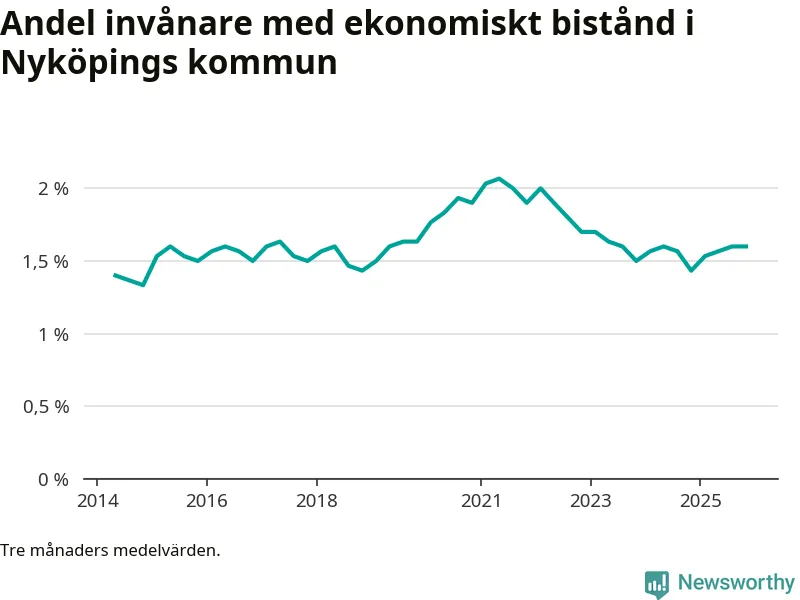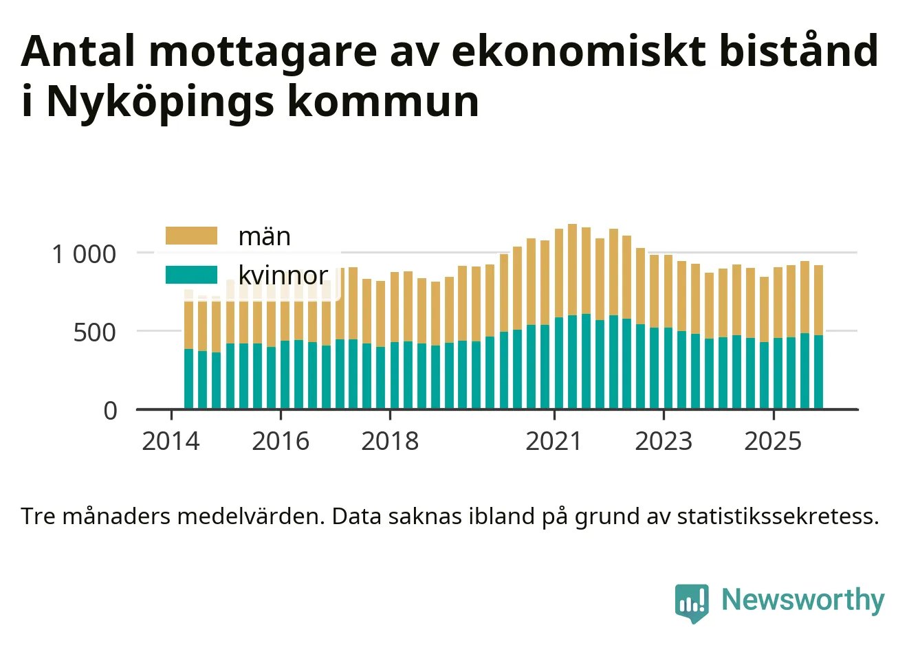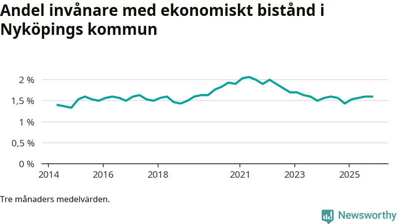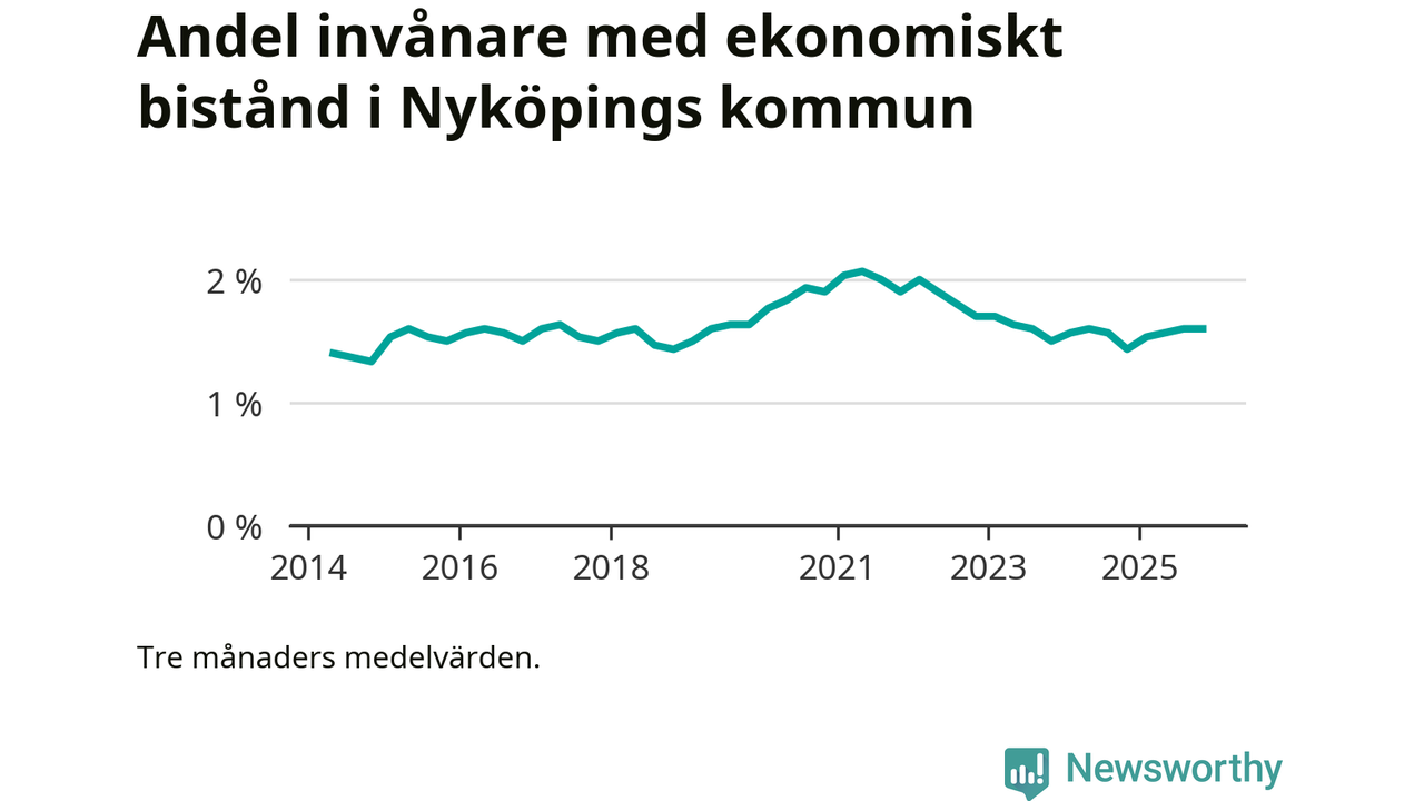 I genomsnitt 918 personer per månad fick ekonomiskt bistånd i Nyköpings kommun