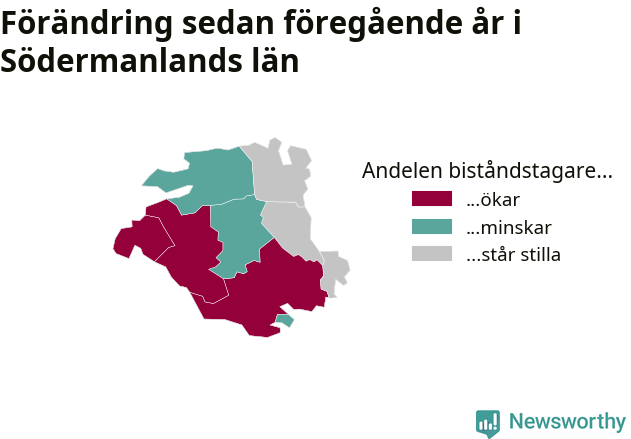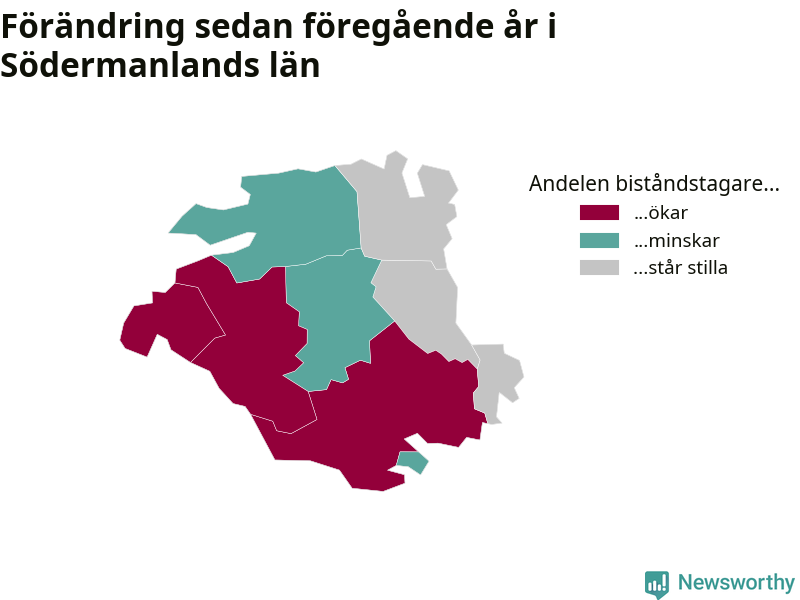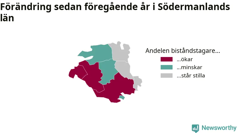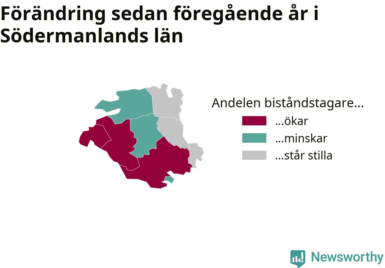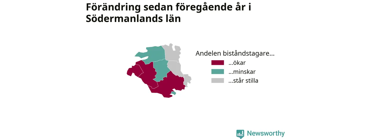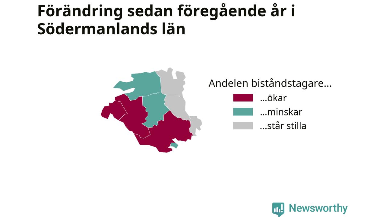 I Södermanland som helhet var andelen biståndstagare