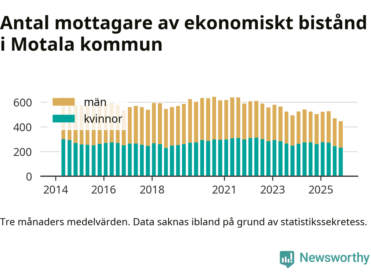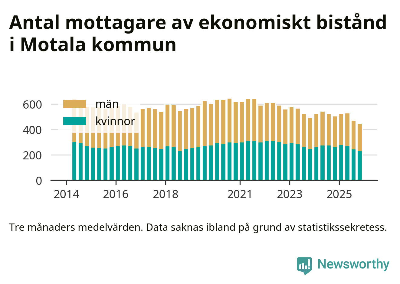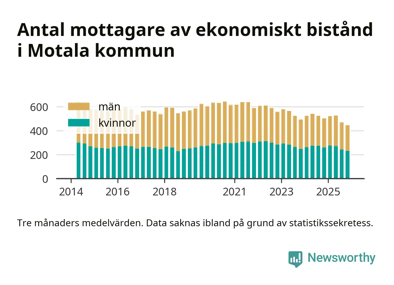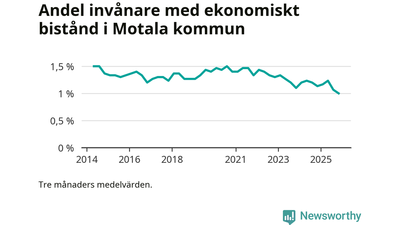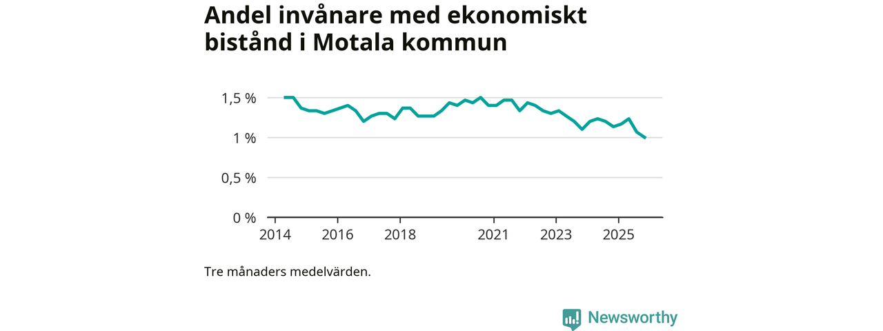 I genomsnitt 444 personer per månad fick ekonomiskt bistånd i Motala kommun