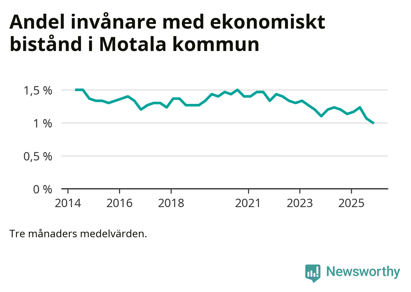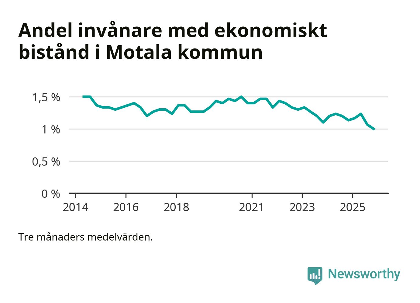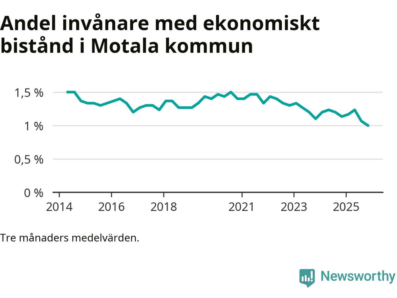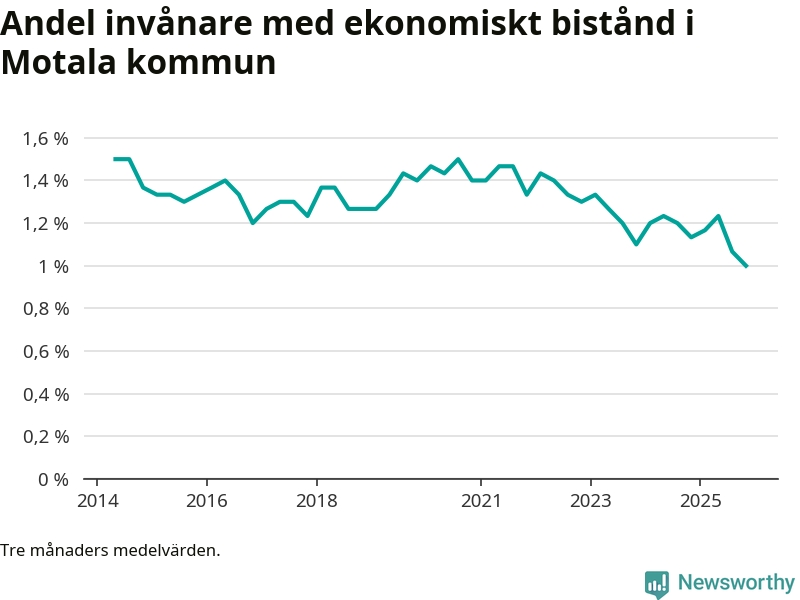 Andelen invånare med ekonomiskt bistånd i Motala kommun