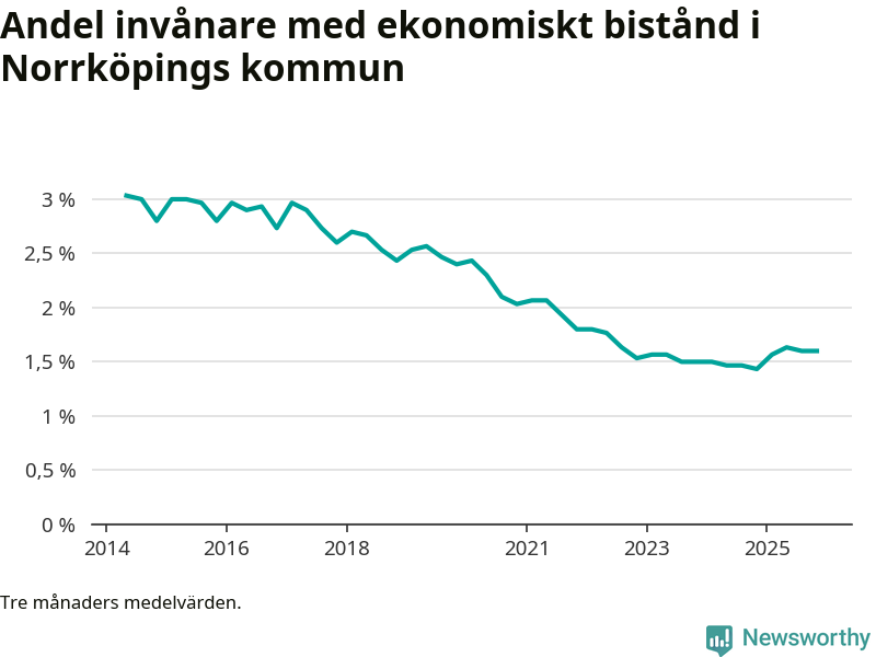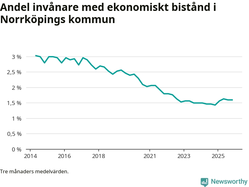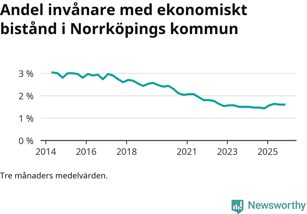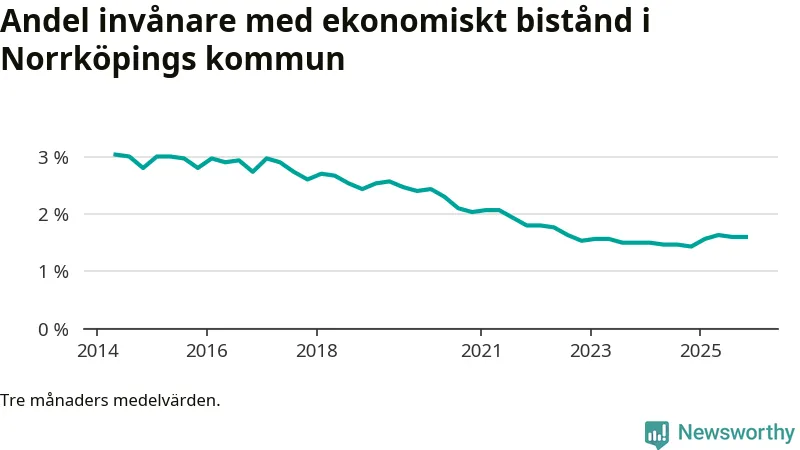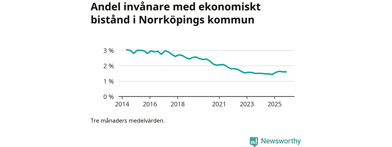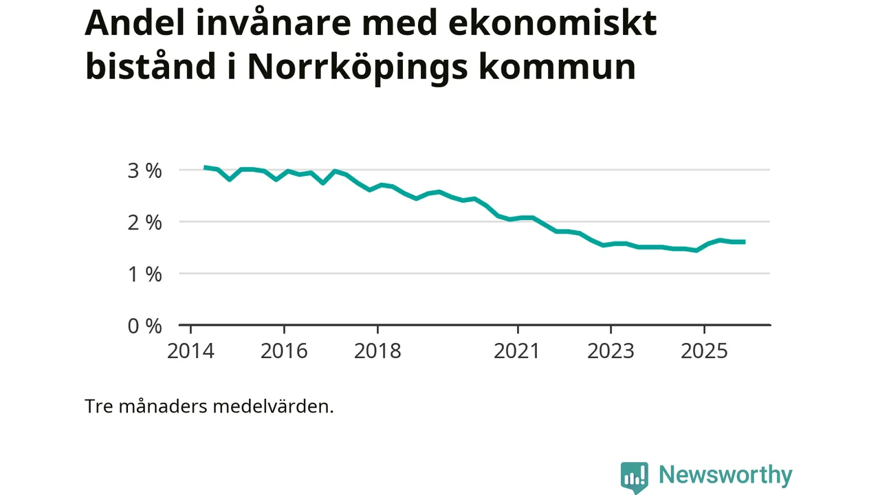 Andelen invånare med ekonomiskt bistånd i Norrköpings kommun