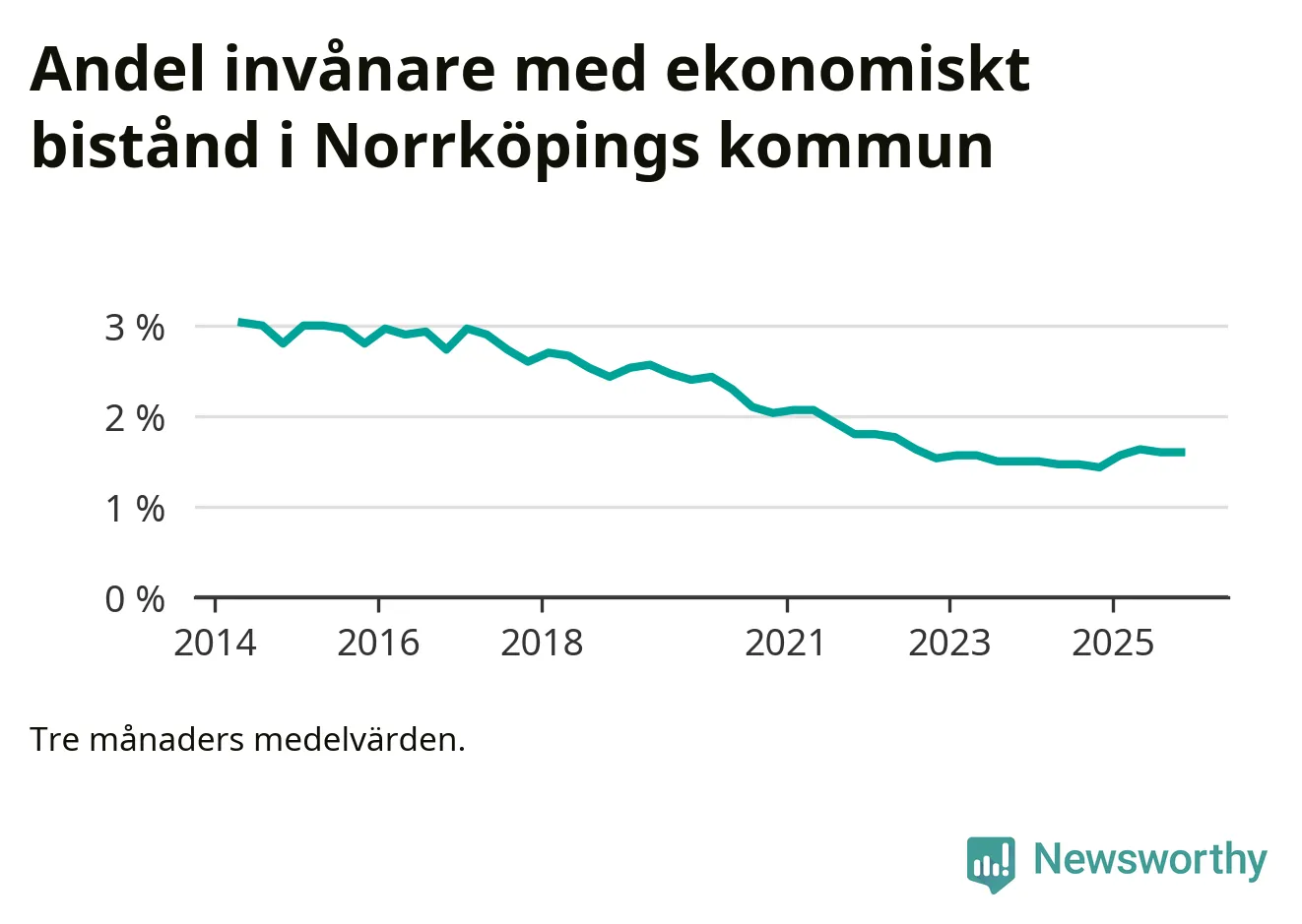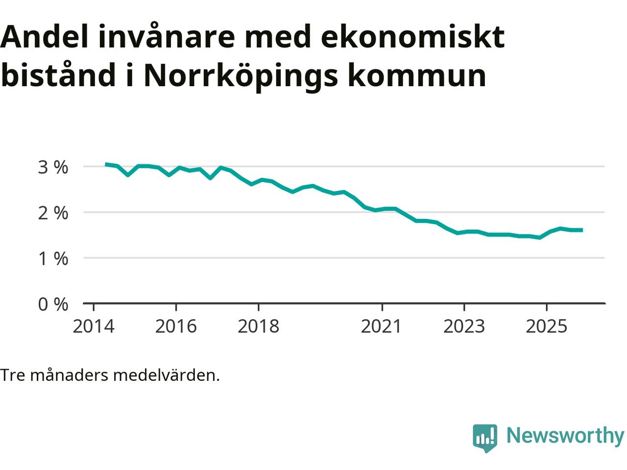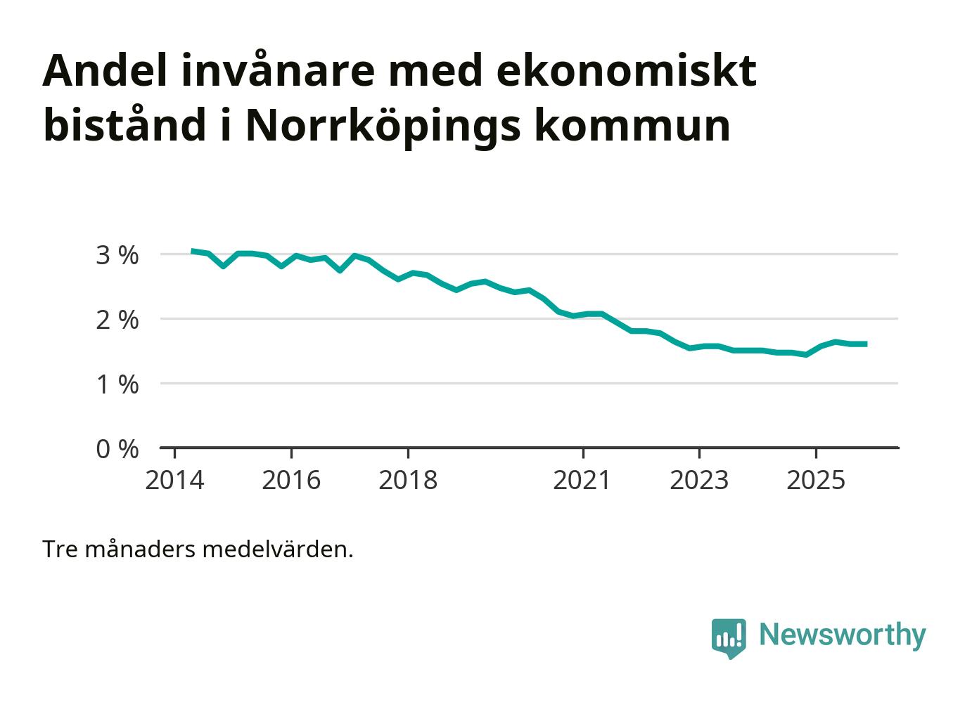 Andelen invånare med ekonomiskt bistånd i Norrköpings kommun