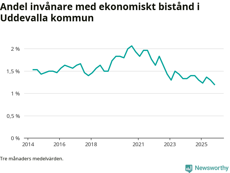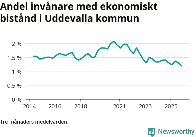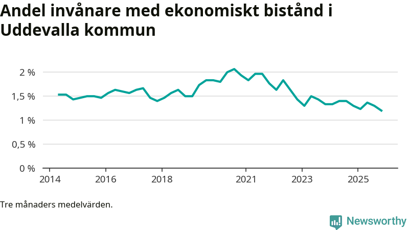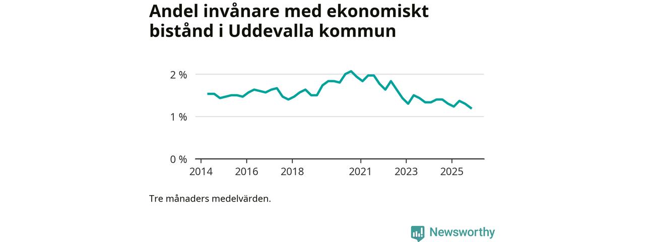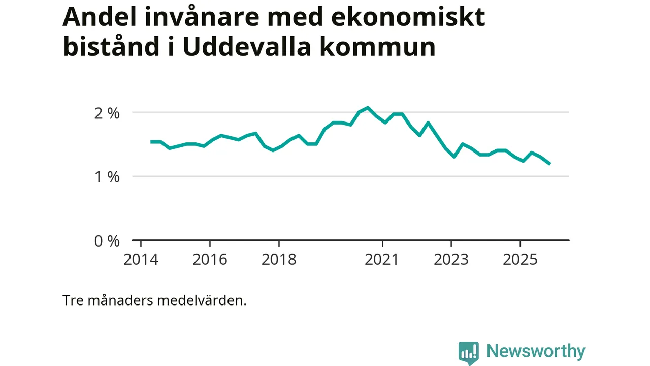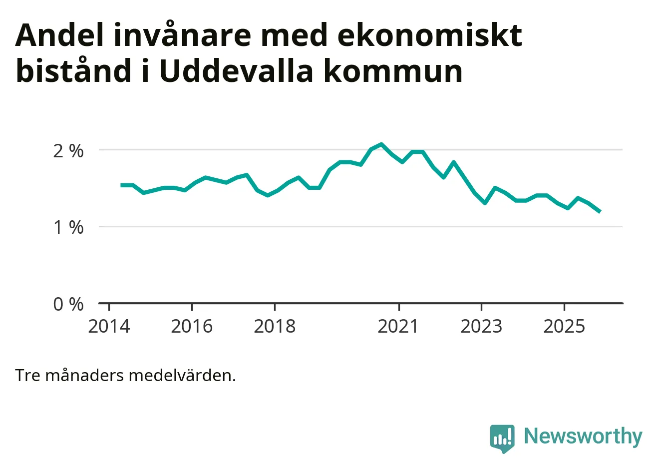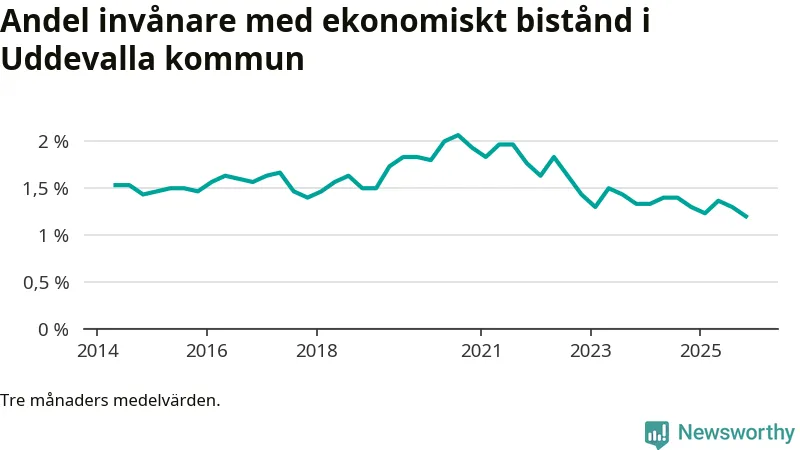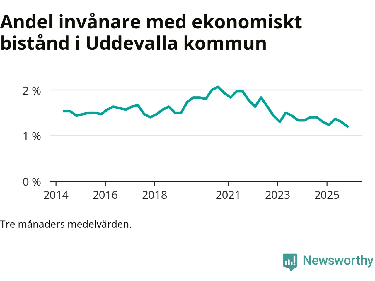 Andelen invånare med ekonomiskt bistånd i Uddevalla kommun var under hösten den lägsta sedan åtminstone 2014. Det visar den senaste, preliminära statistiken från Socialstyrelsen.