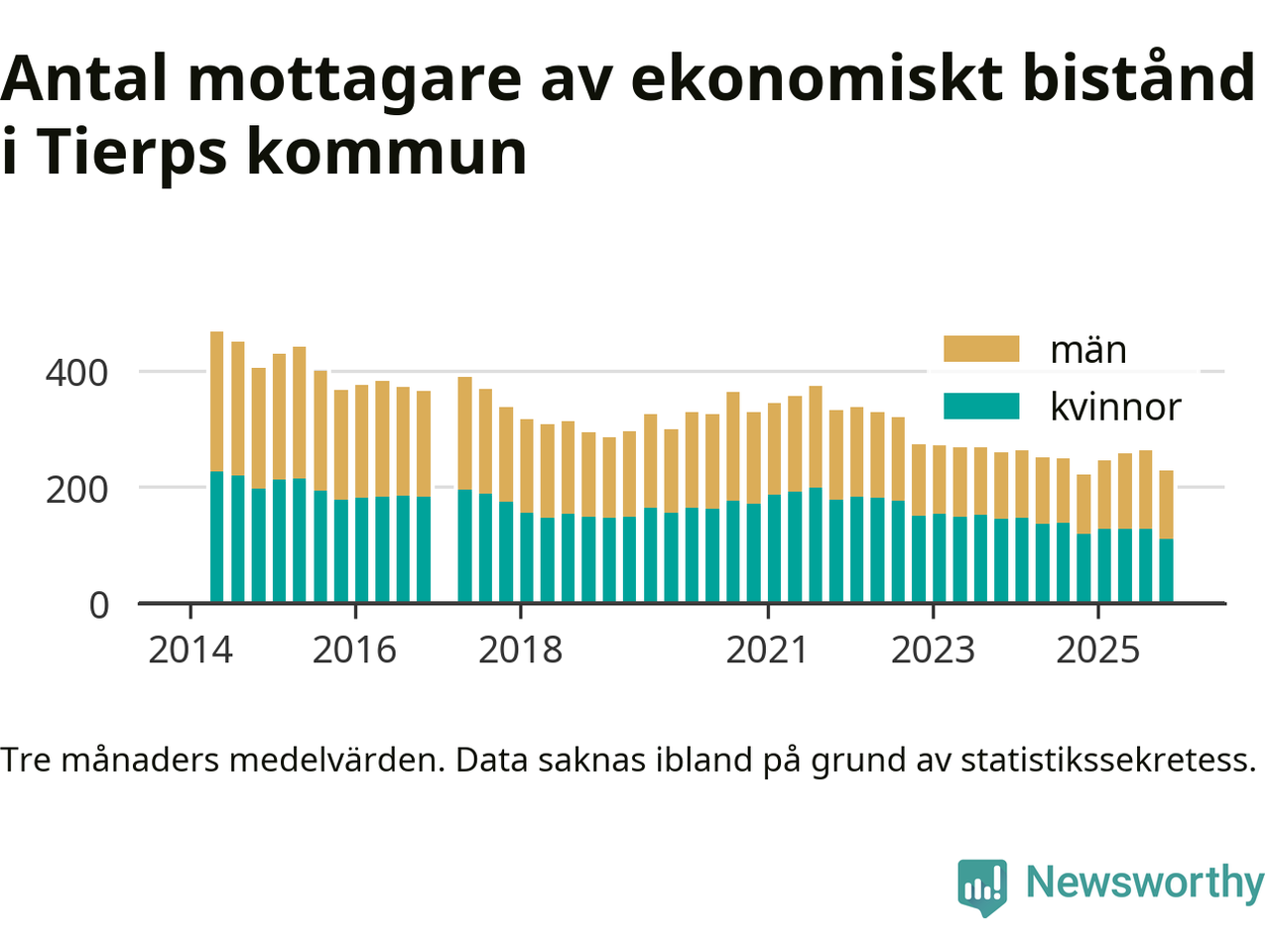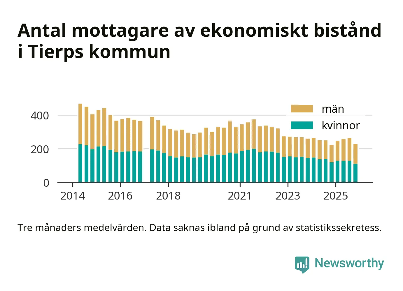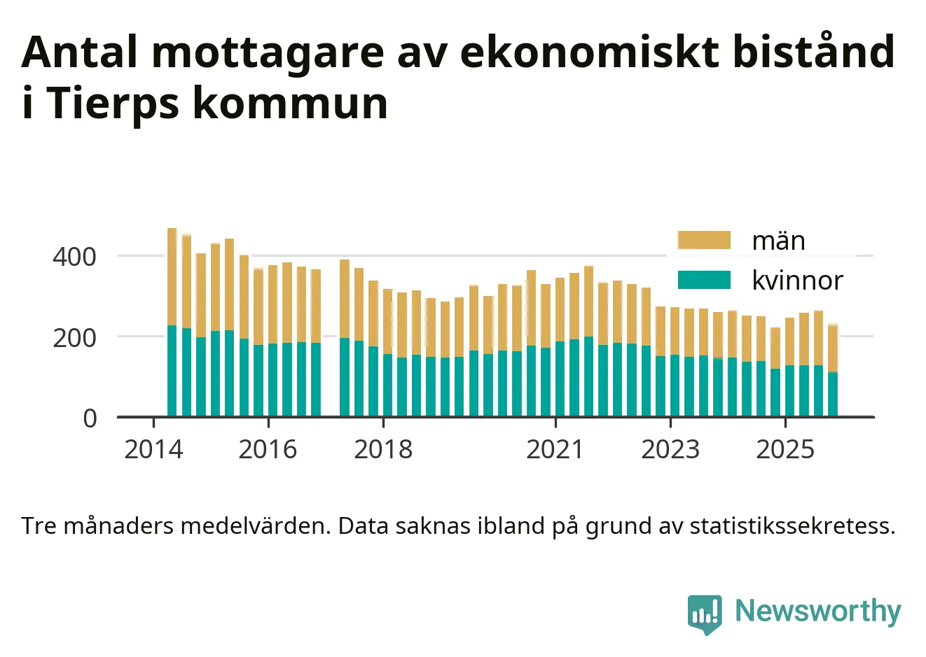 sedan åtminstone 2014, vilket är så långt tillbaka Socialstyrelsens statistik sträcker sig.