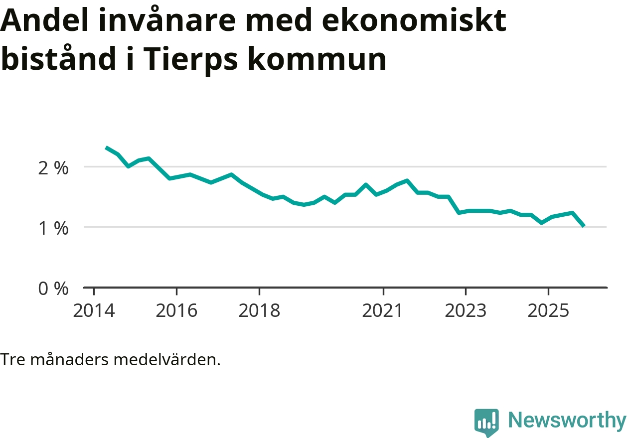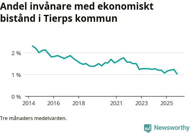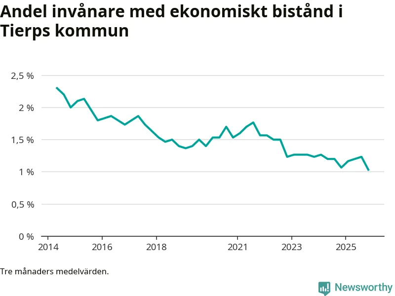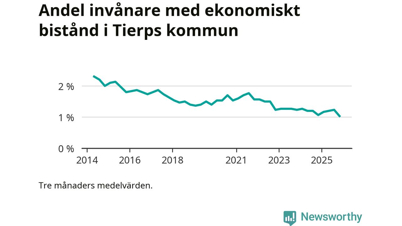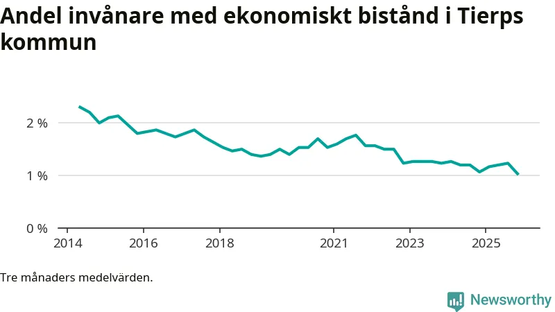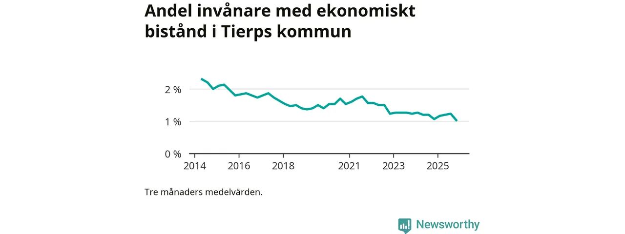 Andelen invånare med ekonomiskt bistånd i Tierps kommun