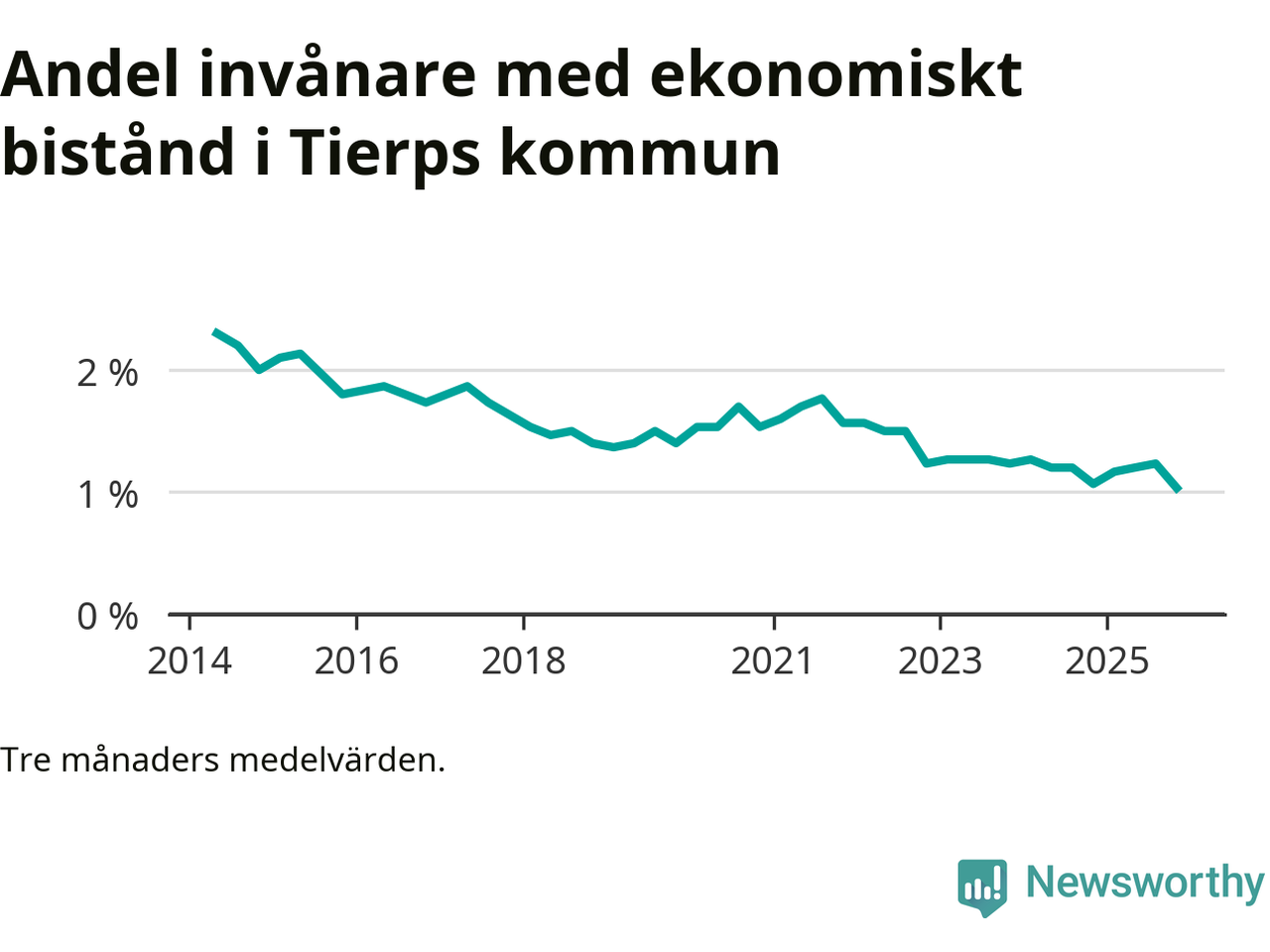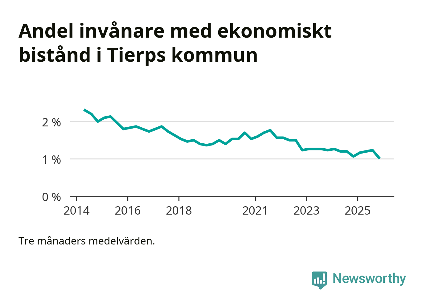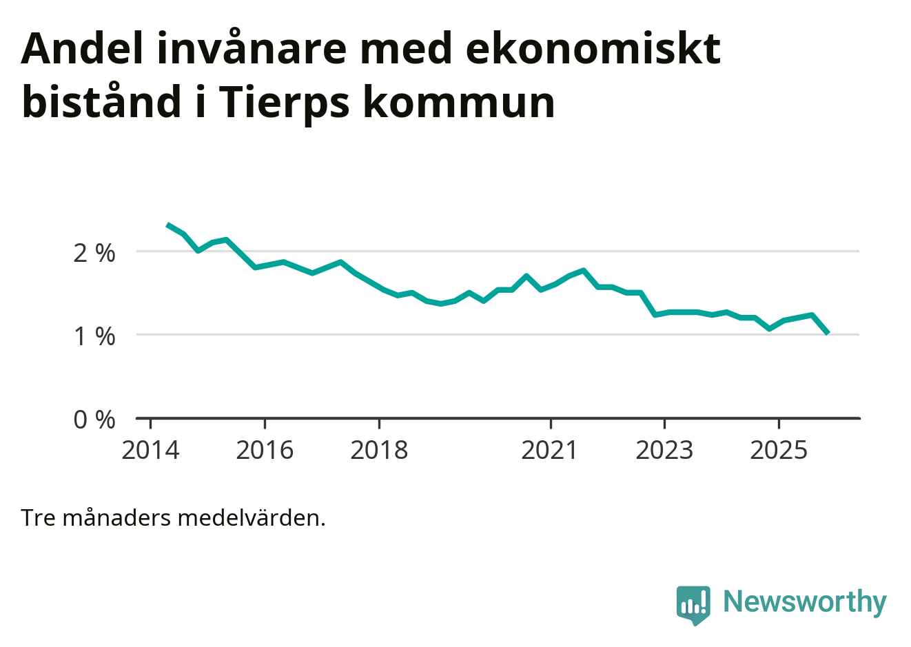 Andelen invånare med ekonomiskt bistånd i Tierps kommun