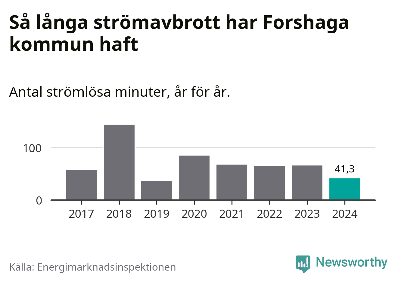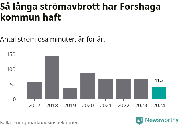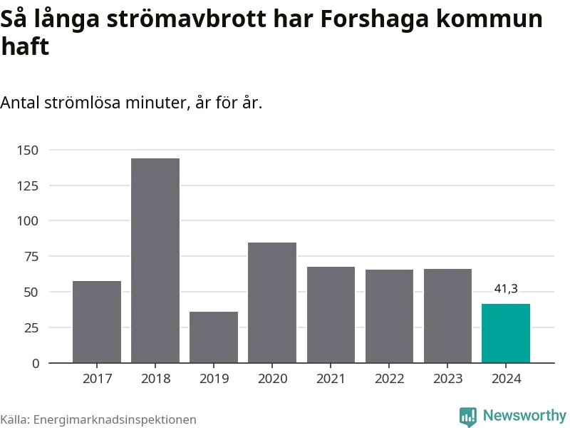 Mest tid utan ström (i alla fall under perioden 2017–2024) fick Forshagaborna genomleva under 2018 –