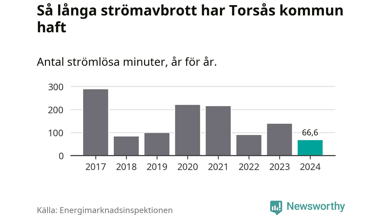 Torsås kommuns hushåll drabbas ett typiskt år av drygt ett strömavbrott och en timme och 58 minuter strömlöst.