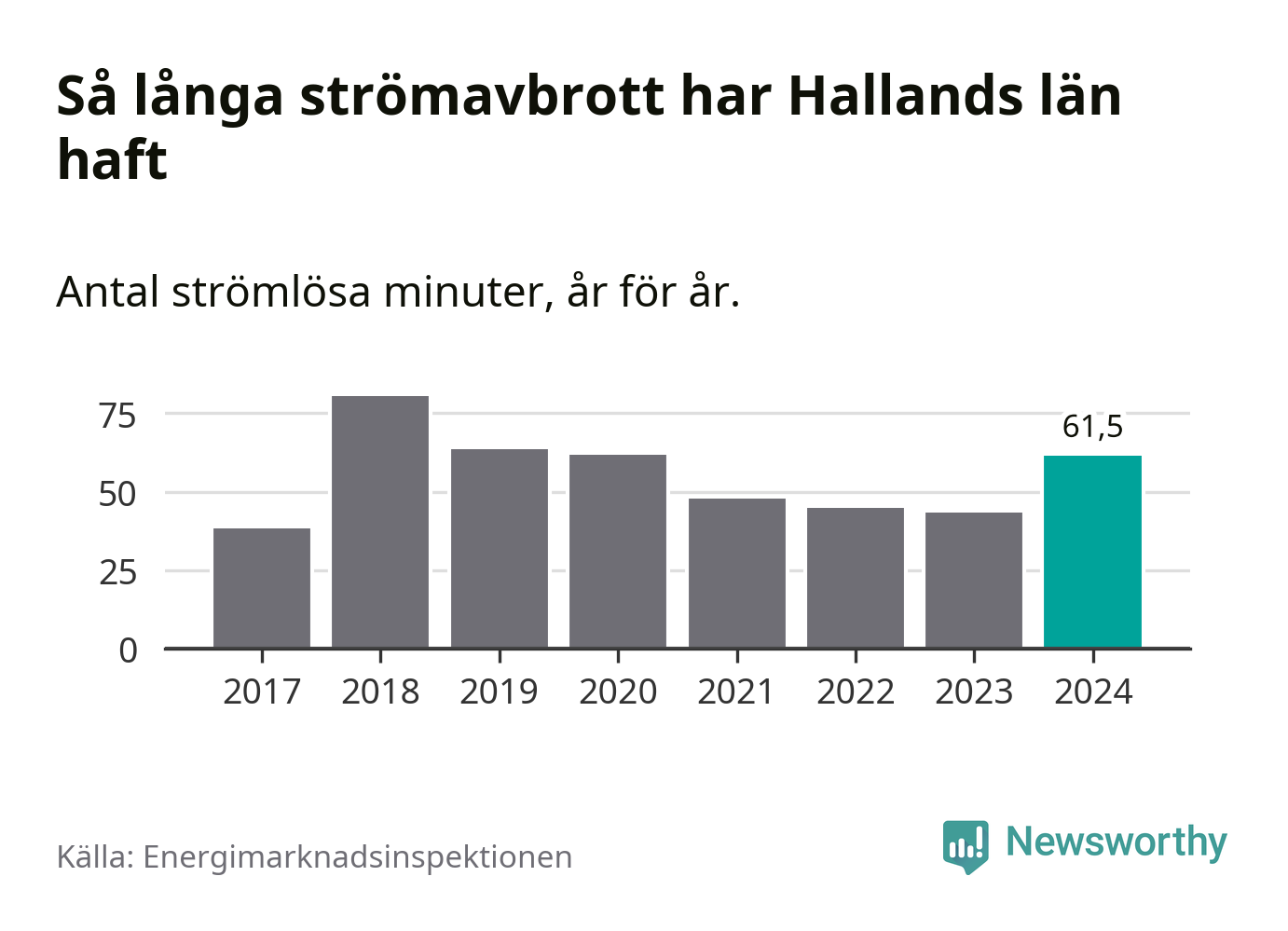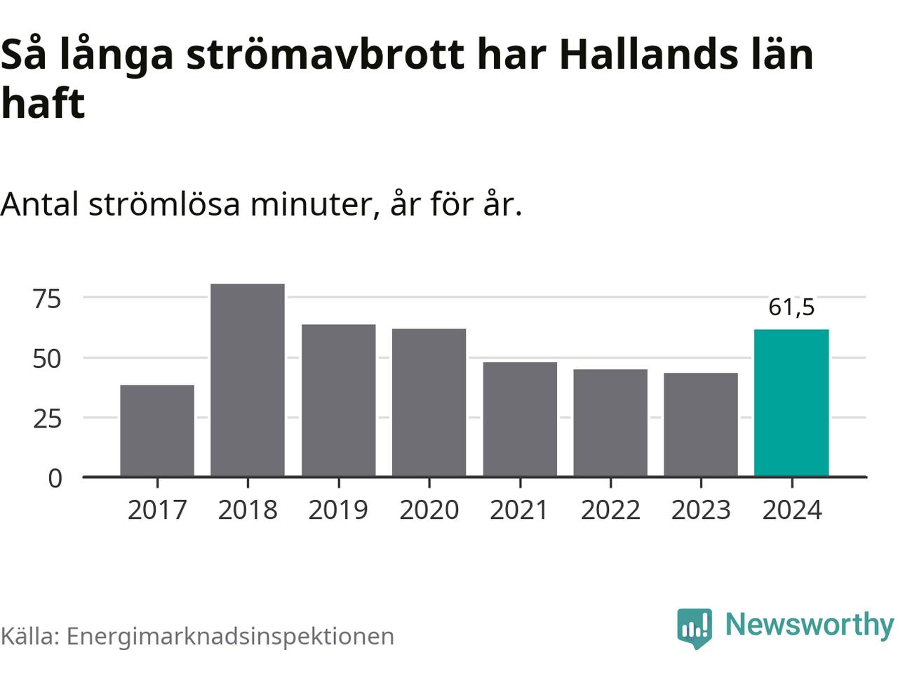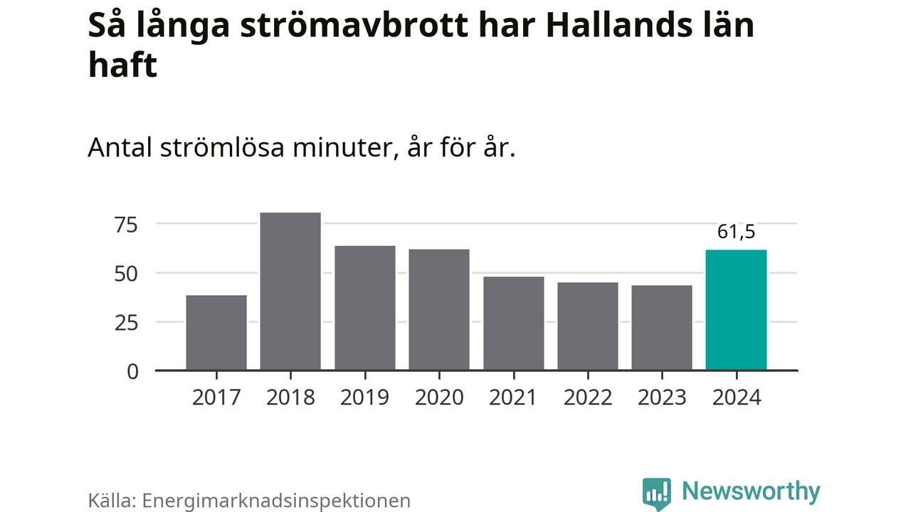Hallands läns hushåll drabbas ett typiskt år av knappt ett strömavbrott och 55 minuter strömlöst.