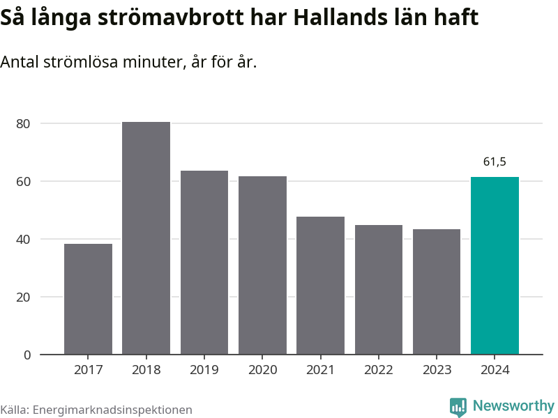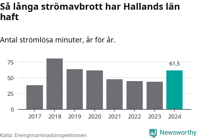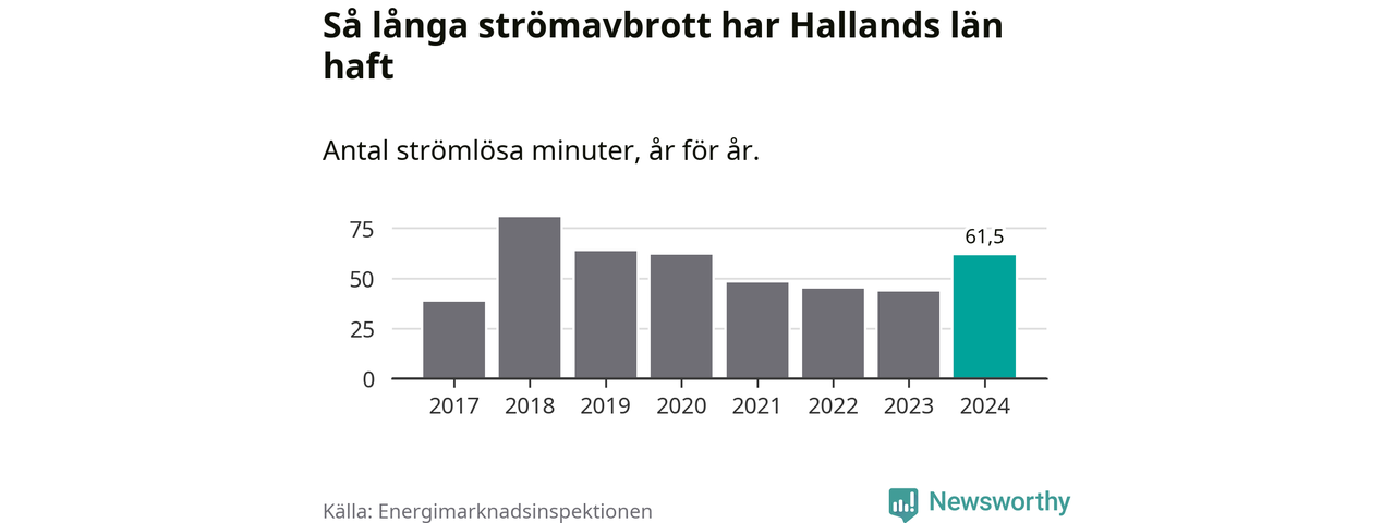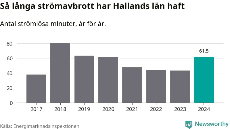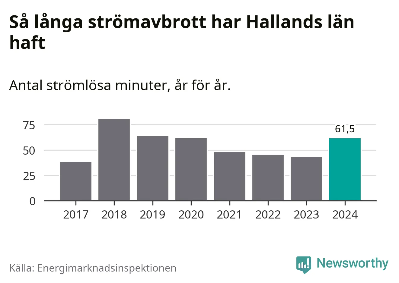 Hallands läns hushåll drabbas ett typiskt år av knappt ett strömavbrott och 55 minuter strömlöst.