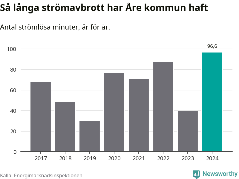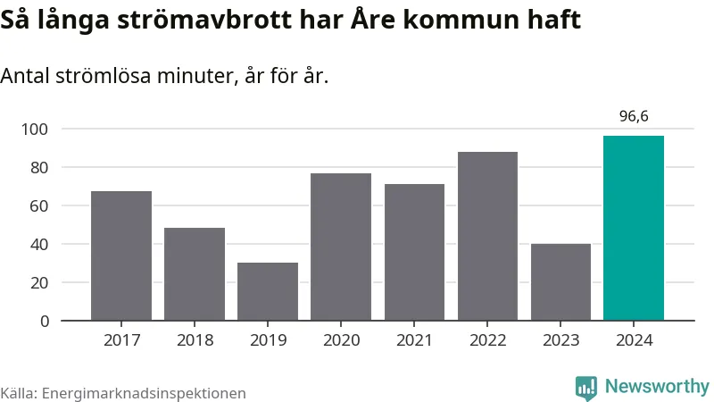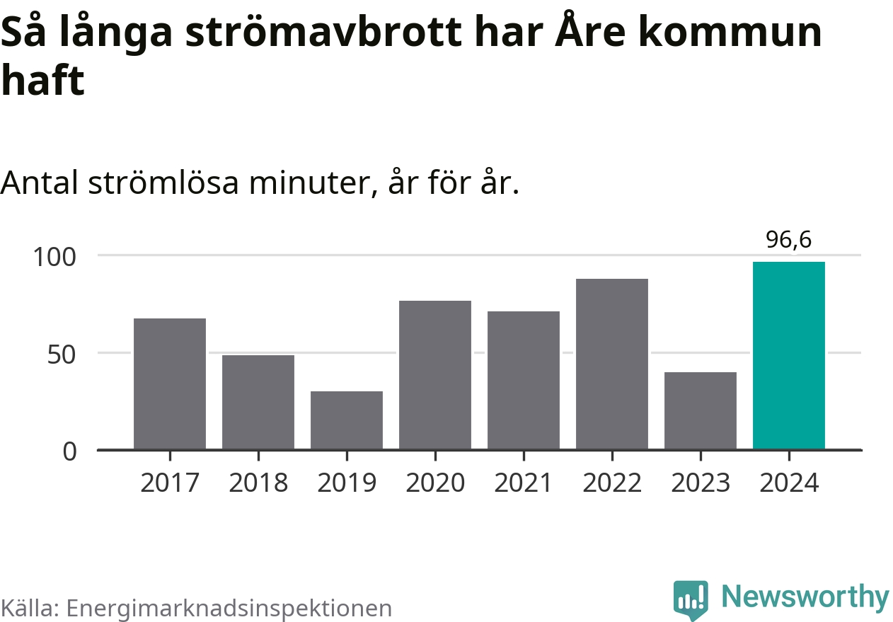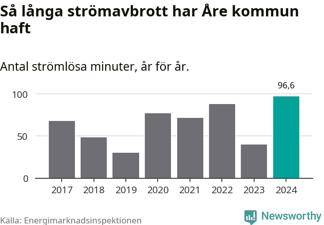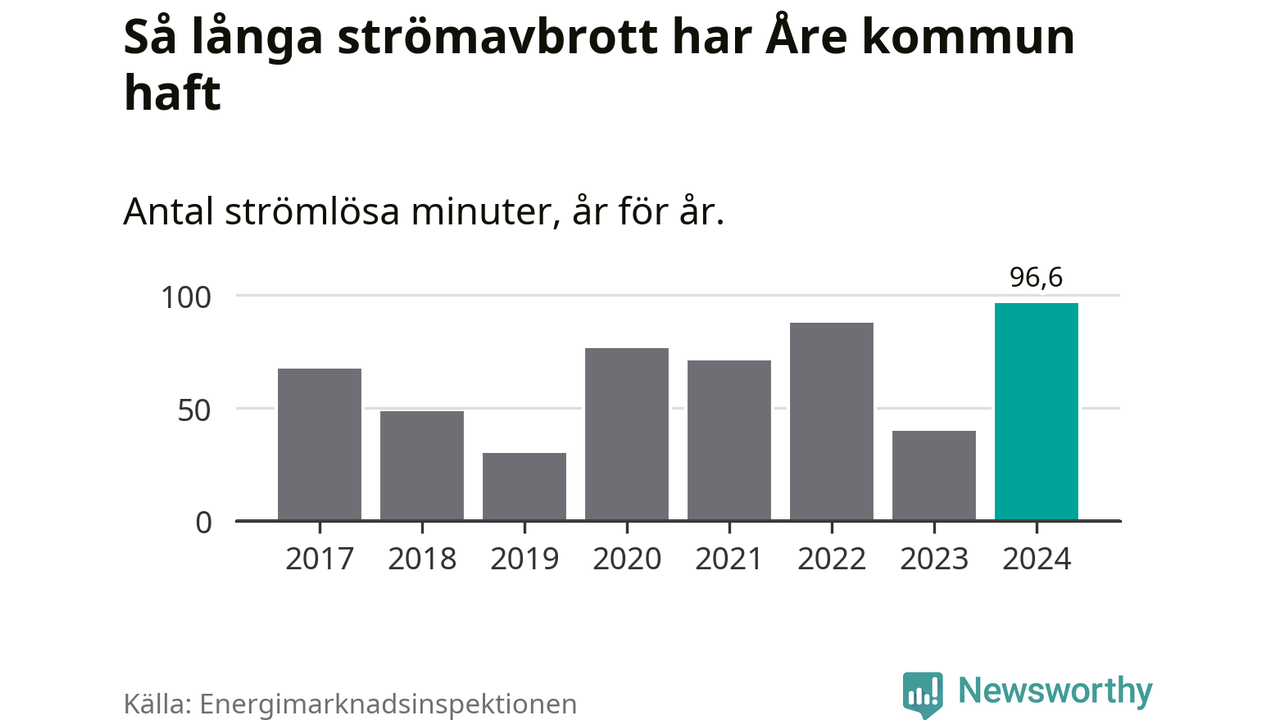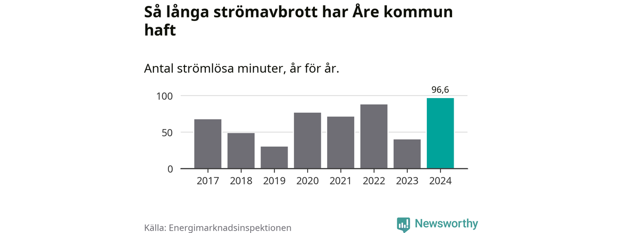 Mest tid utan ström (i alla fall under perioden 2017–2024) fick Åreborna genomleva under 2024 –