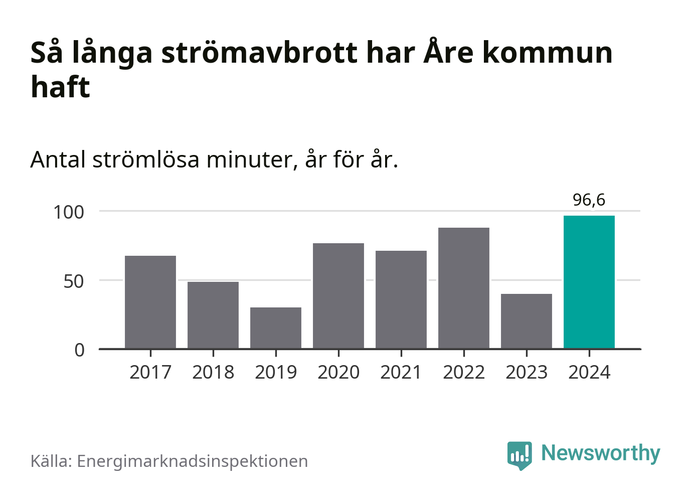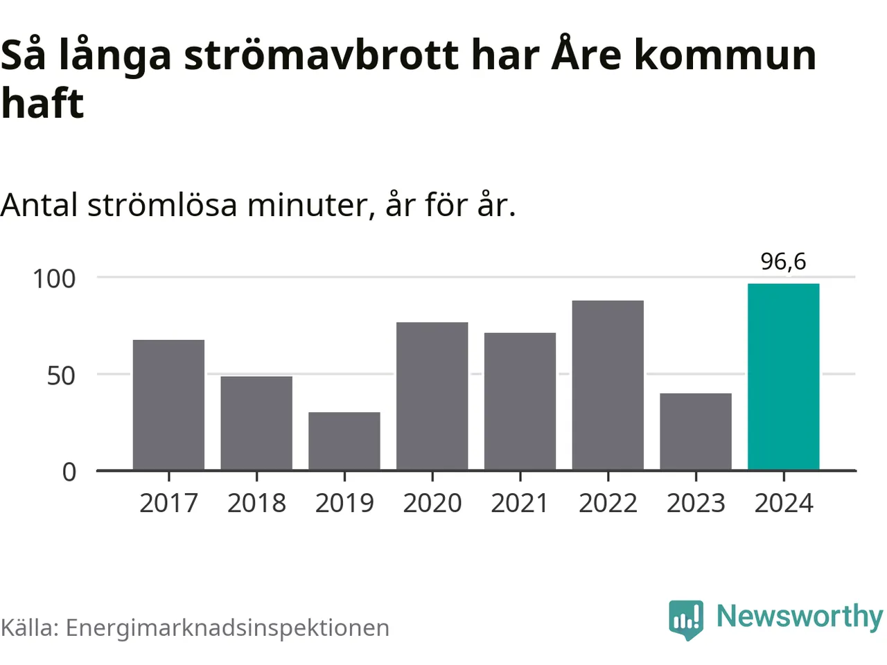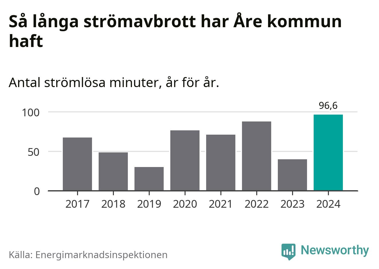 Mest tid utan ström (i alla fall under perioden 2017–2024) fick Åreborna genomleva under 2024 –