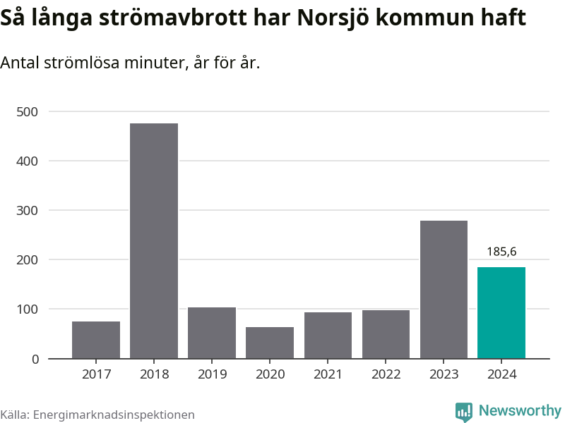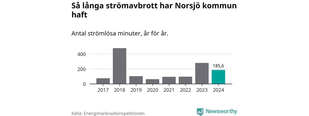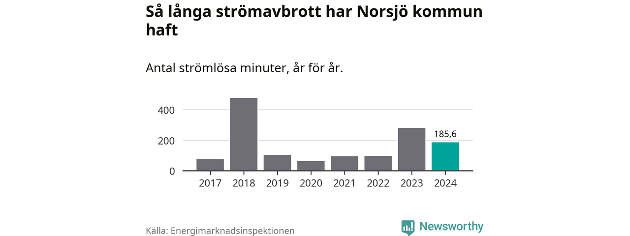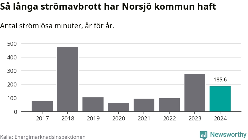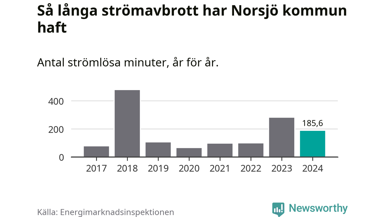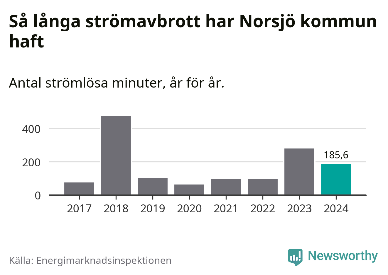Antalet strömavbrott och total strömlös tid varierar från år till år i Norsjö kommun. Mest tid utan ström (i alla fall under perioden 2017–2024) fick Norsjöborna genomleva under 2018 – sju timmar och 56 minuter. Det är ungefär lika lång tid som det tar att se hela ”The Hobbit”-trilogin.