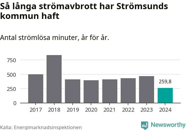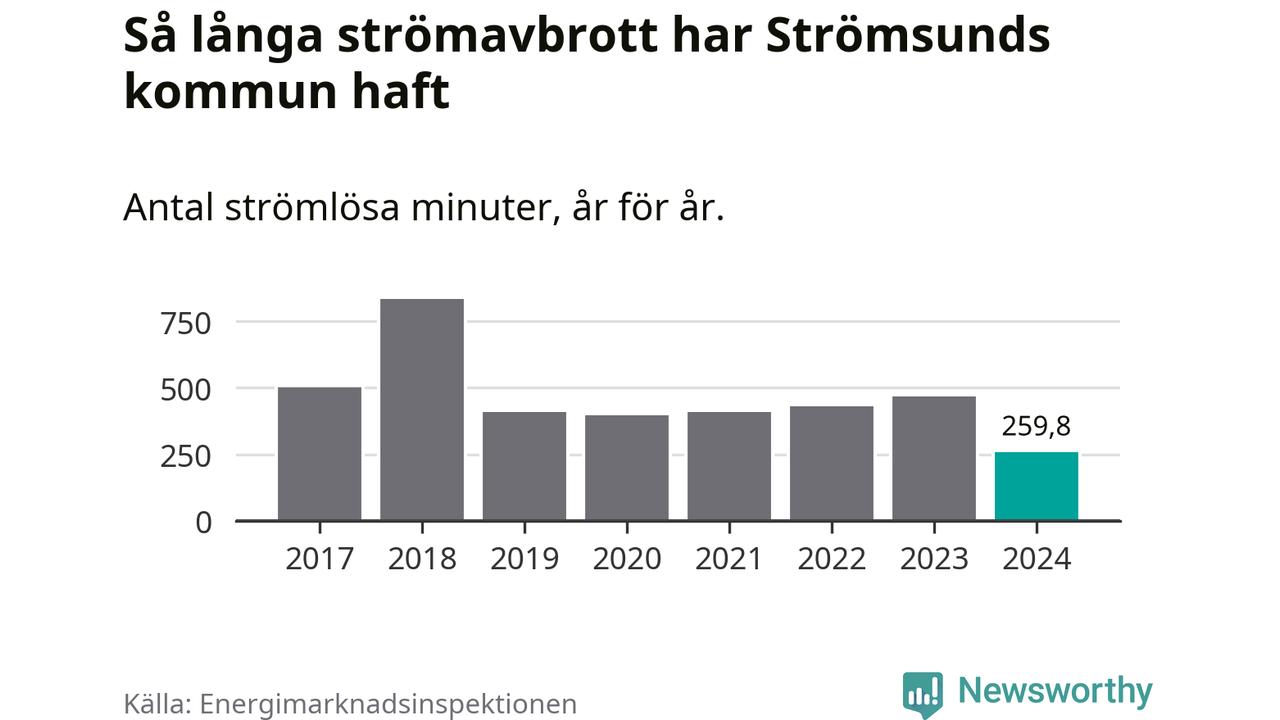 Hushåll i Sverige kan drabbas av högst tre långa, oaviserade strömavbrott för att leveranskvaliteten ska anses vara god, enligt Energimarknadsinspektionen. Normalt är det omkring 42 procent av hushållen i Strömsund som inte uppnår det kravet. År 2018 var det så många som 82 procent som hade minst fyra långa strömavbrott.