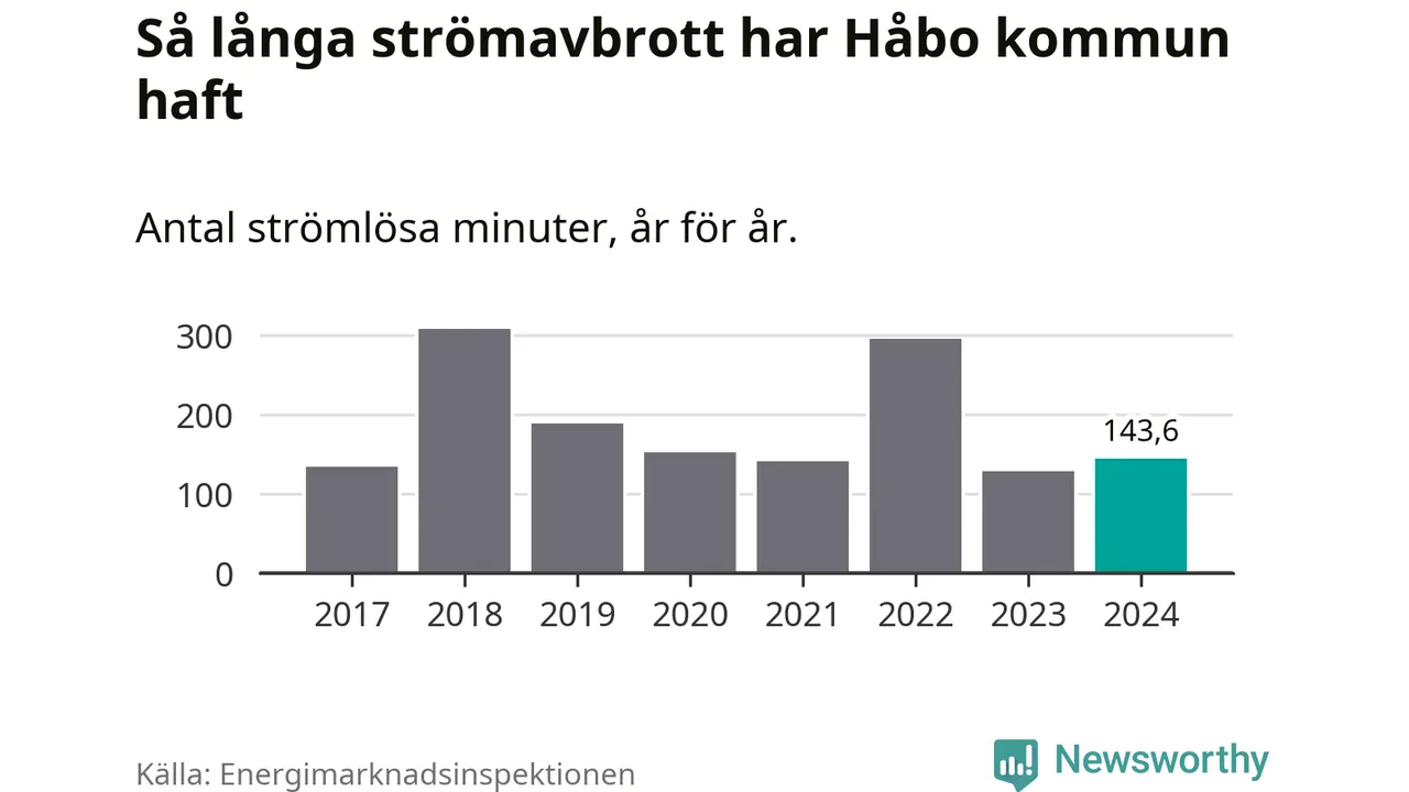 Håbo kommuns hushåll drabbas ett typiskt år av drygt två strömavbrott och två timmar och 28 minuter strömlöst.