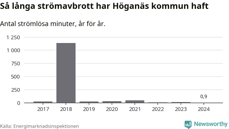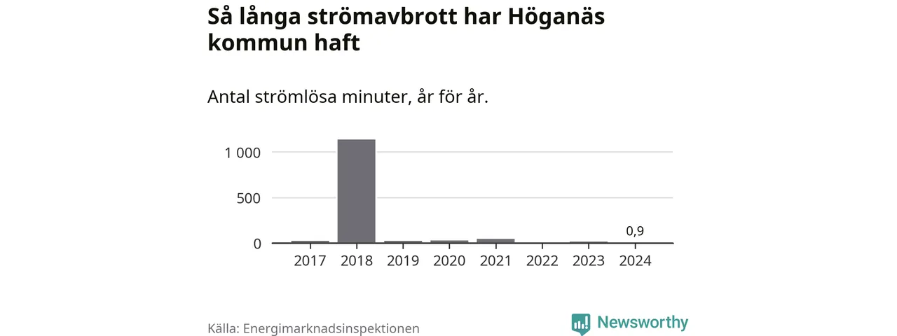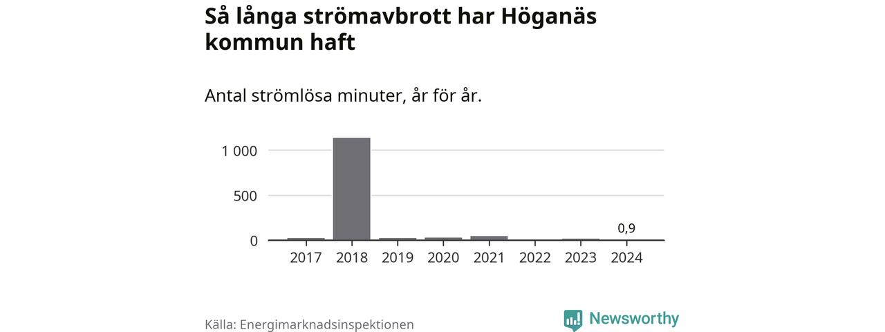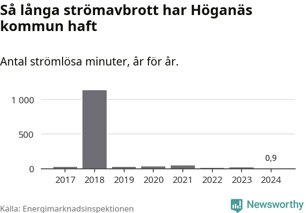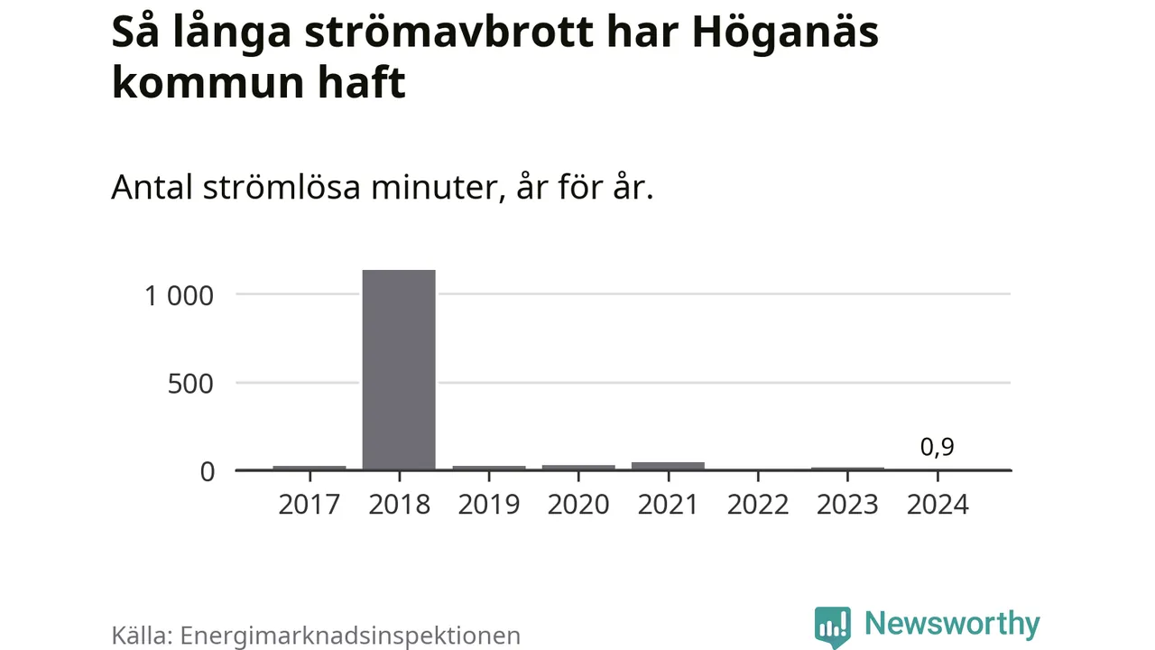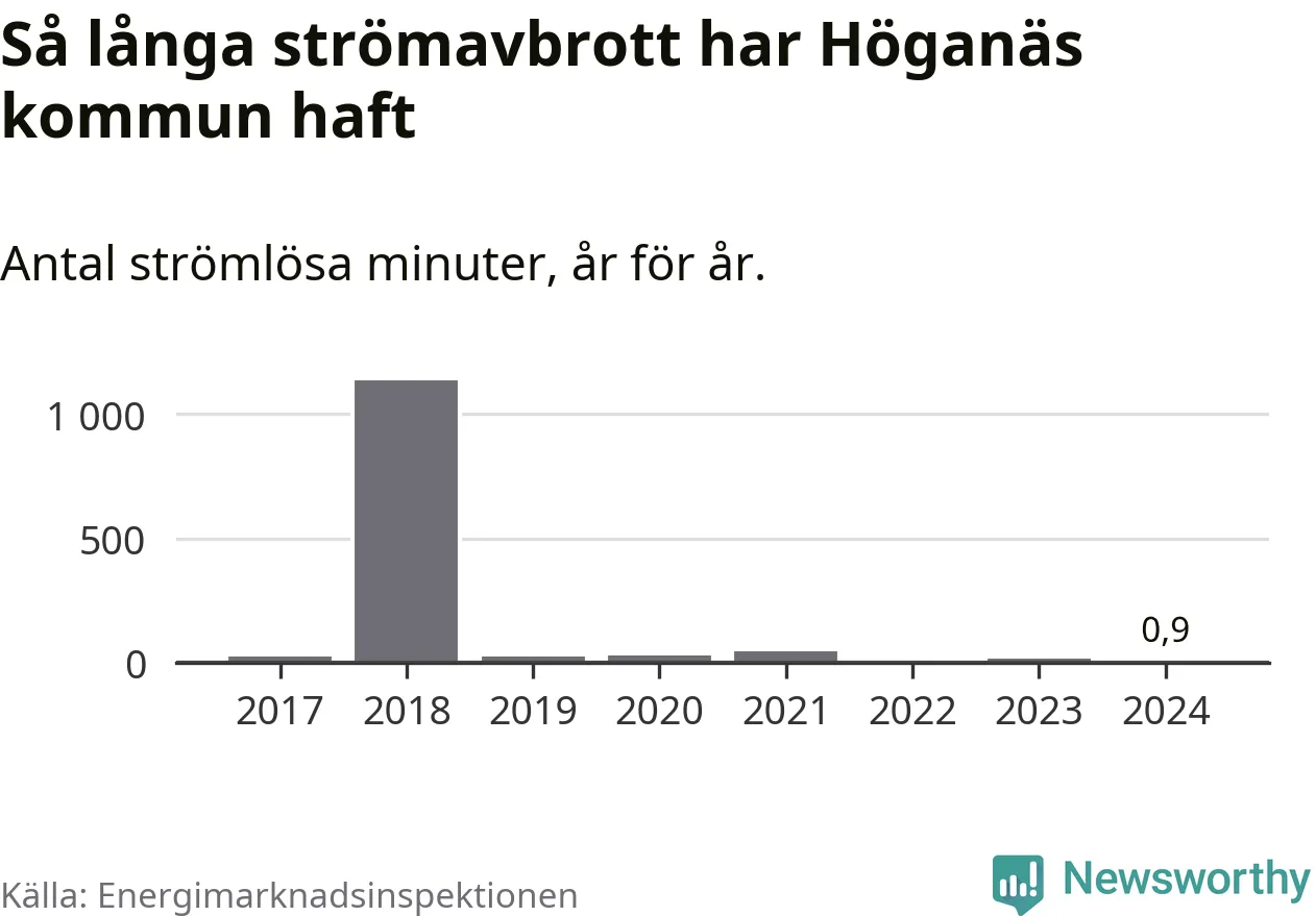 Höganäs kommuns hushåll drabbas normalt inte ens av ett enda strömavbrott per år. Om avbrott ändå sker är de relativt korta – i snitt 24 strömlösa minuter per hushåll och år.