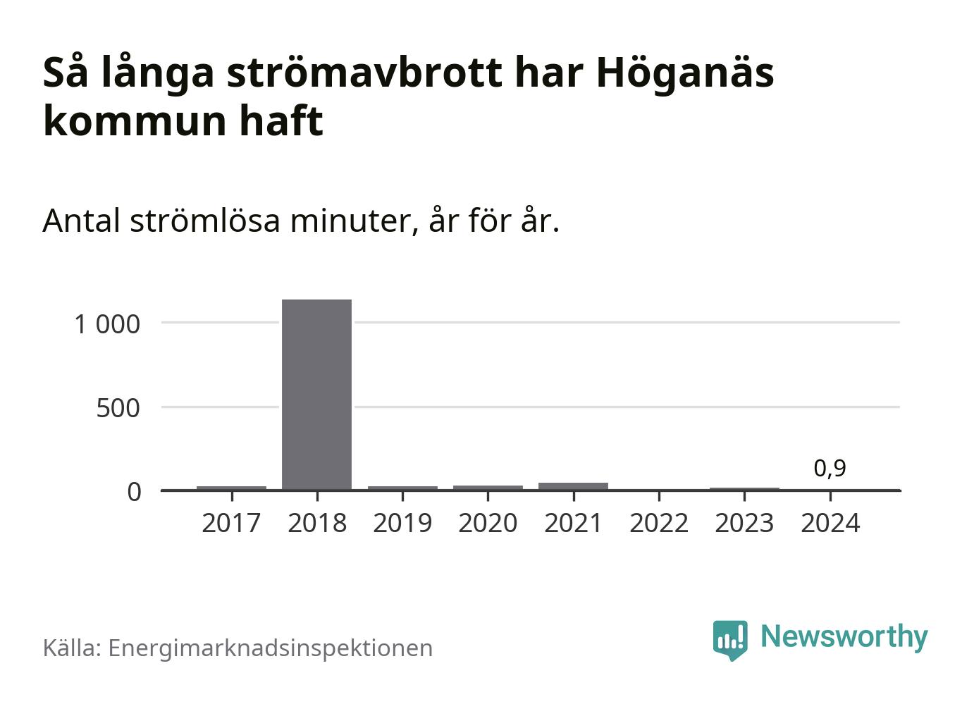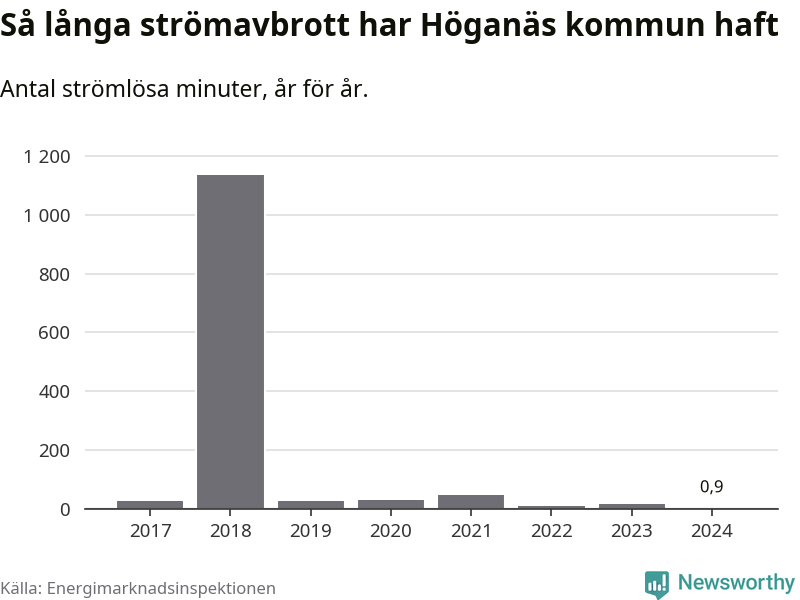 Antalet strömavbrott och total strömlös tid varierar från år till år i Höganäs kommun. Mest tid utan ström (i alla fall under perioden 2017–2024) fick Höganäsborna genomleva under 2018 – 18 timmar och 56 minuter. Det är 18 timmar och 32 minuter längre än under ett normalår.