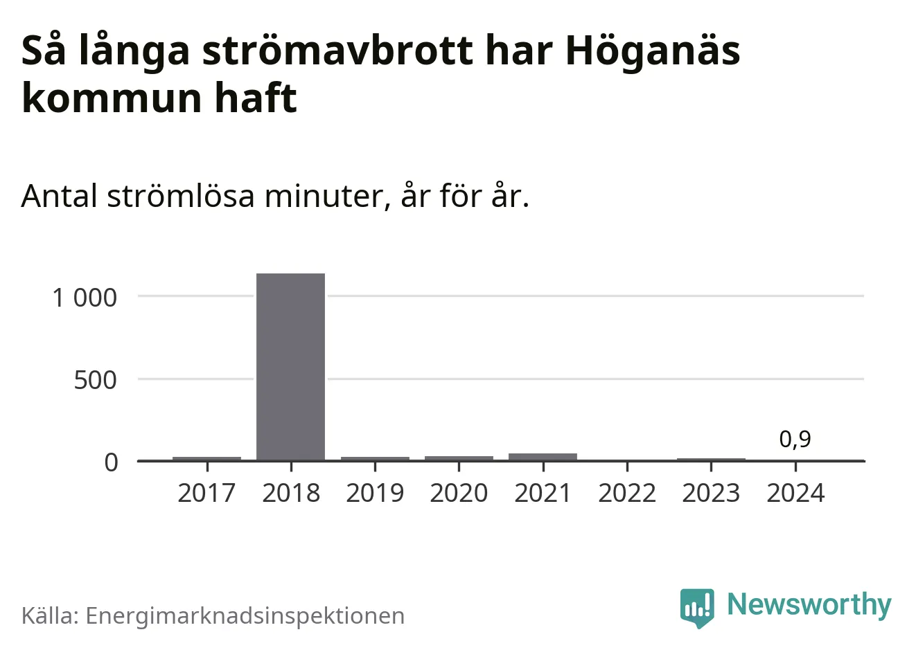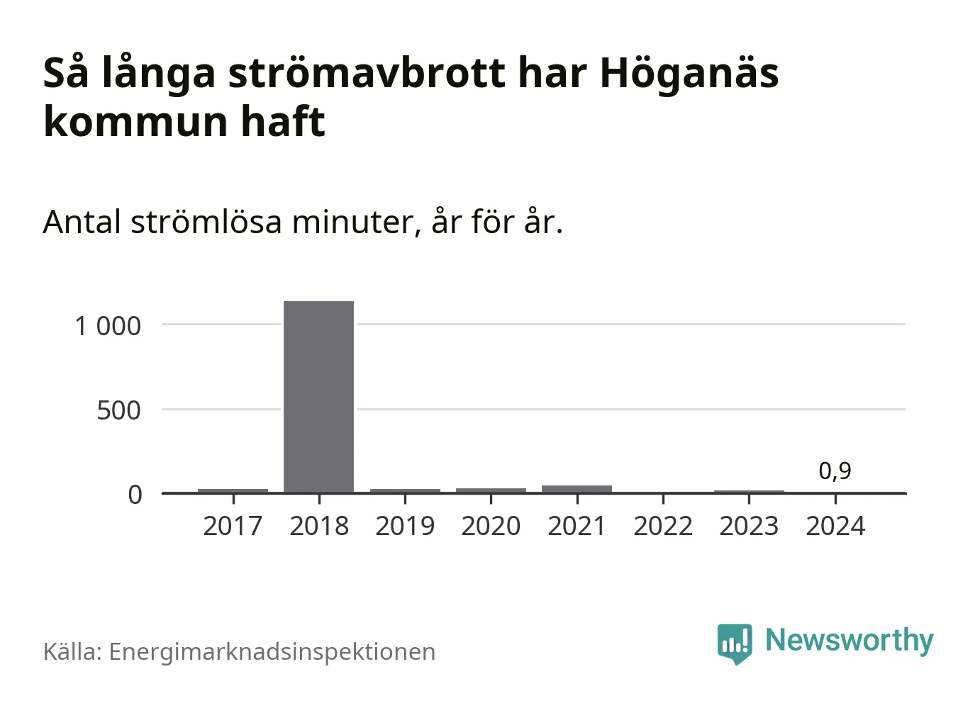 ”Stormåren 2011 (Dagmar), 2019 (Alfrida) samt 2008, 2013 och 2015, då ett flertal mindre stormar härjade i landet, sticker ut med betydligt fler avbrott som översteg 24 timmar än övriga år. Under dessa år drabbades upp till ca 70 000 kunder av avbrott längre än 24 timmar. Så det kan variera kraftigt mellan åren”, skriver Energimarknadsinspektionen i ett mejl till Newsworthy.