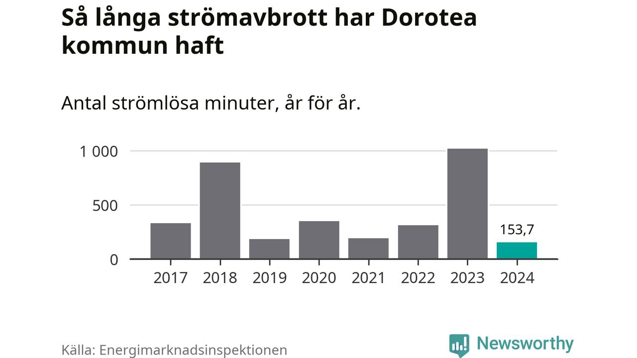 Dorotea kommuns hushåll drabbas ett typiskt år av omkring fyra strömavbrott och fem timmar och 21 minuter strömlöst. Det är den fjärde högsta siffran i landet.