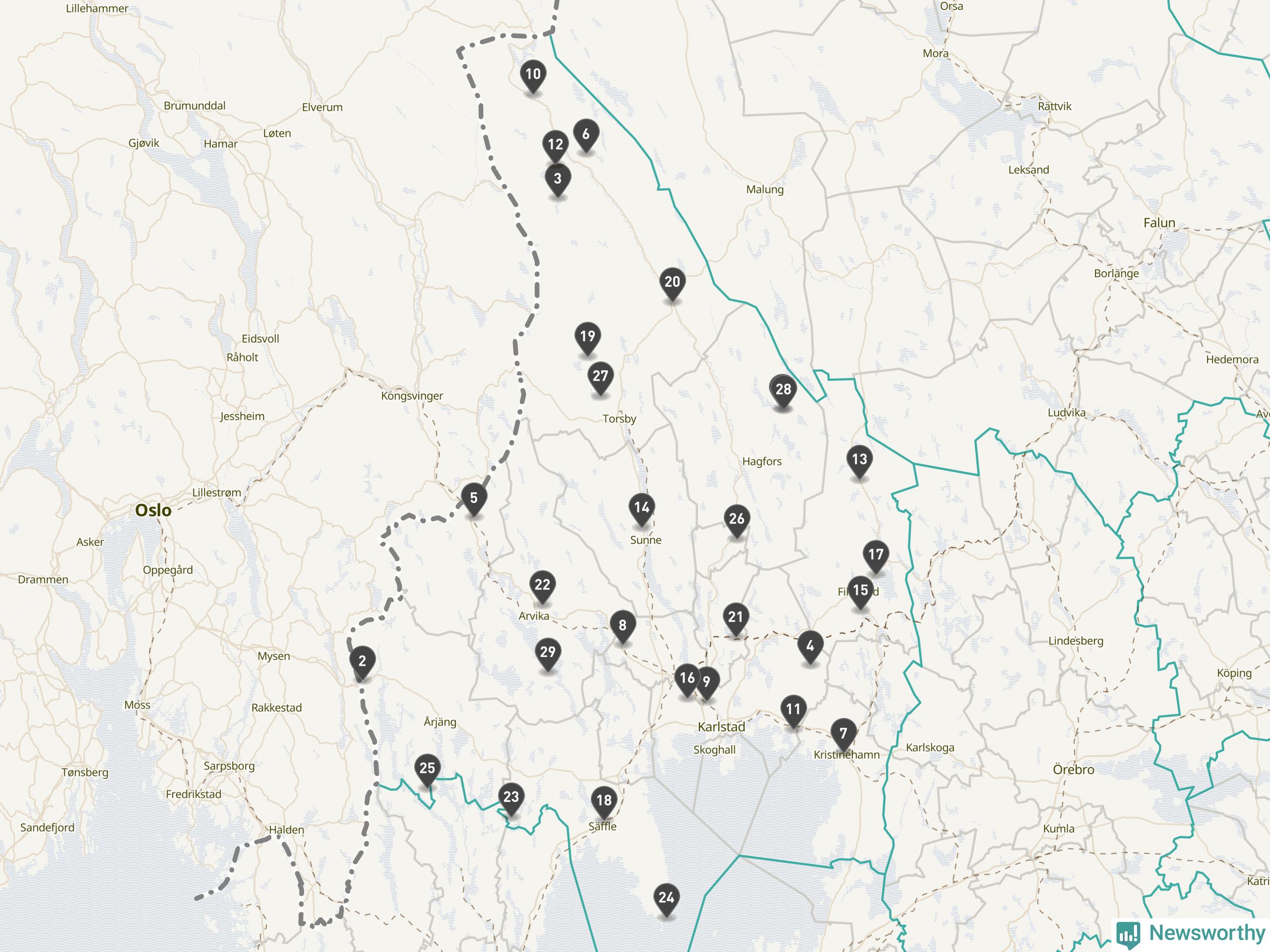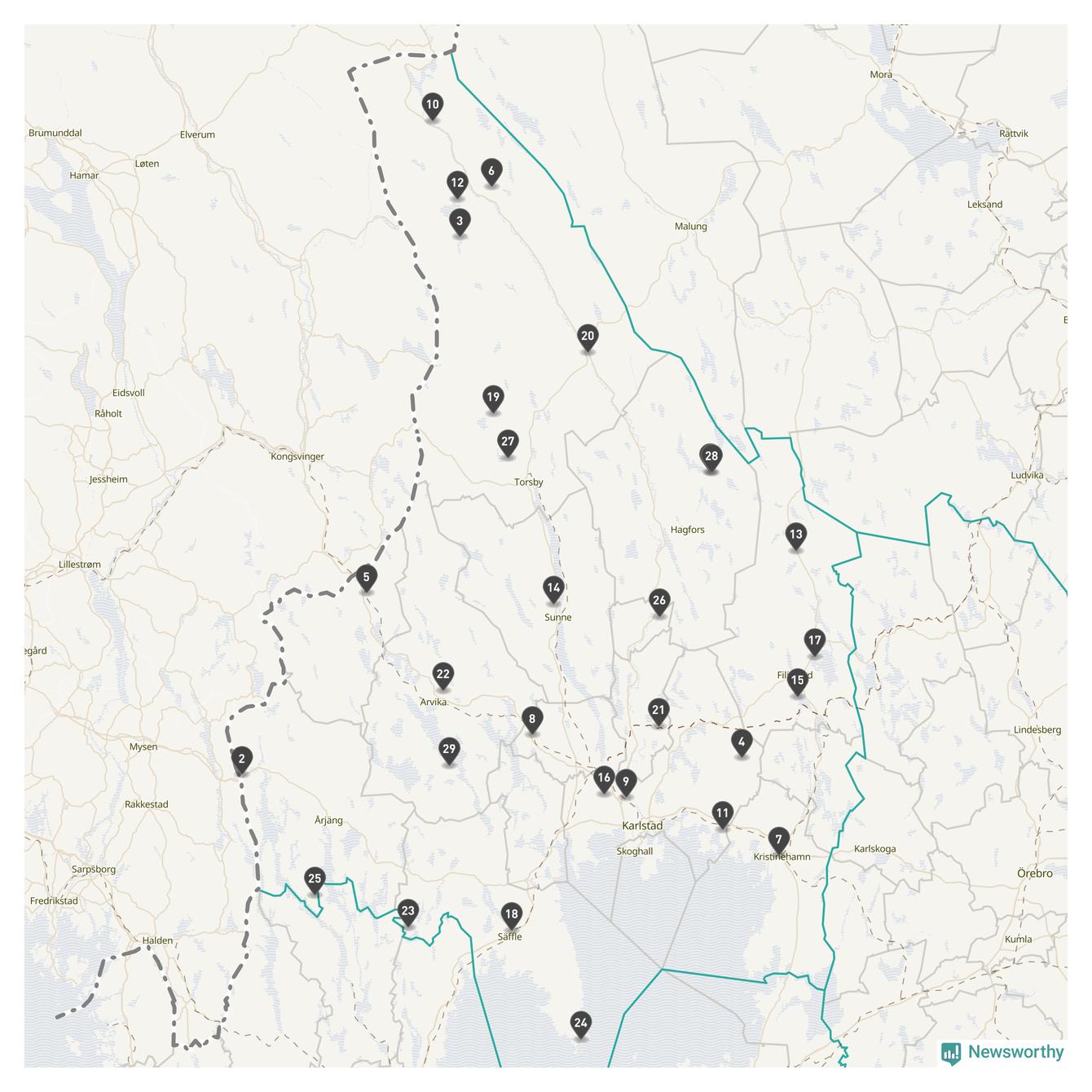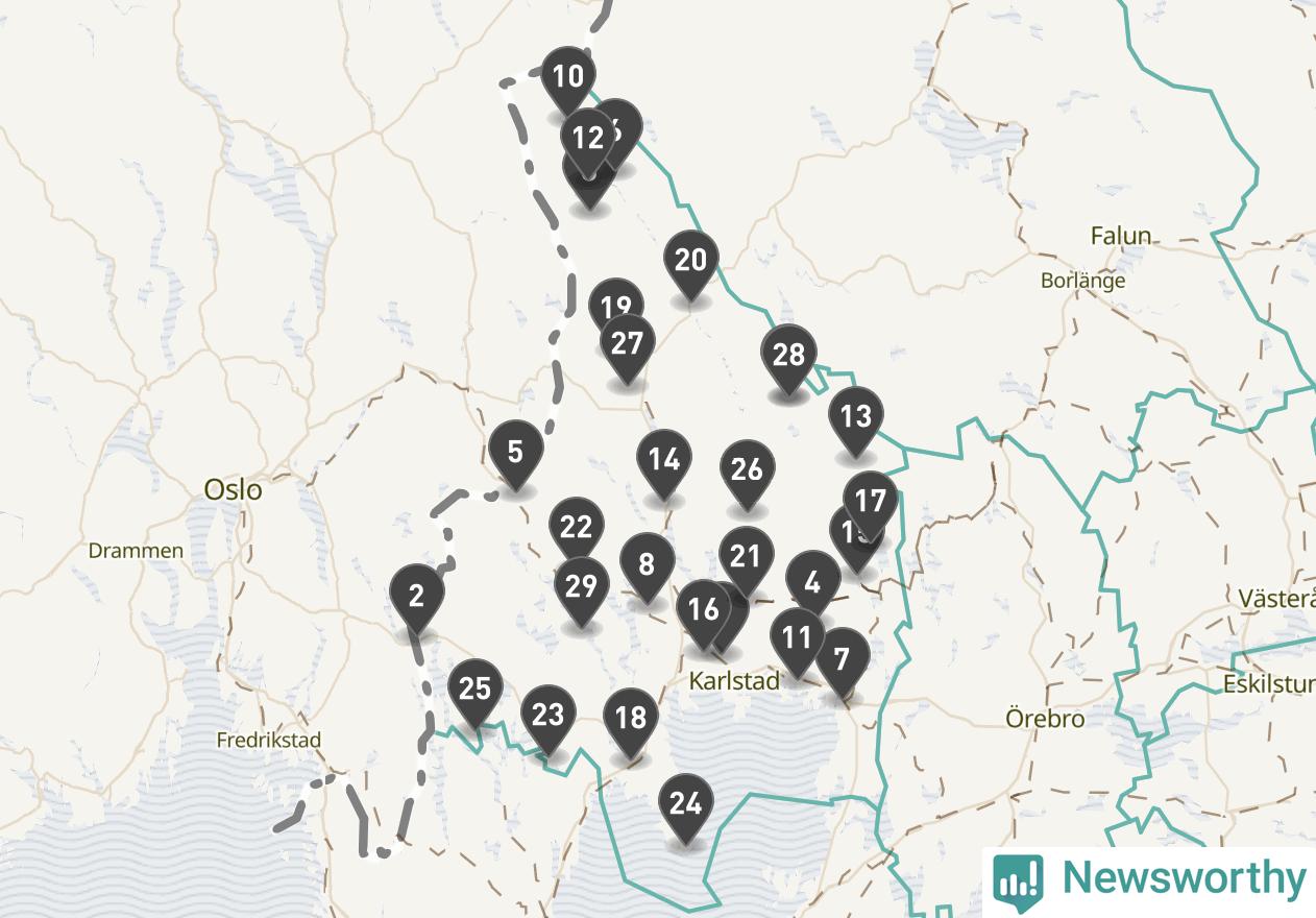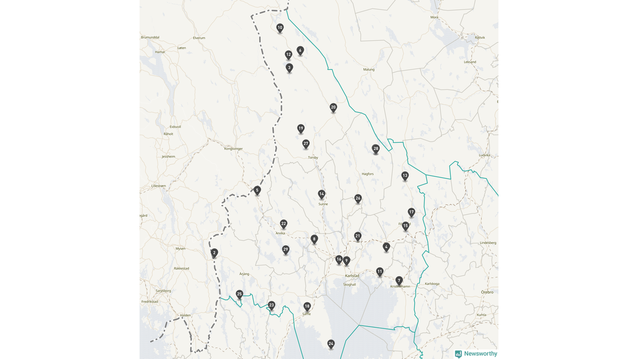 Årsmedeltemperaturen för 2025 var högre än normalt vid alla tio mätstationer i Värmland jämfört med genomsnittet för de senaste tre decennierna (perioden 1991–2020). Det visar Newsworthys beräkningar baserade på delvis preliminär observationsdata från SMHI.