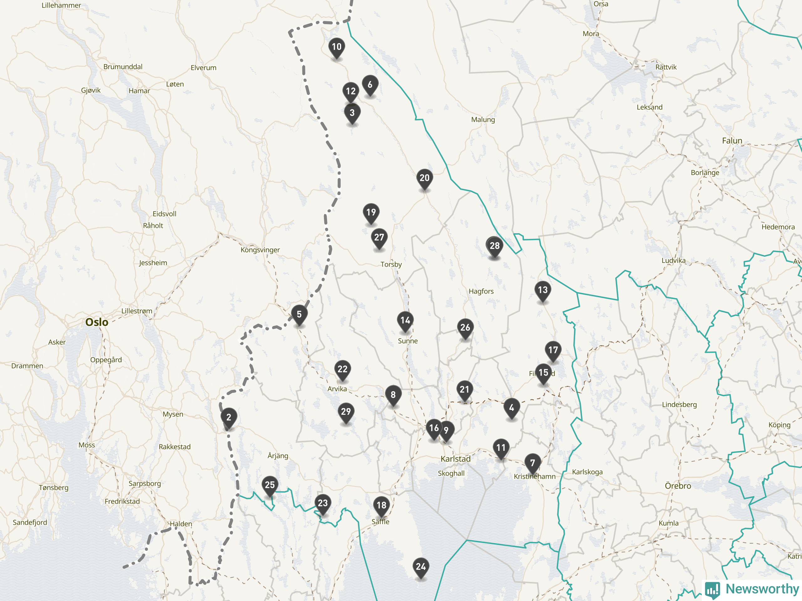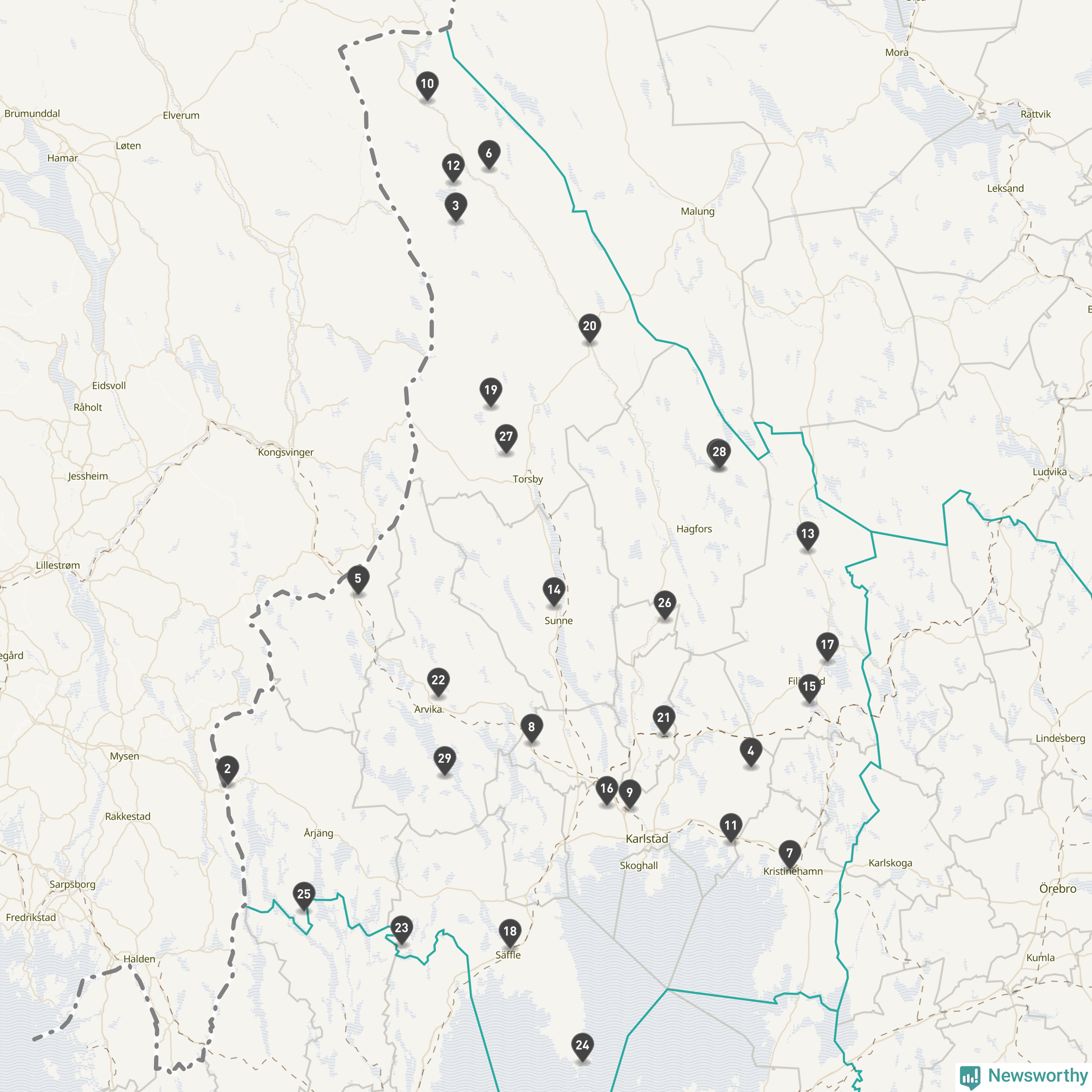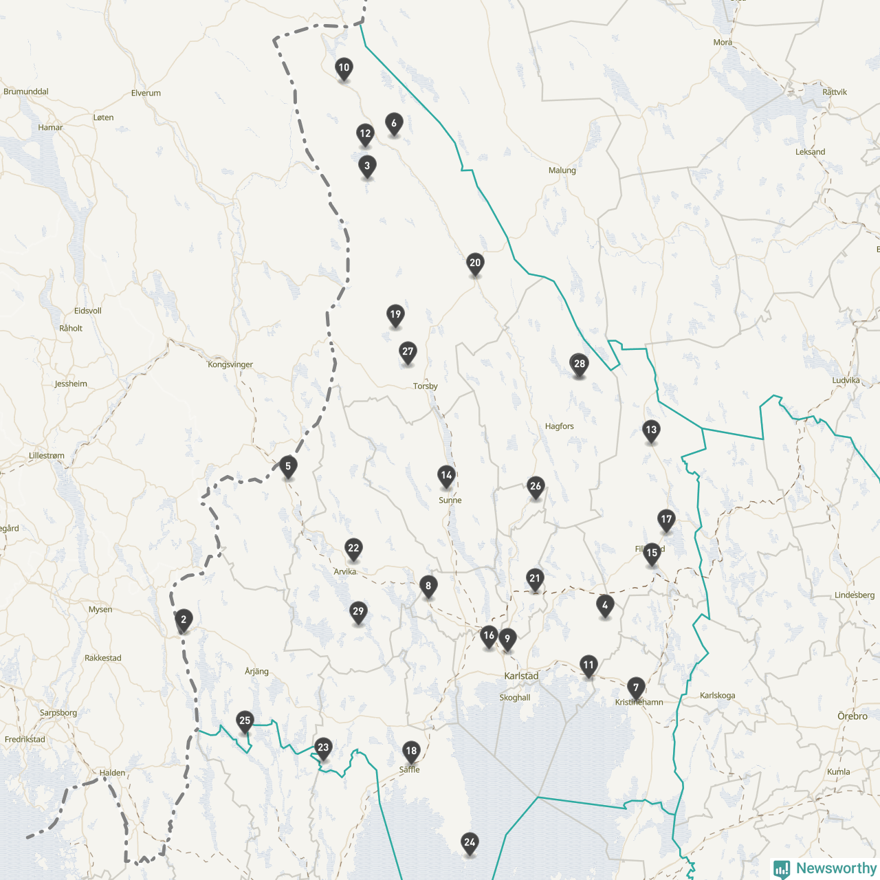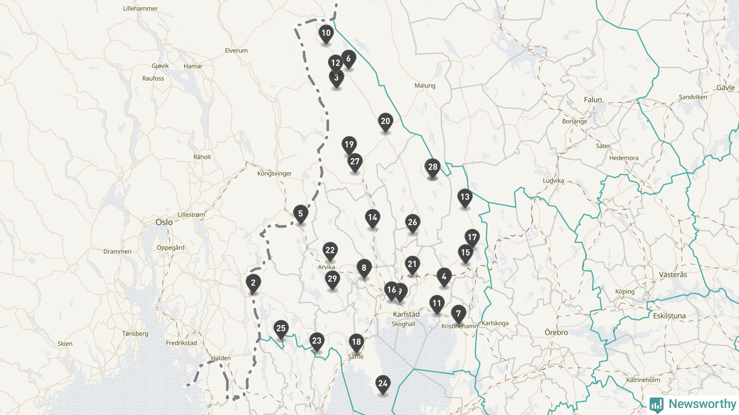 Årsmedeltemperaturen för 2025 var högre än normalt vid alla tio mätstationer i Värmland jämfört med genomsnittet för de senaste tre decennierna (perioden 1991–2020). Det visar Newsworthys beräkningar baserade på delvis preliminär observationsdata från SMHI.