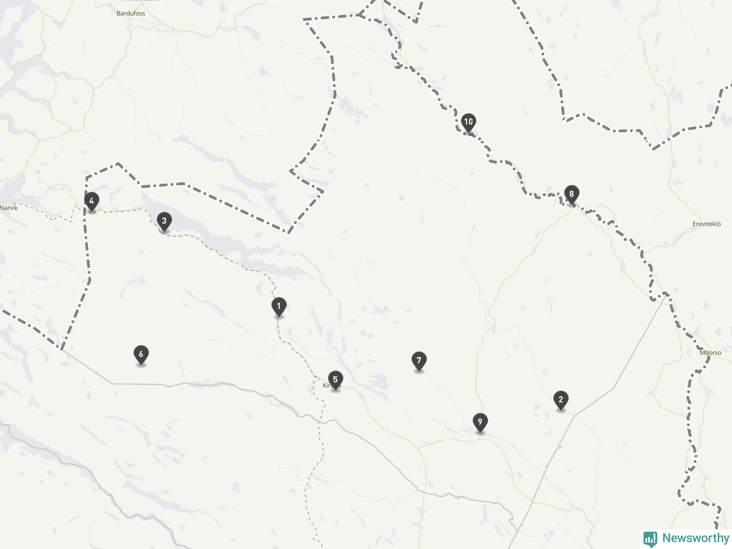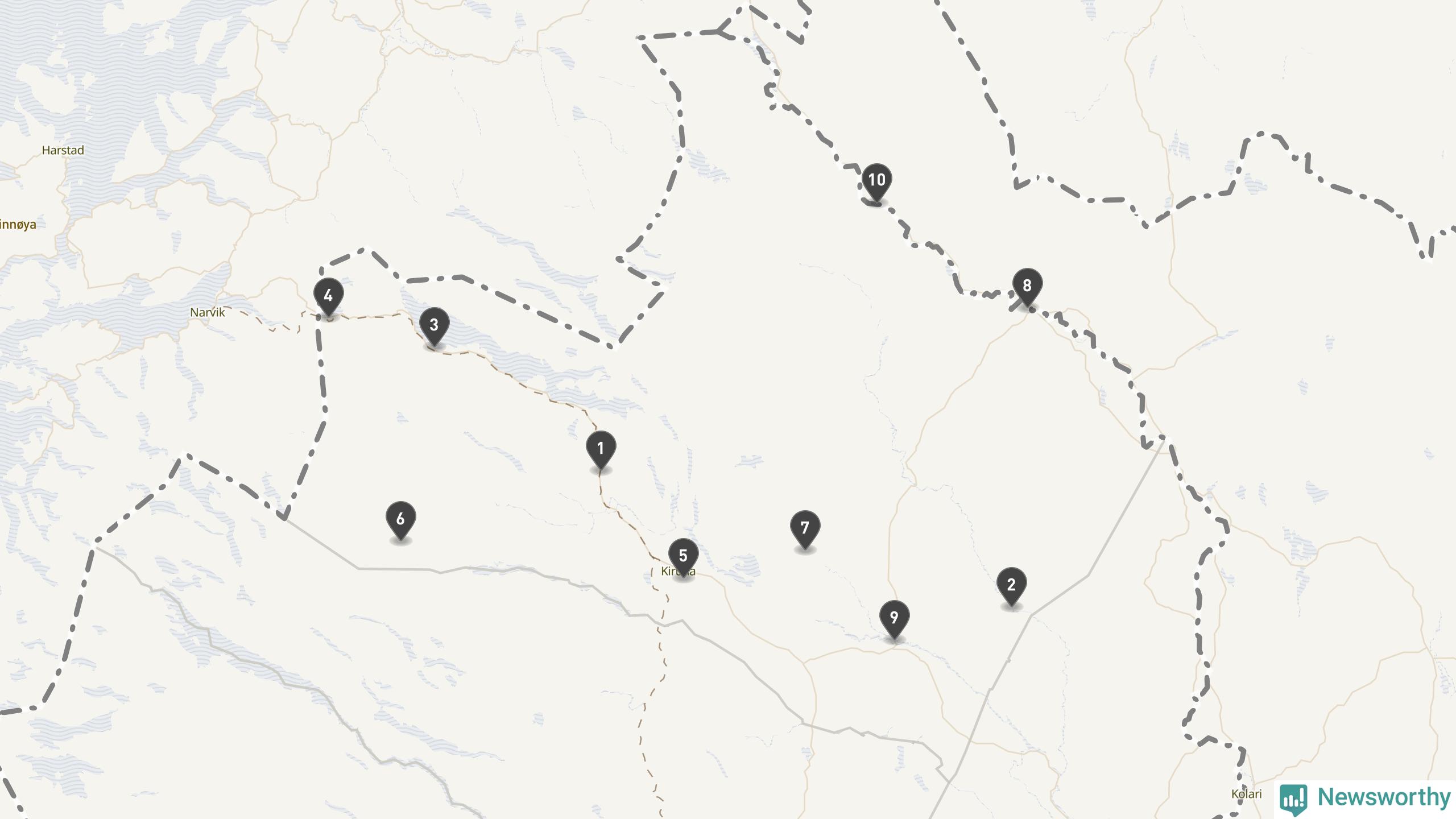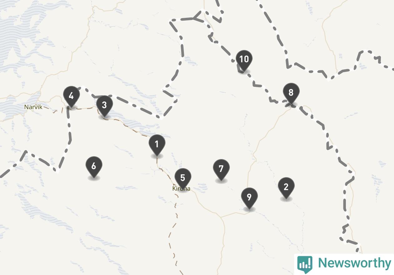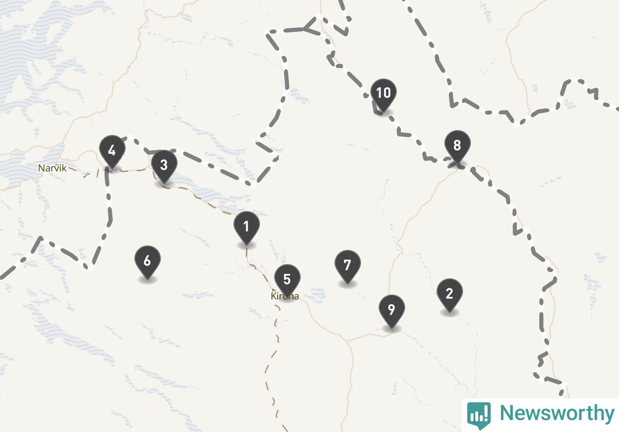 Årsmedeltemperaturen vid Kiruna Flygplats utanför centrala Kiruna1 var under 2025 0,9 grader, 1,3 grader högre än genomsnittet de senaste decennierna. Det visar Newsworthys beräkningar, som bygger på delvis preliminär observationsdata från SMHI.