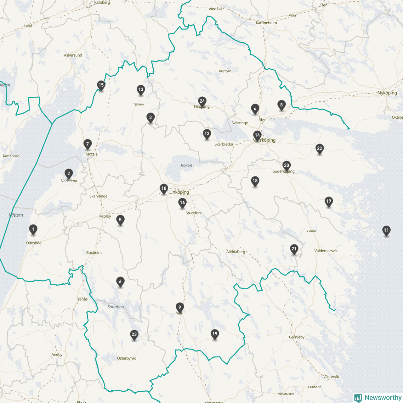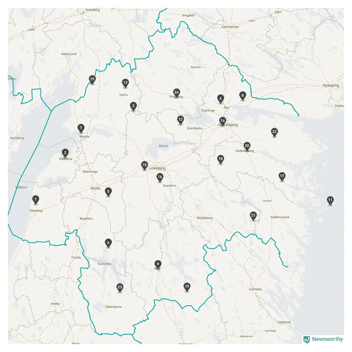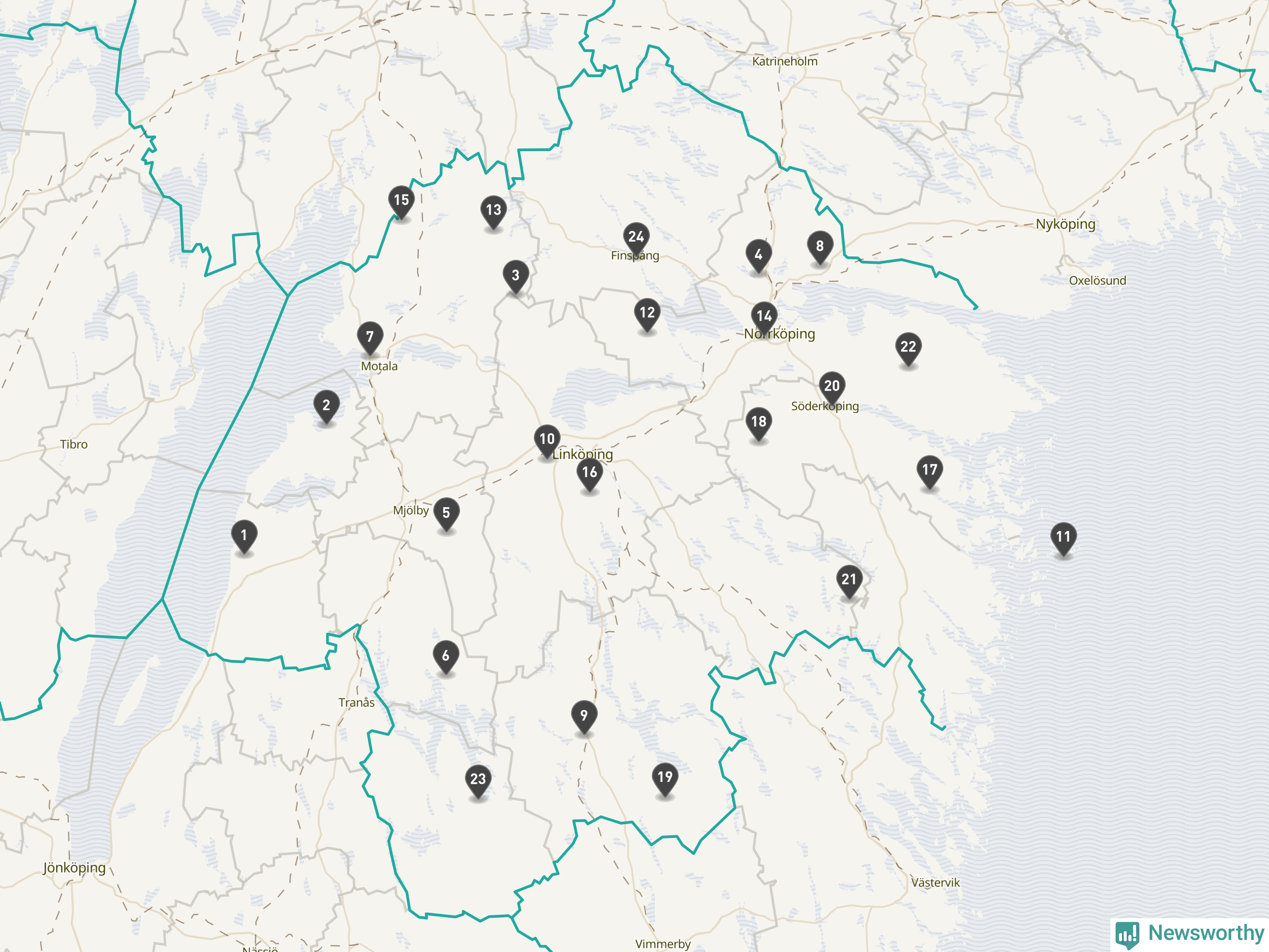 Årsmedeltemperaturen för 2025 var högre än normalt vid alla åtta mätstationer i Östergötland jämfört med genomsnittet för de senaste tre decennierna (perioden 1991–2020). Det visar Newsworthys beräkningar baserade på delvis preliminär observationsdata från SMHI.