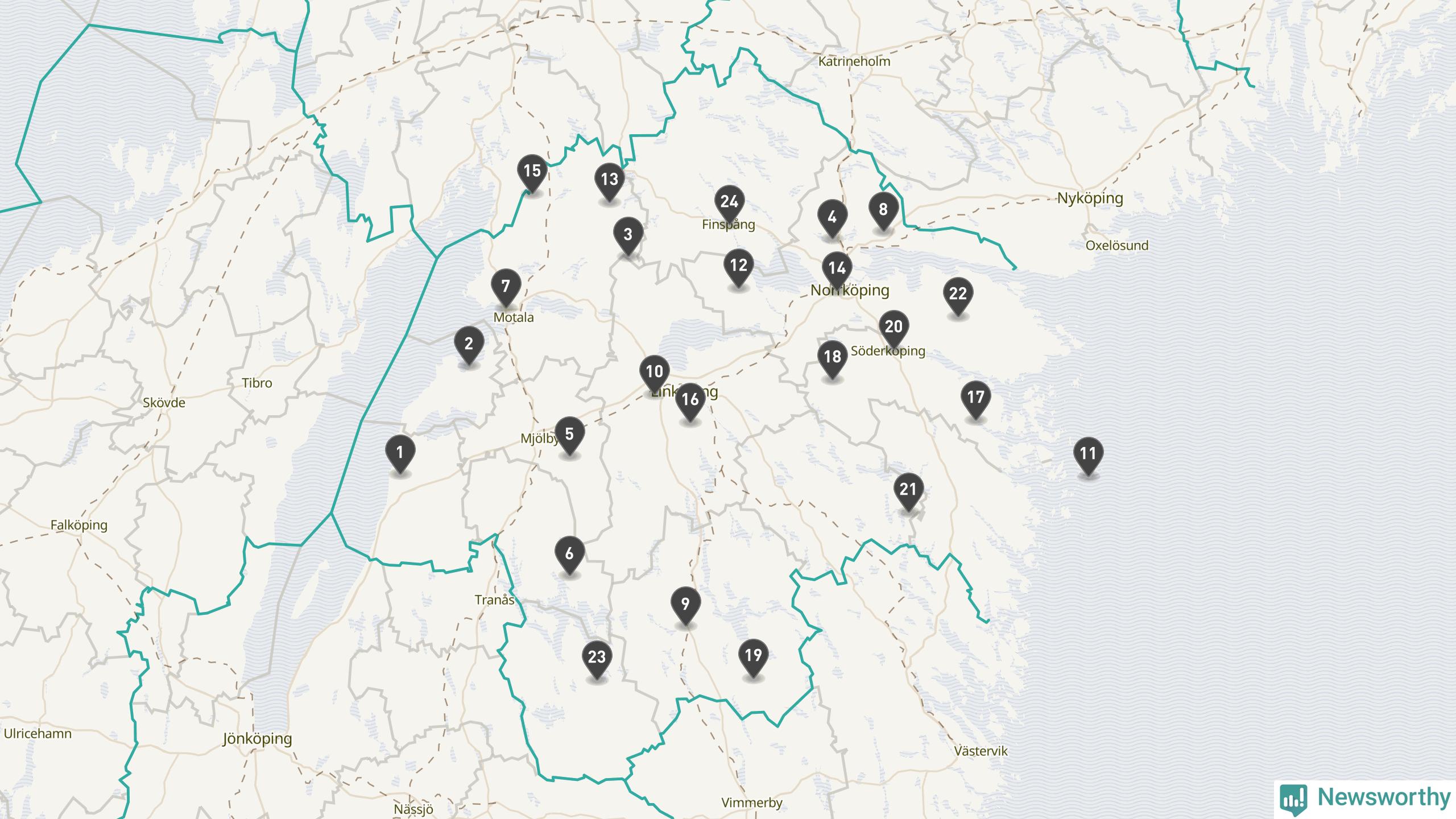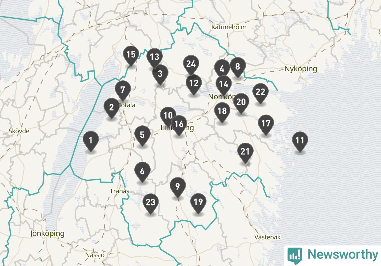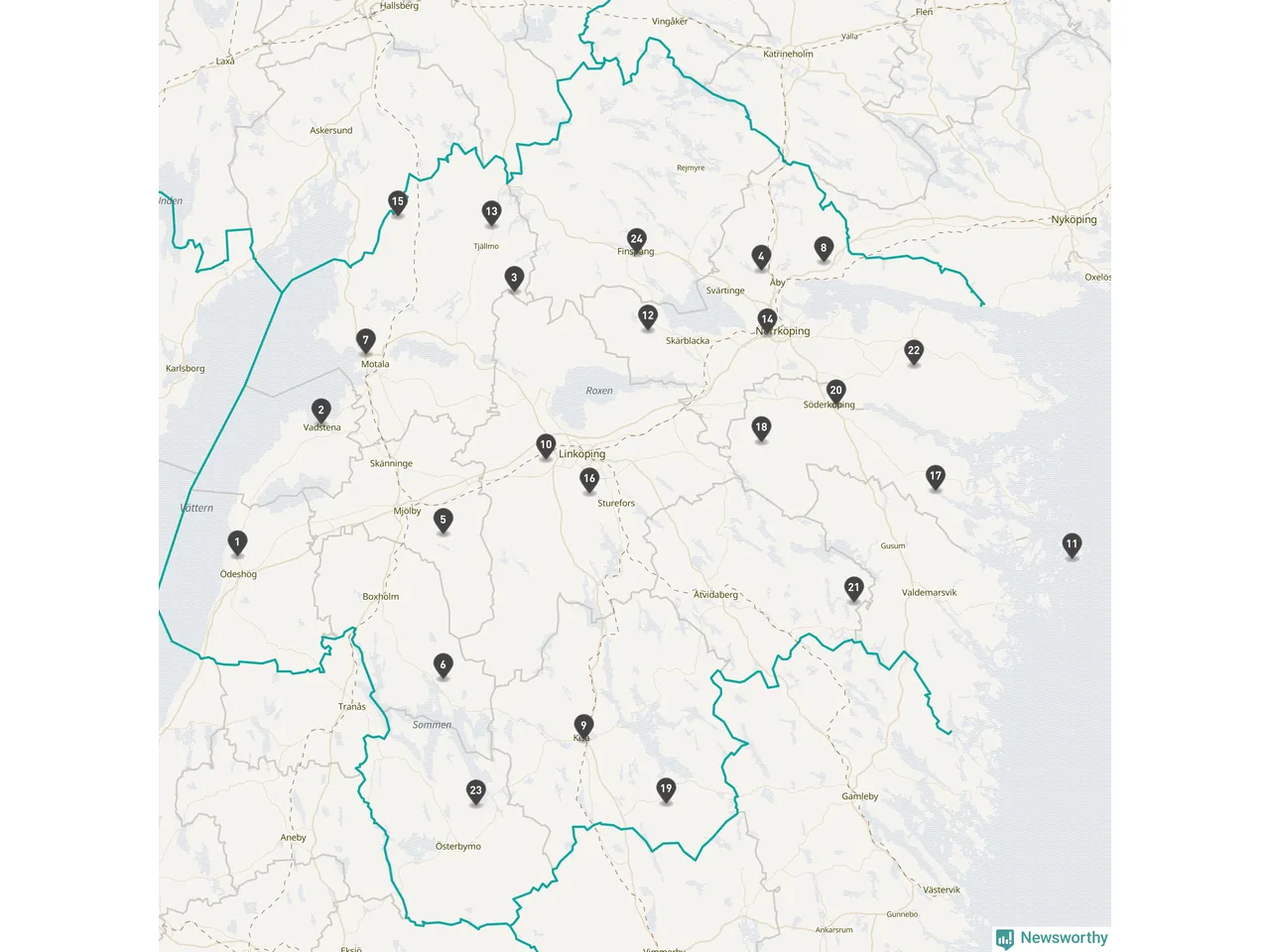 Årsmedeltemperaturen för 2025 var högre än normalt vid alla åtta mätstationer i Östergötland jämfört med genomsnittet för de senaste tre decennierna (perioden 1991–2020). Det visar Newsworthys beräkningar baserade på delvis preliminär observationsdata från SMHI.
