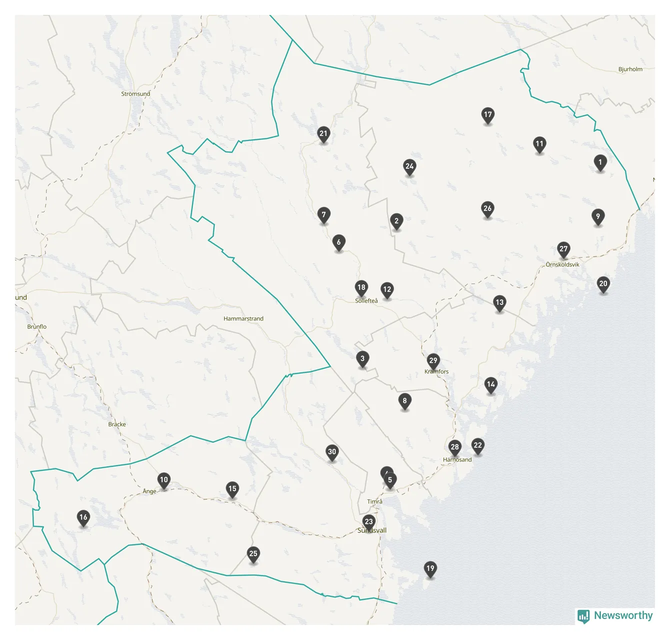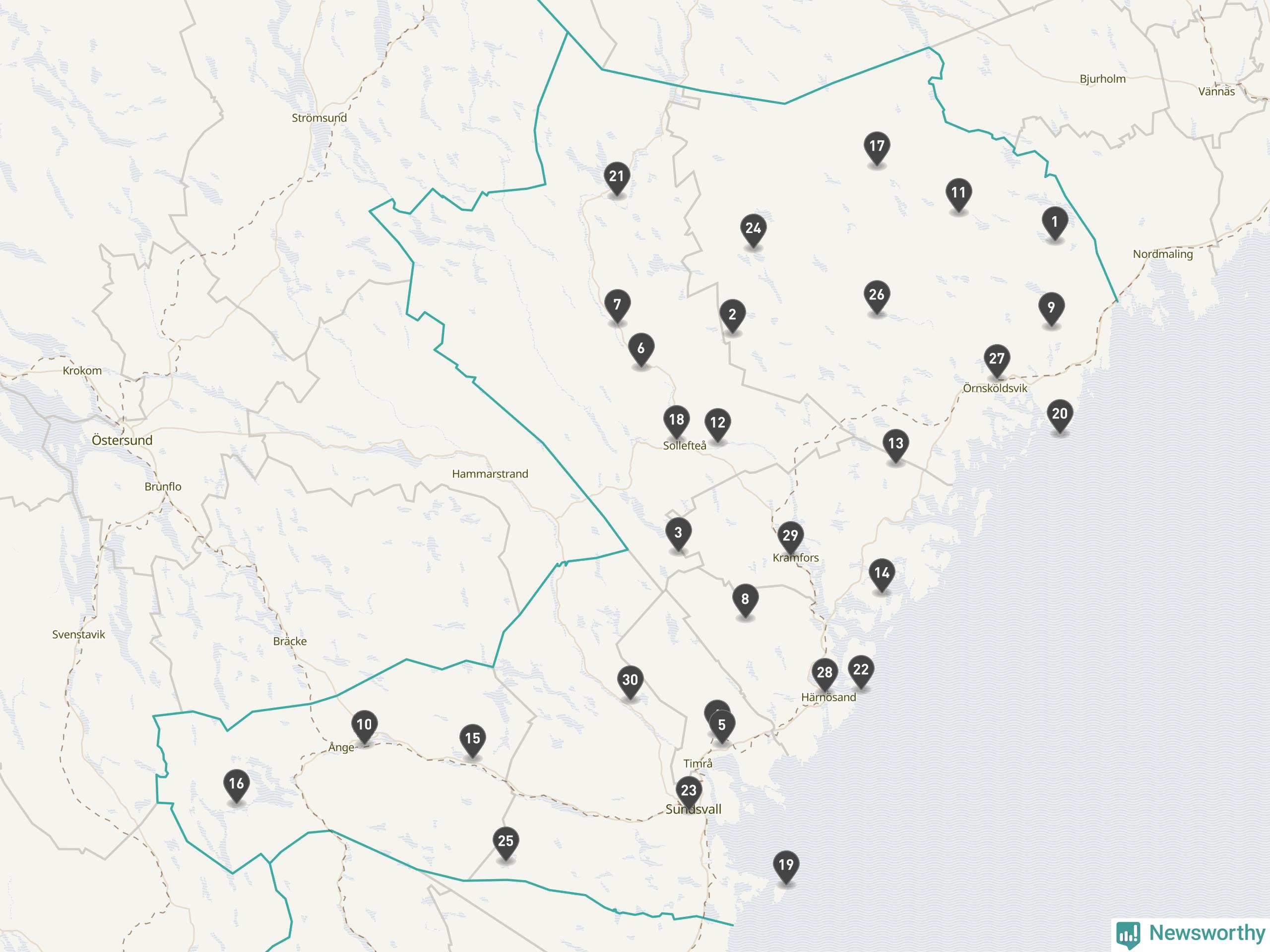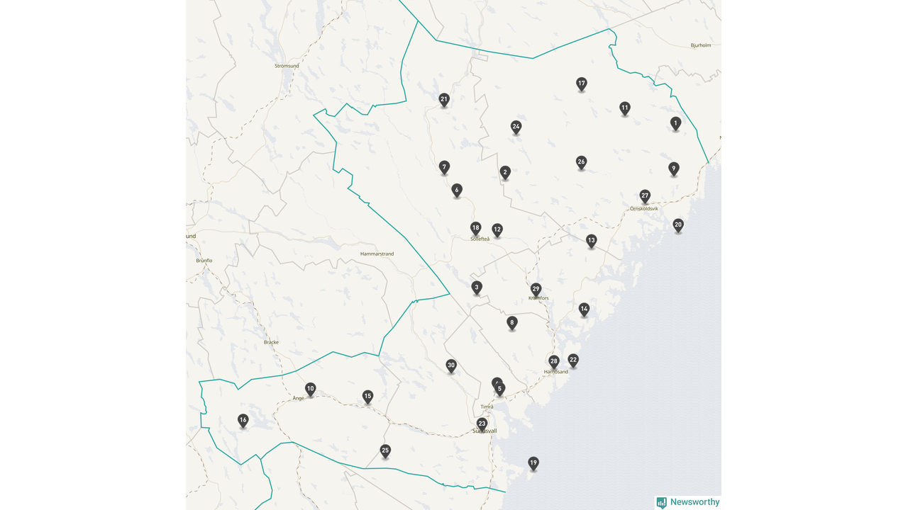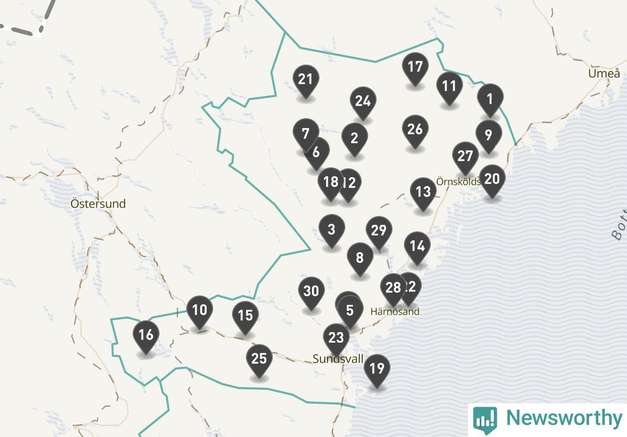 Årsmedeltemperaturen för 2025 var högre än normalt vid alla nio mätstationer i Västernorrland jämfört med genomsnittet för de senaste tre decennierna (perioden 1991–2020). Det visar Newsworthys beräkningar baserade på delvis preliminär observationsdata från SMHI.