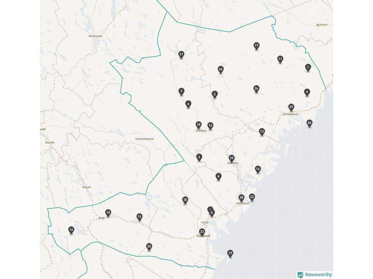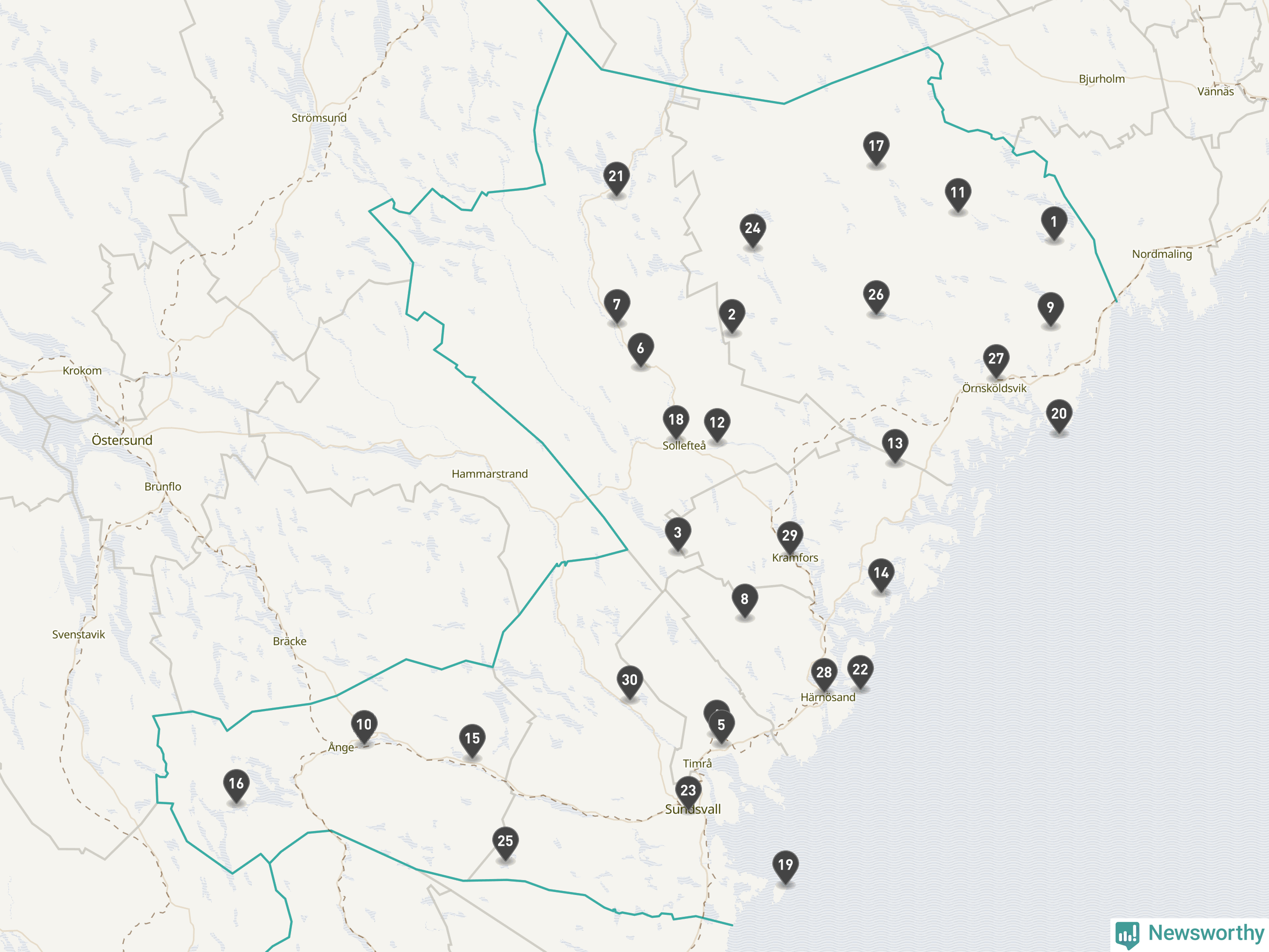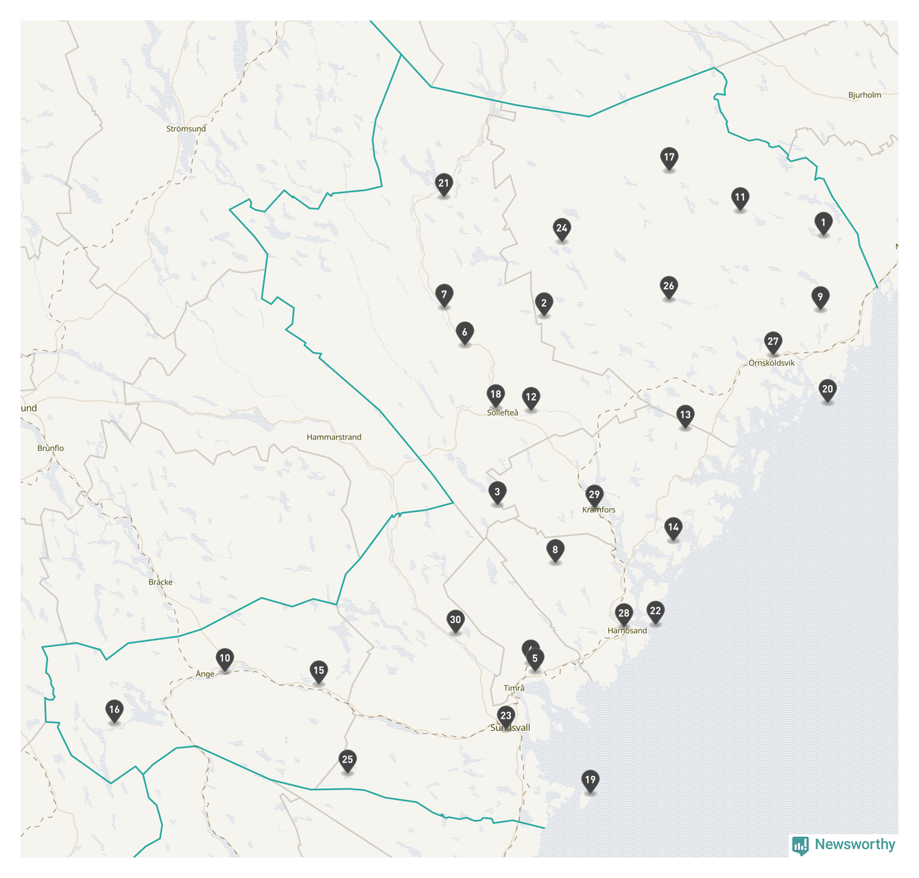 Årsmedeltemperaturen för 2025 var högre än normalt vid alla nio mätstationer i Västernorrland jämfört med genomsnittet för de senaste tre decennierna (perioden 1991–2020). Det visar Newsworthys beräkningar baserade på delvis preliminär observationsdata från SMHI.