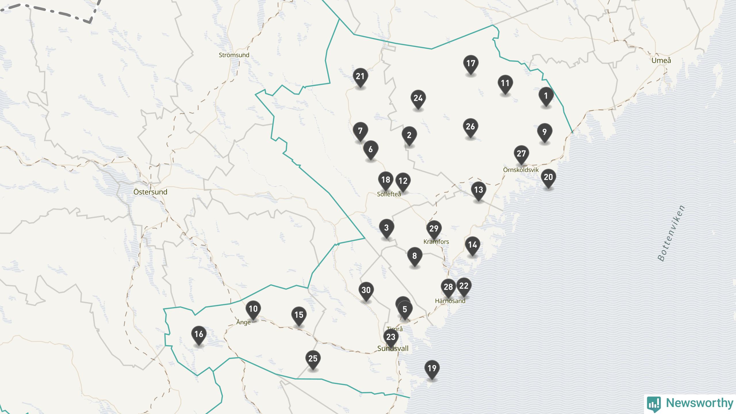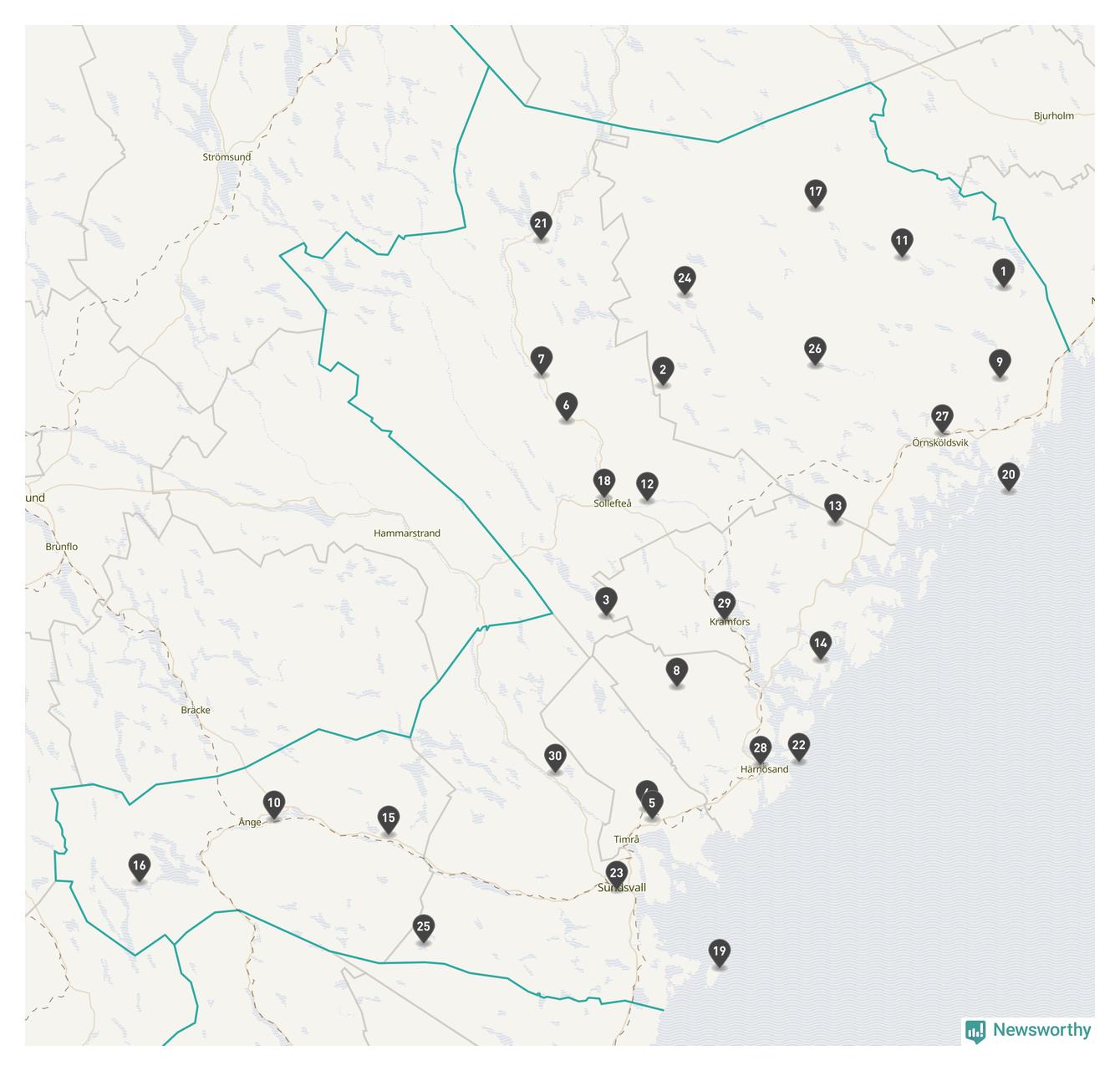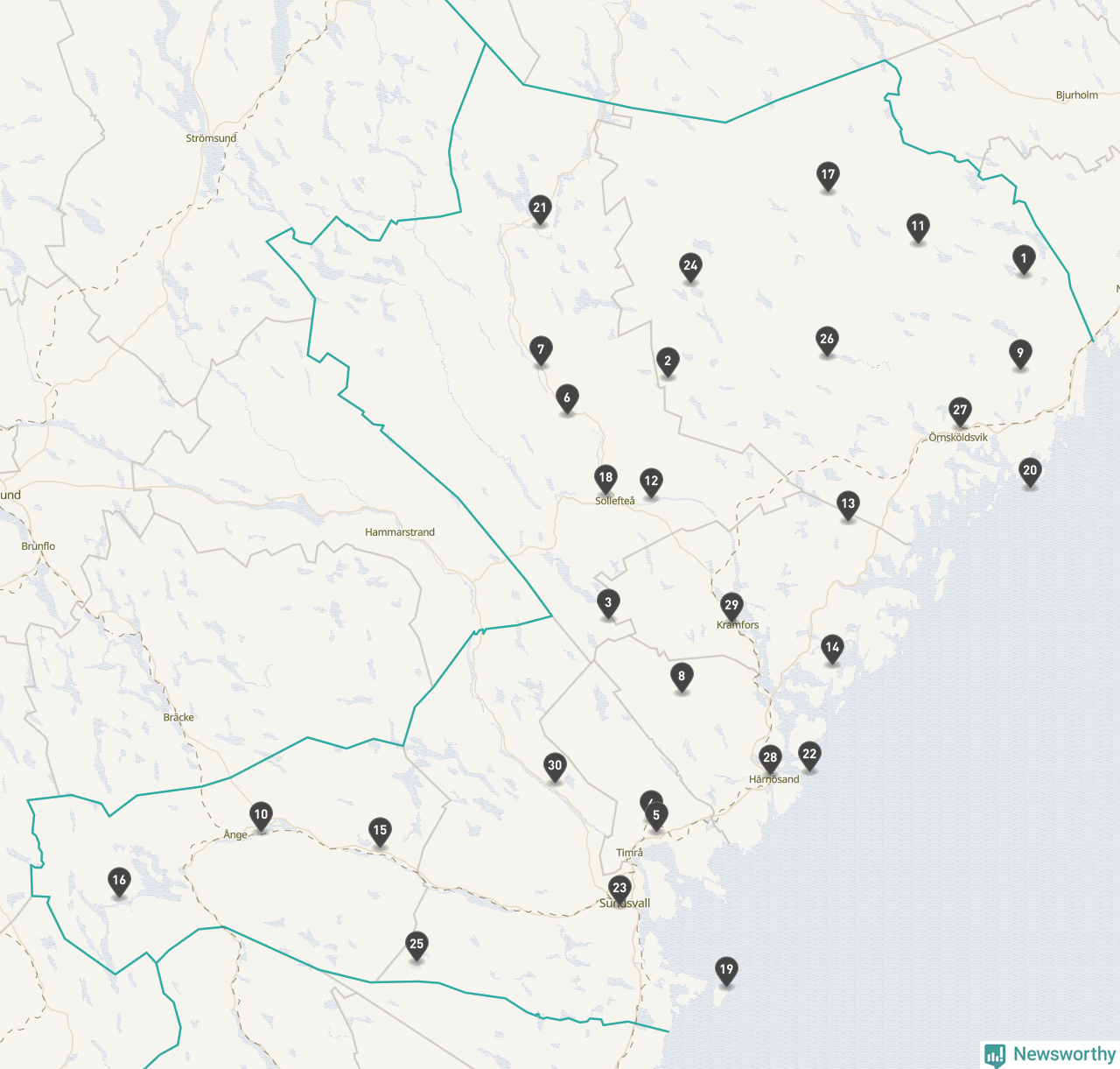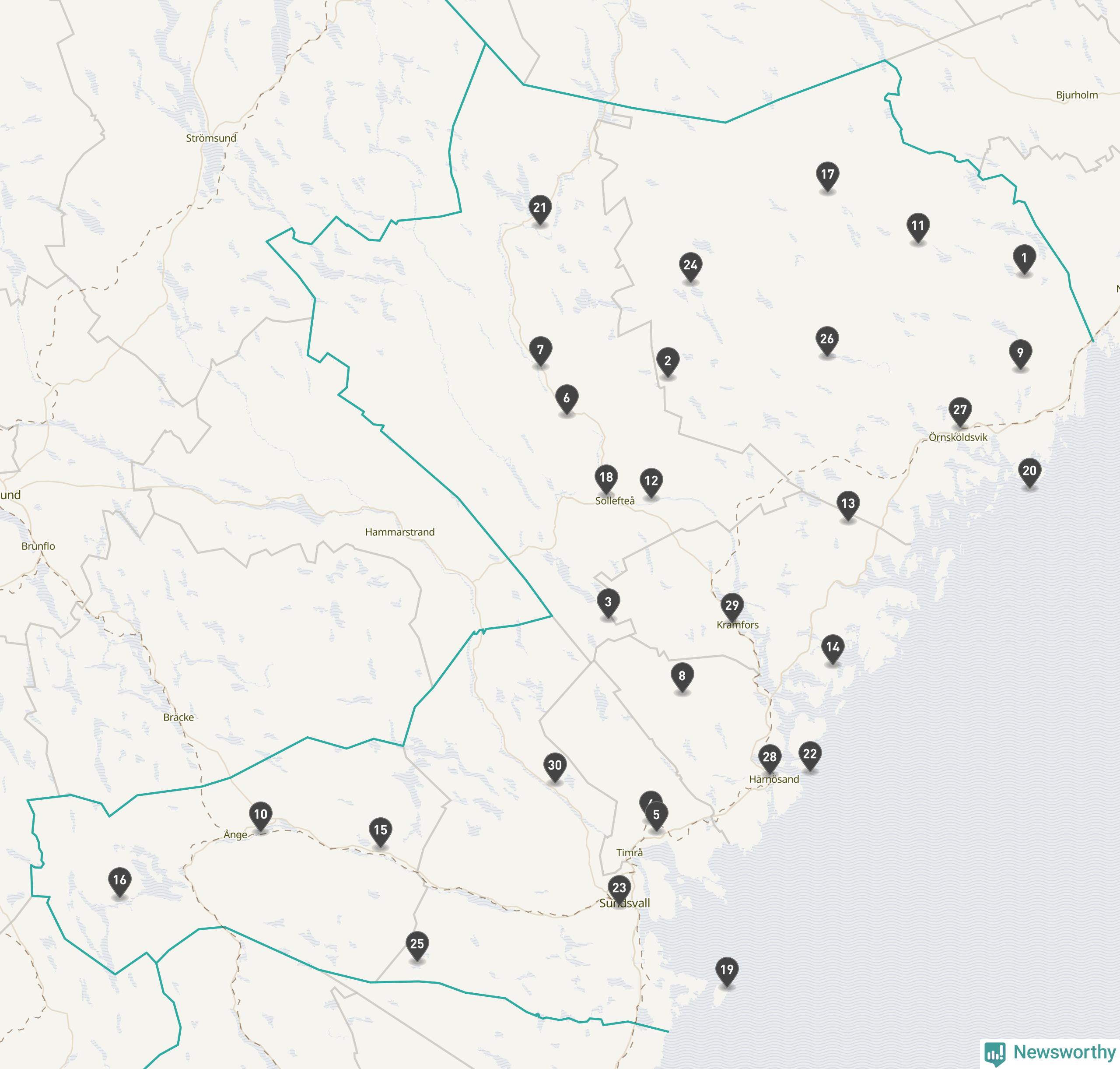 Årsmedeltemperaturen för 2025 var högre än normalt vid alla nio mätstationer i Västernorrland jämfört med genomsnittet för de senaste tre decennierna (perioden 1991–2020). Det visar Newsworthys beräkningar baserade på delvis preliminär observationsdata från SMHI.