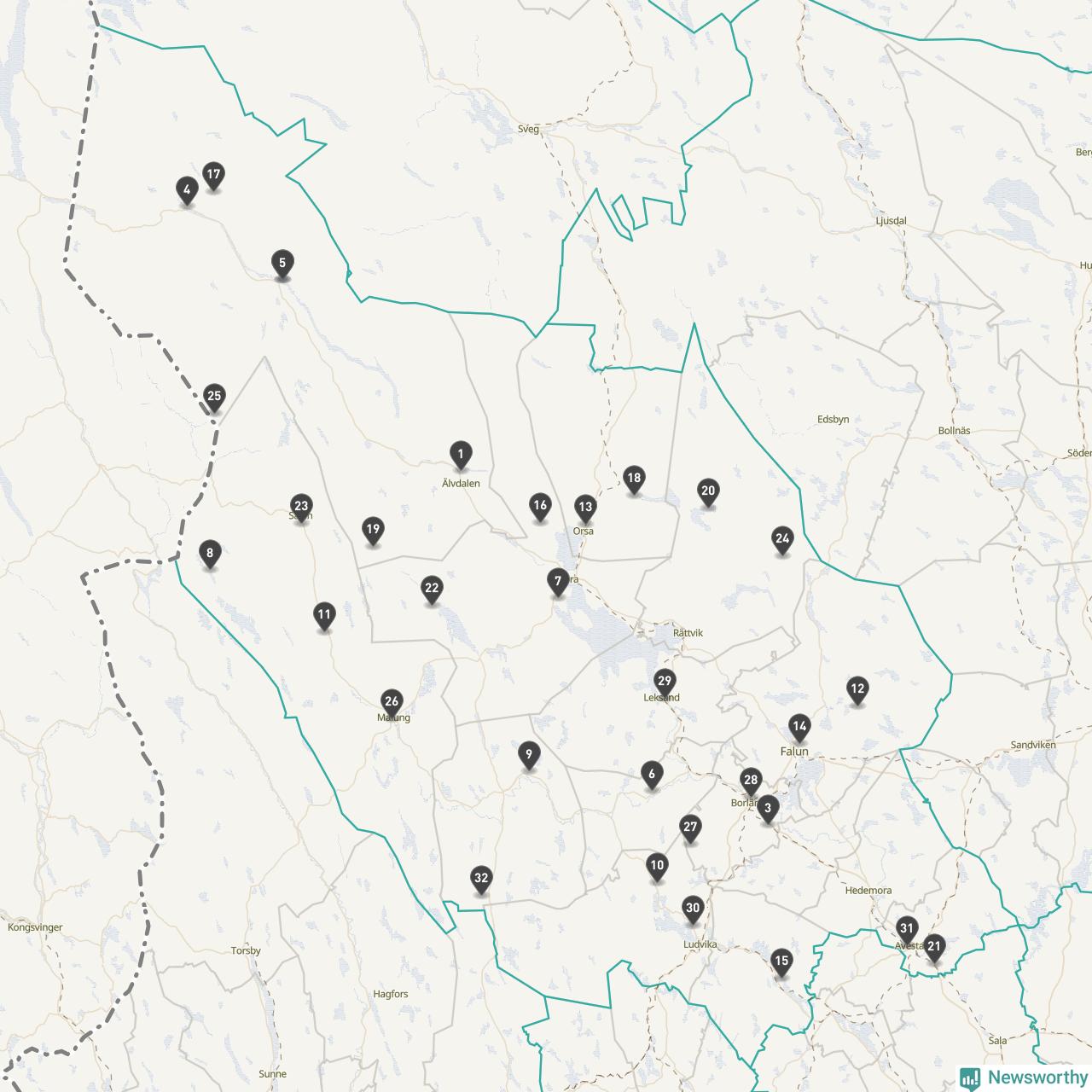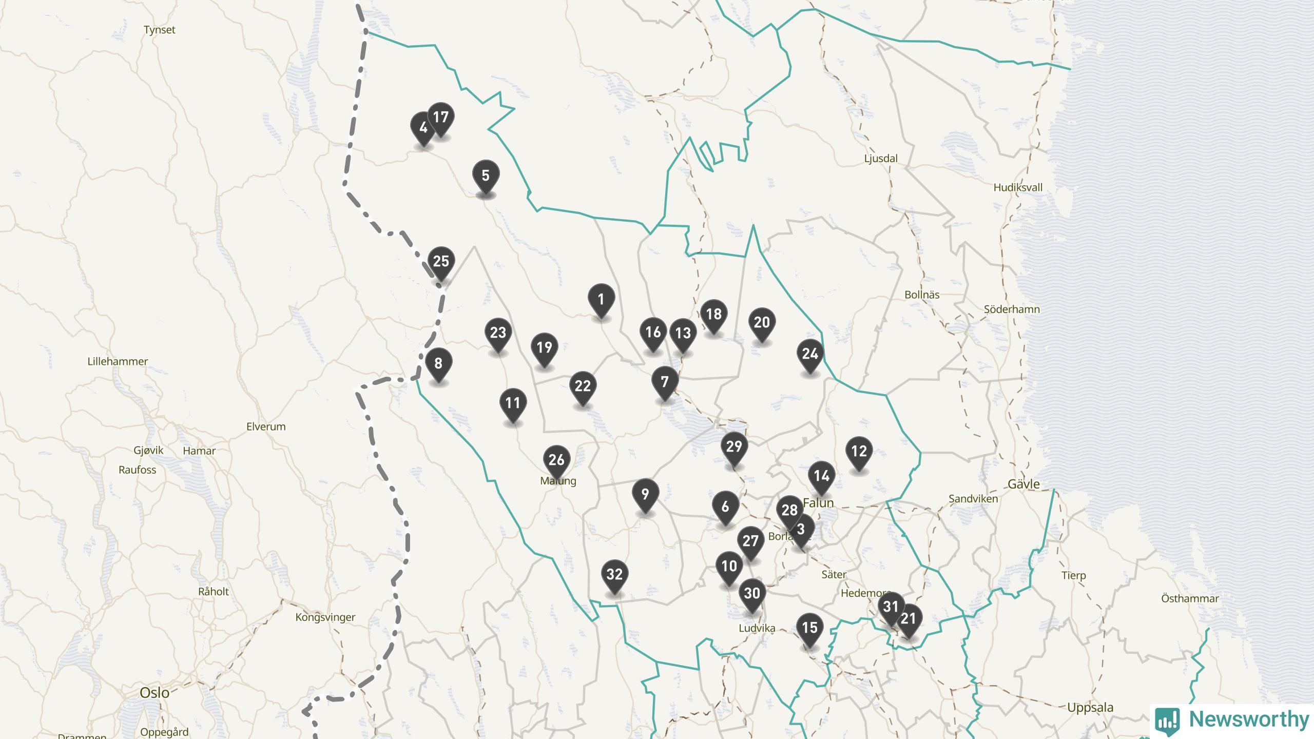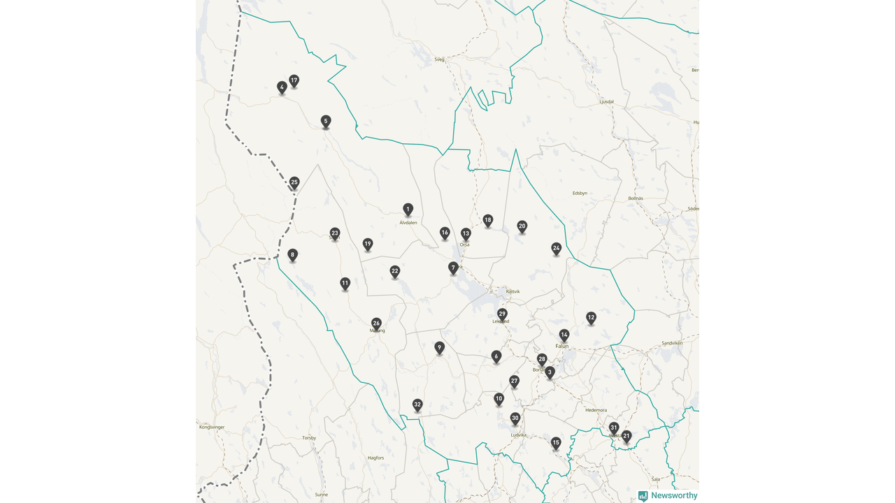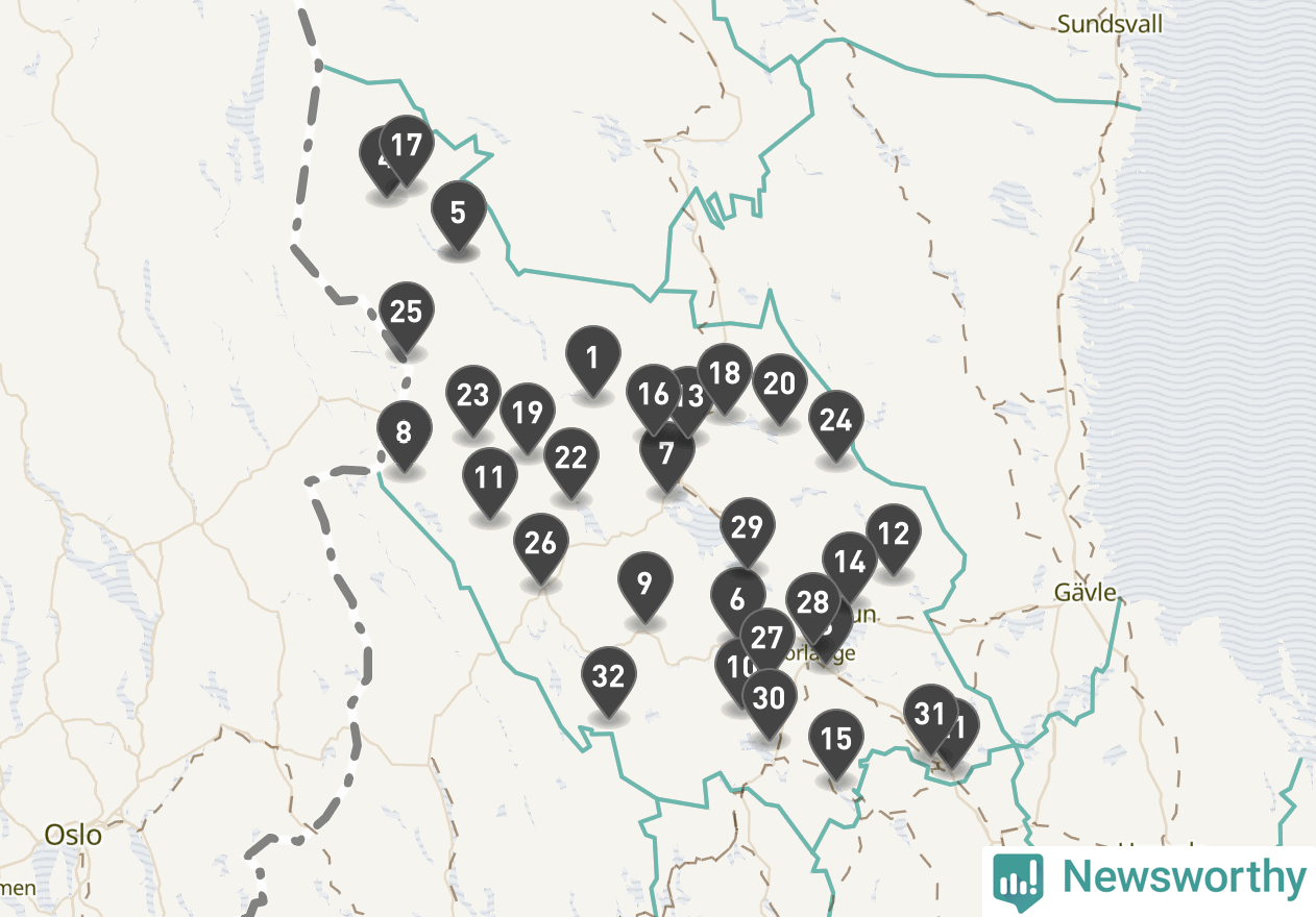 Årsmedeltemperaturen för 2025 var högre än normalt vid alla tio mätstationer i Dalarna jämfört med genomsnittet för de senaste tre decennierna (perioden 1991–2020). Det visar Newsworthys beräkningar baserade på delvis preliminär observationsdata från SMHI.