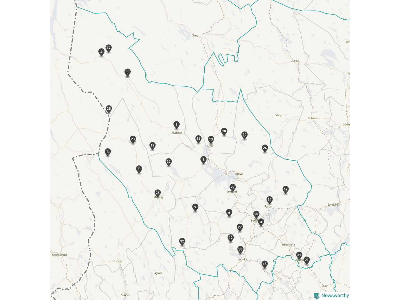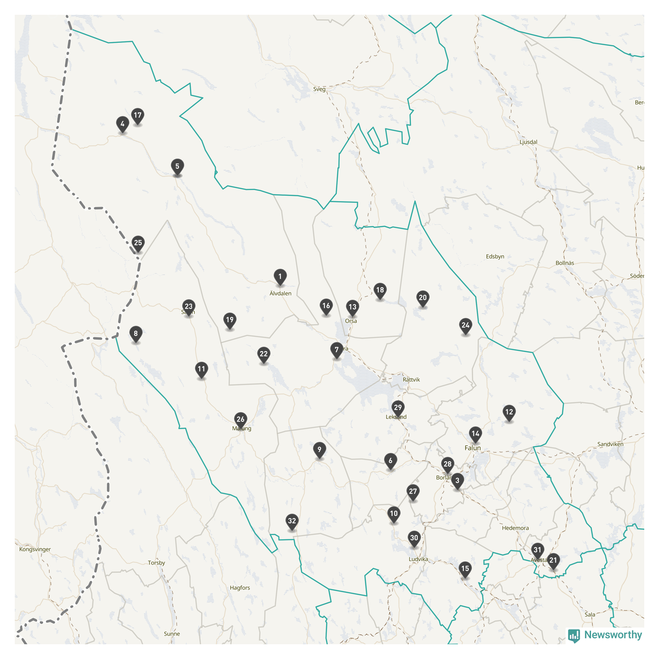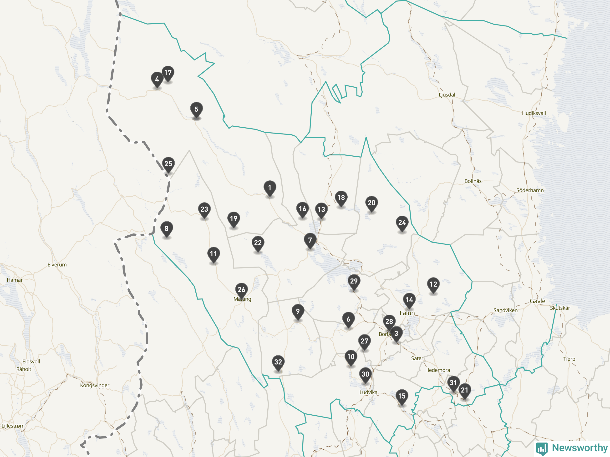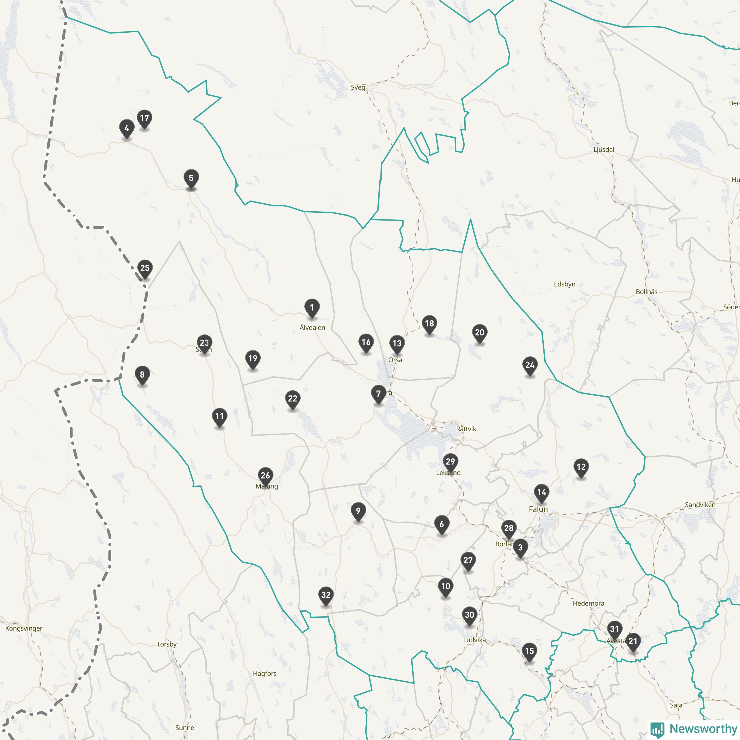 Årsmedeltemperaturen för 2025 var högre än normalt vid alla tio mätstationer i Dalarna jämfört med genomsnittet för de senaste tre decennierna (perioden 1991–2020). Det visar Newsworthys beräkningar baserade på delvis preliminär observationsdata från SMHI.