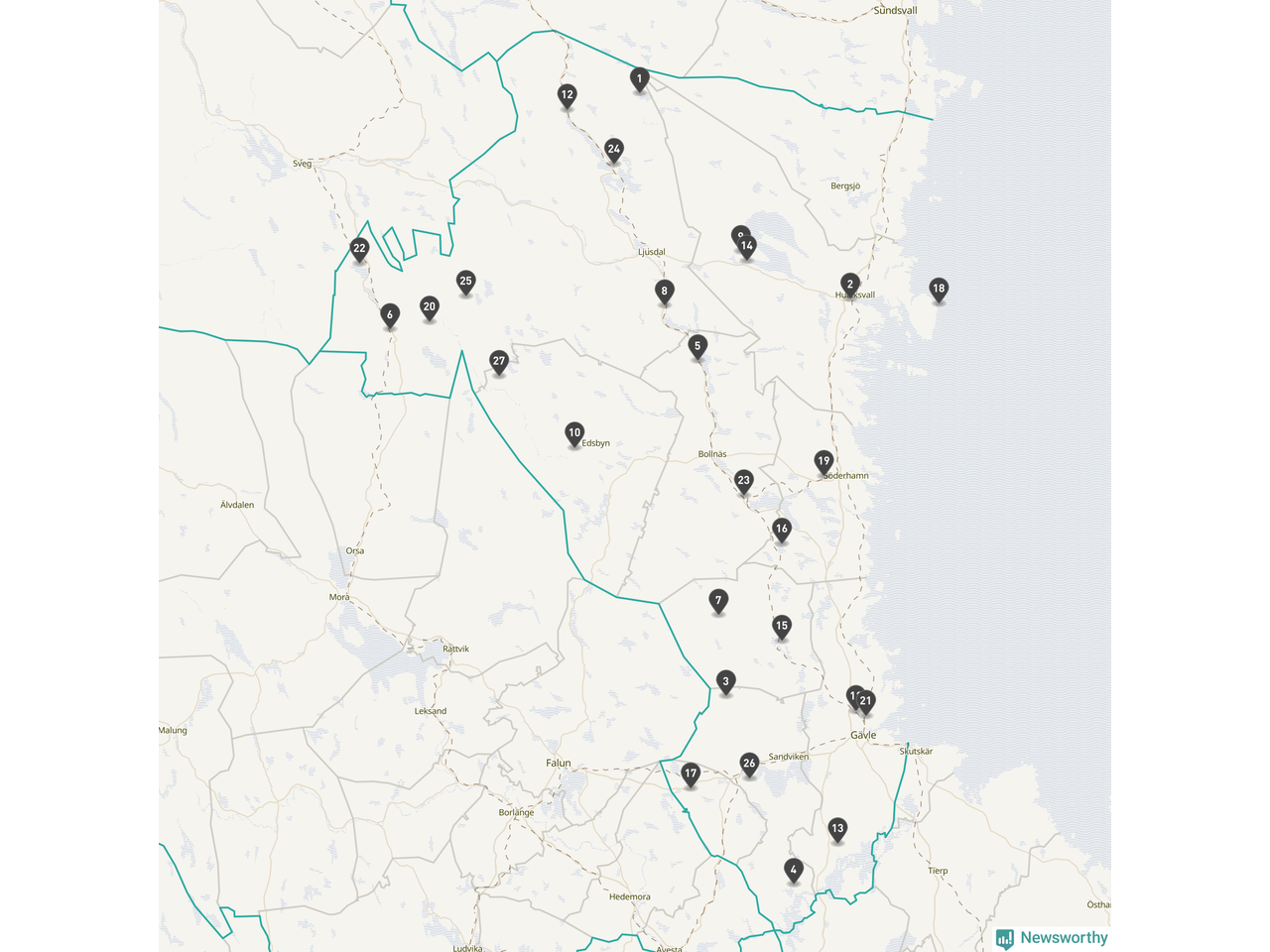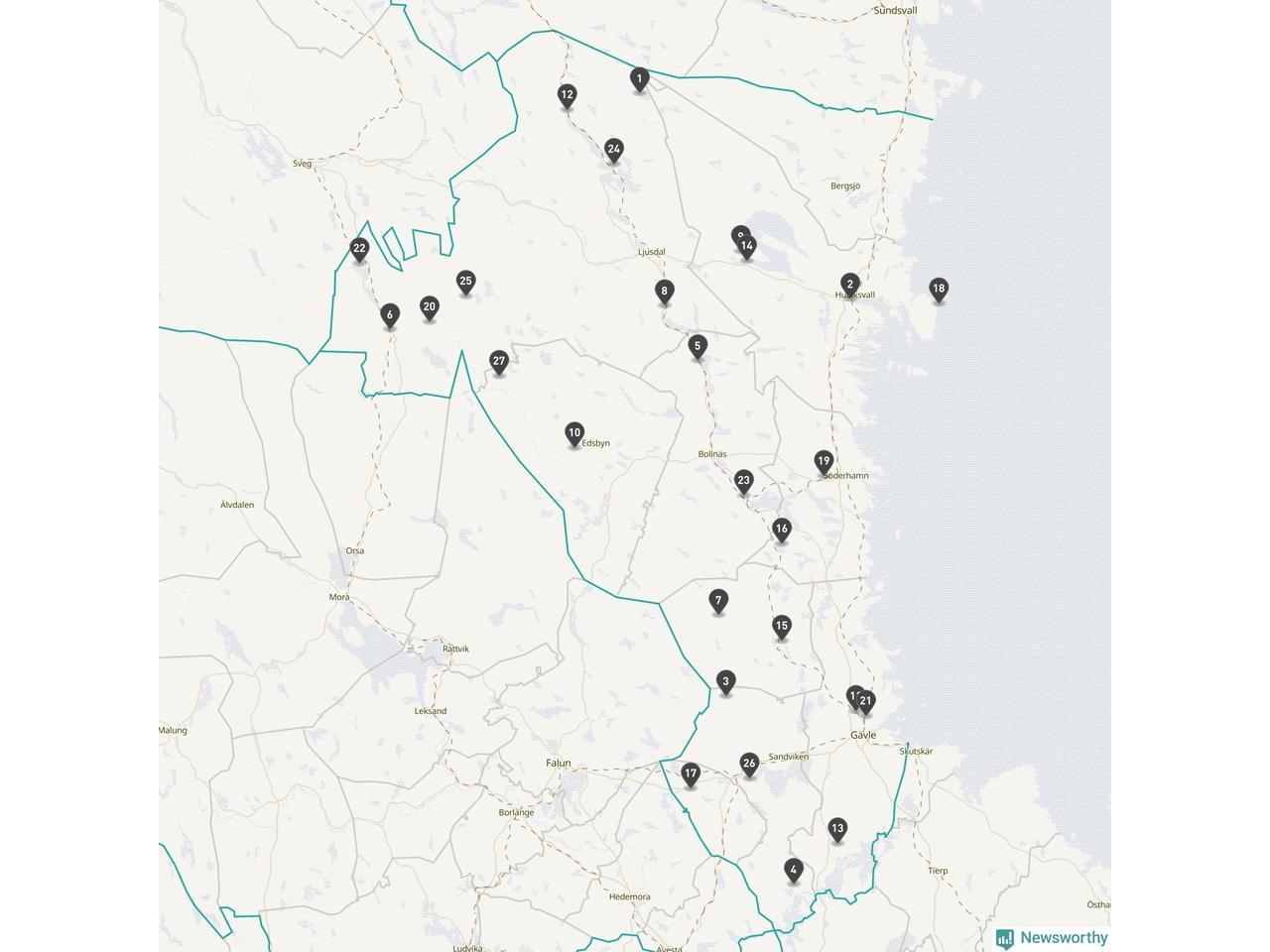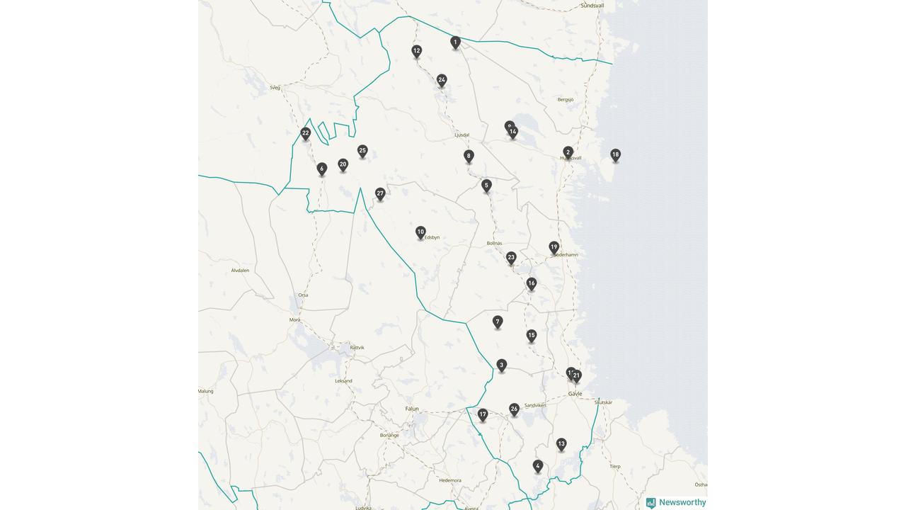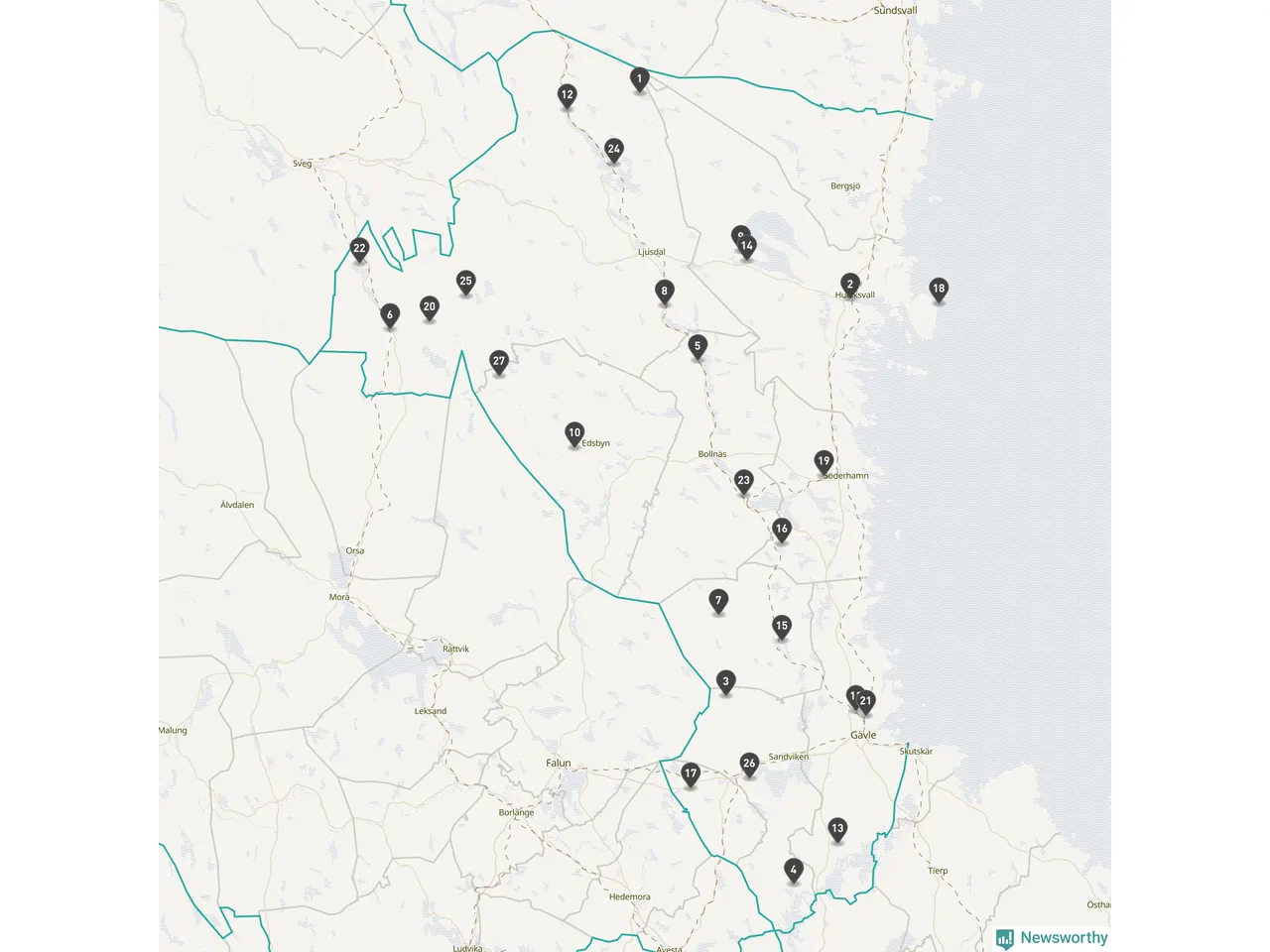 Årsmedeltemperaturen för 2025 var högre än normalt vid alla sju mätstationer i Gävleborg jämfört med genomsnittet för de senaste tre decennierna (perioden 1991–2020). Det visar Newsworthys beräkningar baserade på delvis preliminär observationsdata från SMHI.