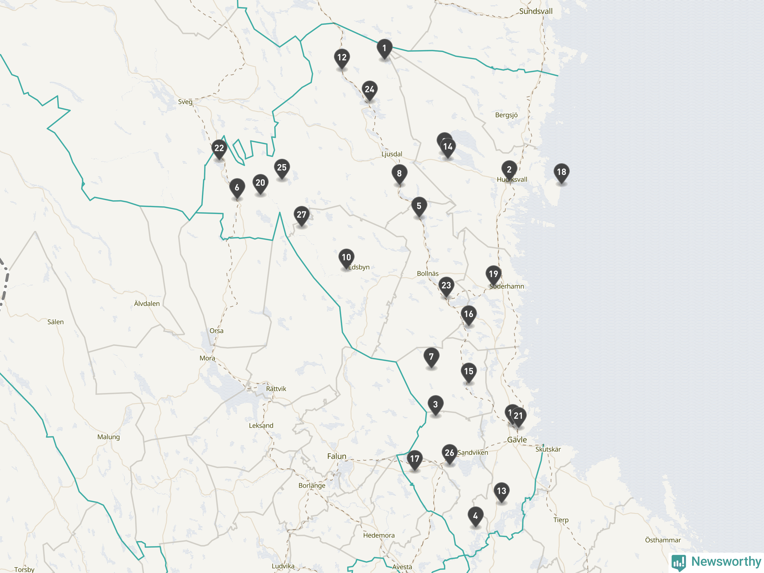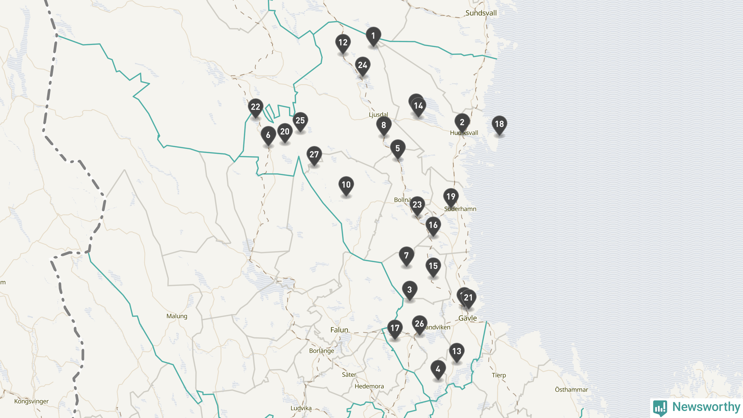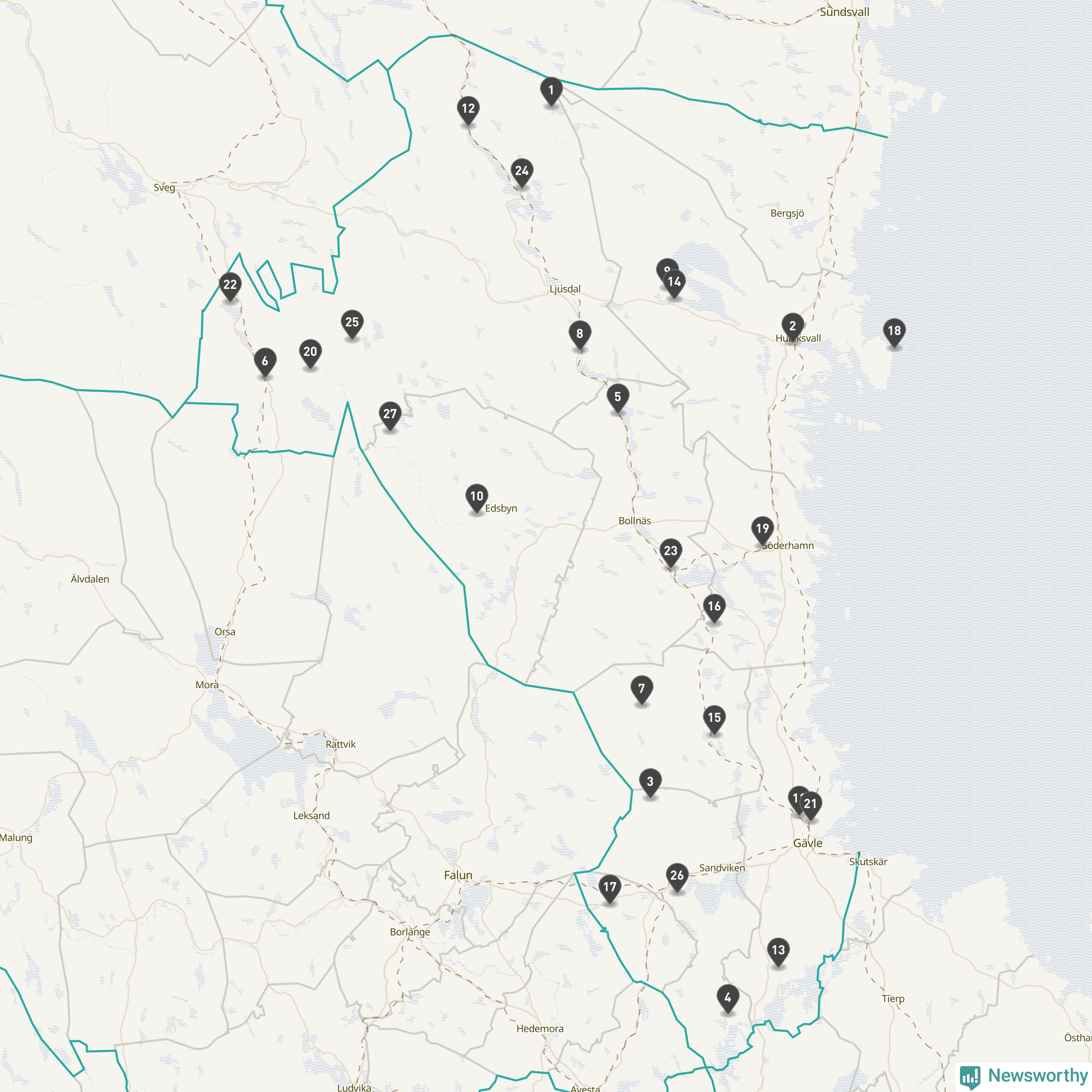 Årsmedeltemperaturen för 2025 var högre än normalt vid alla sju mätstationer i Gävleborg jämfört med genomsnittet för de senaste tre decennierna (perioden 1991–2020). Det visar Newsworthys beräkningar baserade på delvis preliminär observationsdata från SMHI.