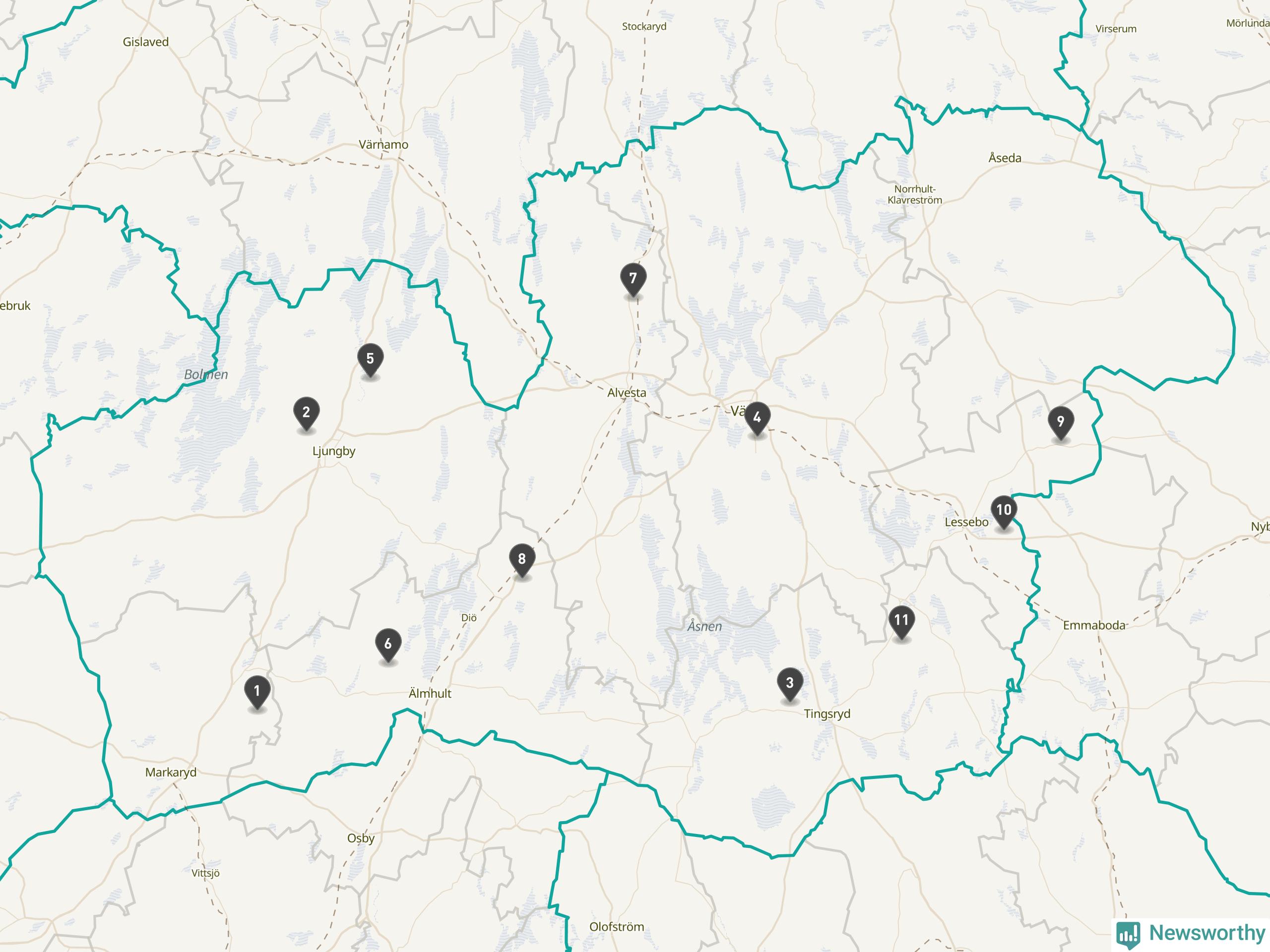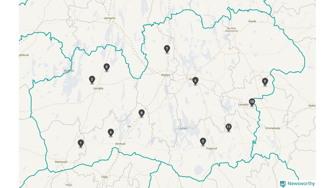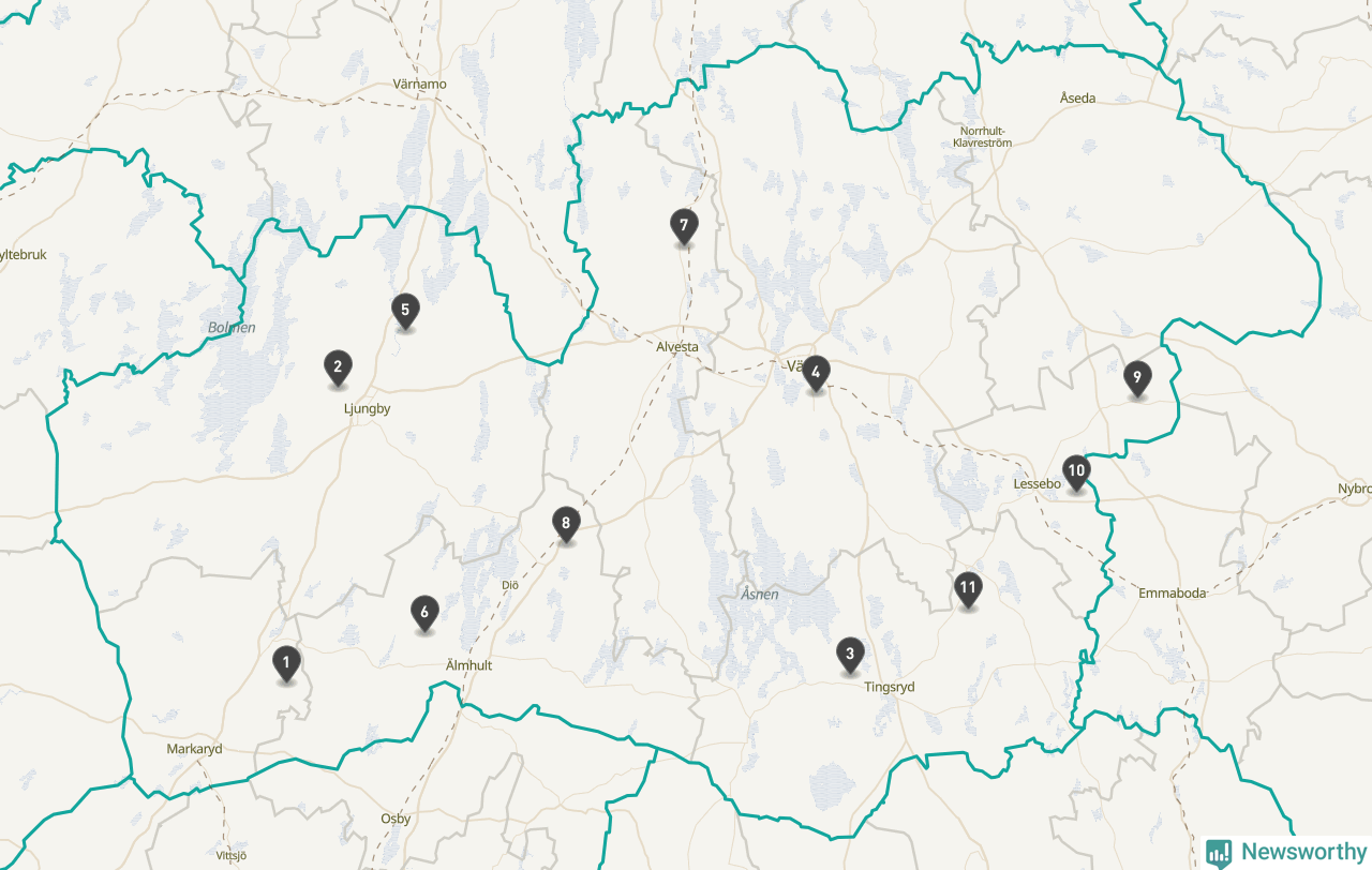 Årsmedeltemperaturen för 2025 var högre än normalt vid alla fyra mätstationer i Kronoberg jämfört med genomsnittet för de senaste tre decennierna (perioden 1991–2020). Det visar Newsworthys beräkningar baserade på delvis preliminär observationsdata från SMHI.