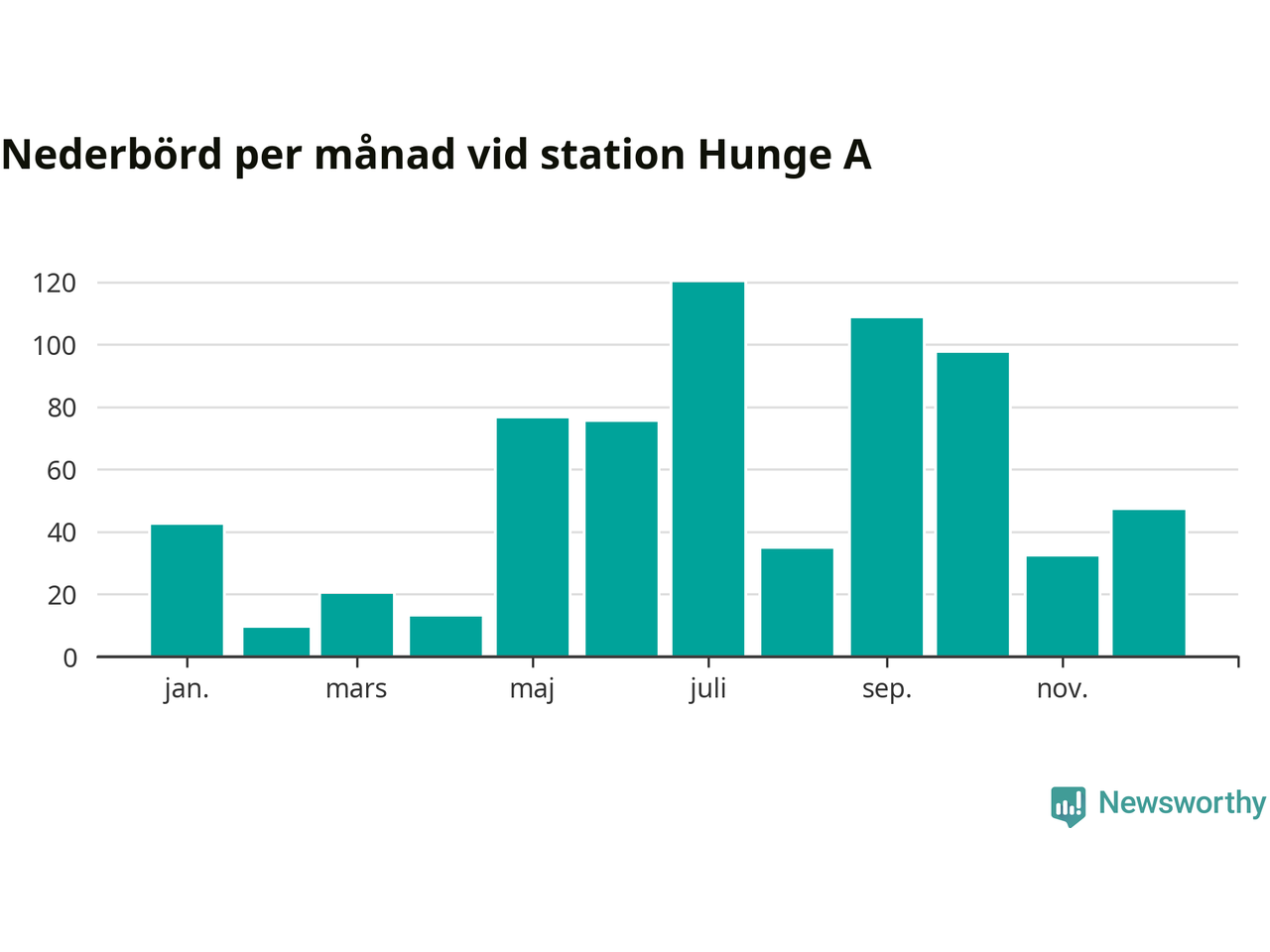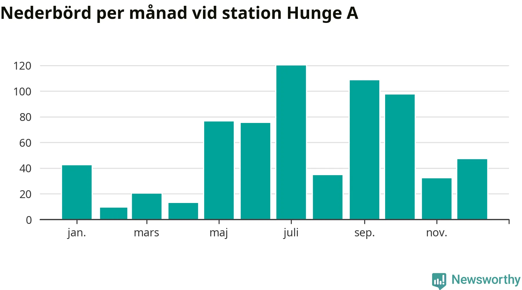 Diagram som visar total nederbörd, månad för månad.