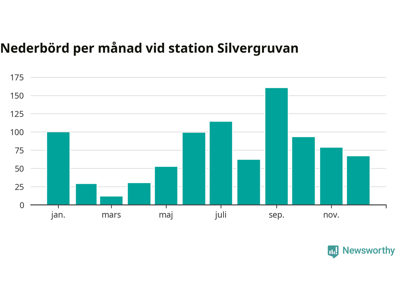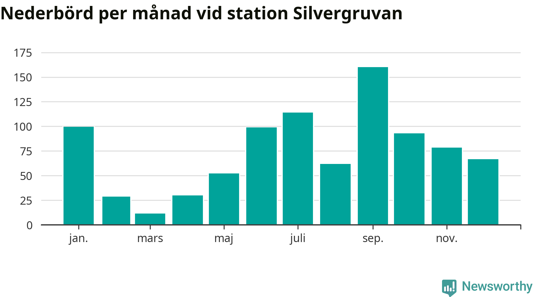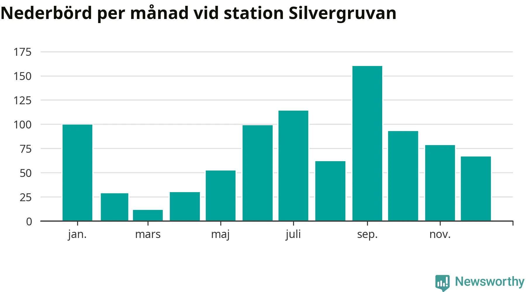Diagram som visar total nederbörd, månad för månad.